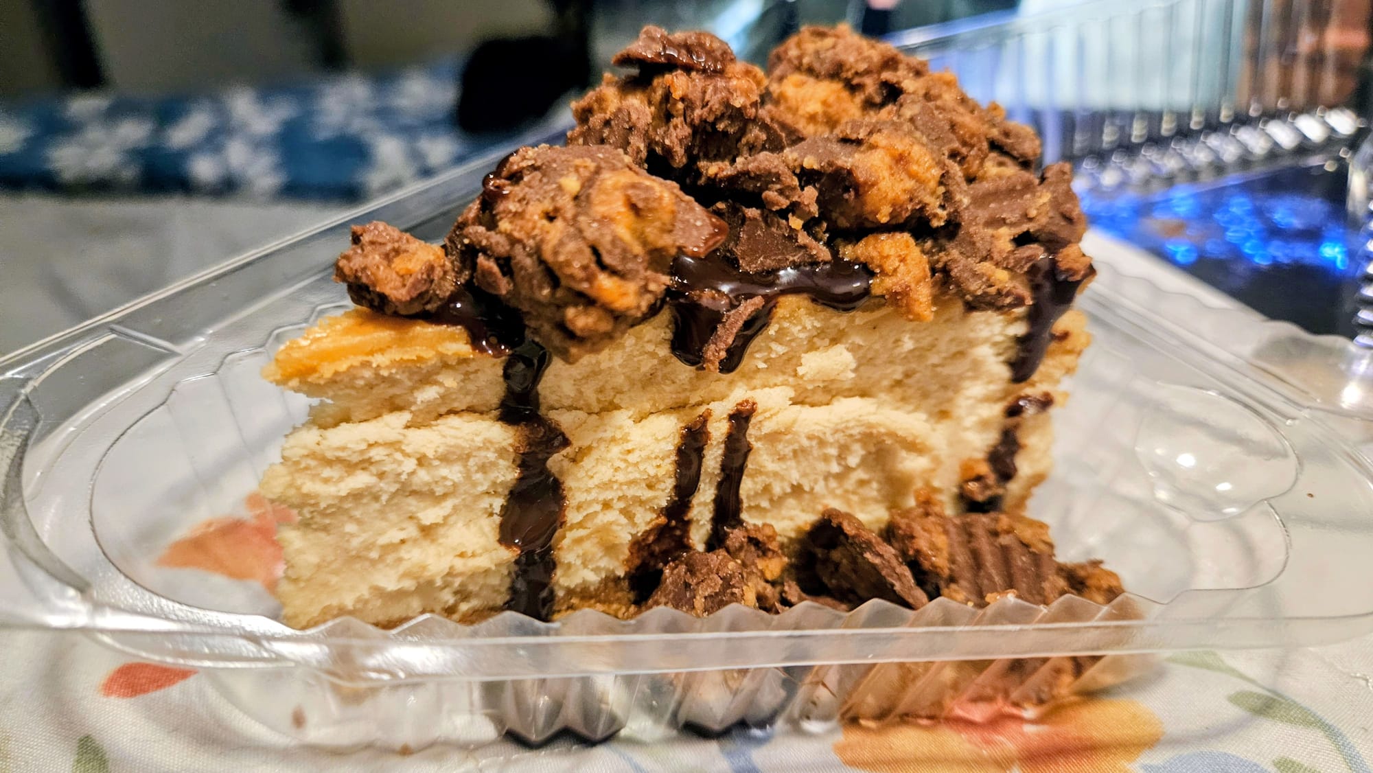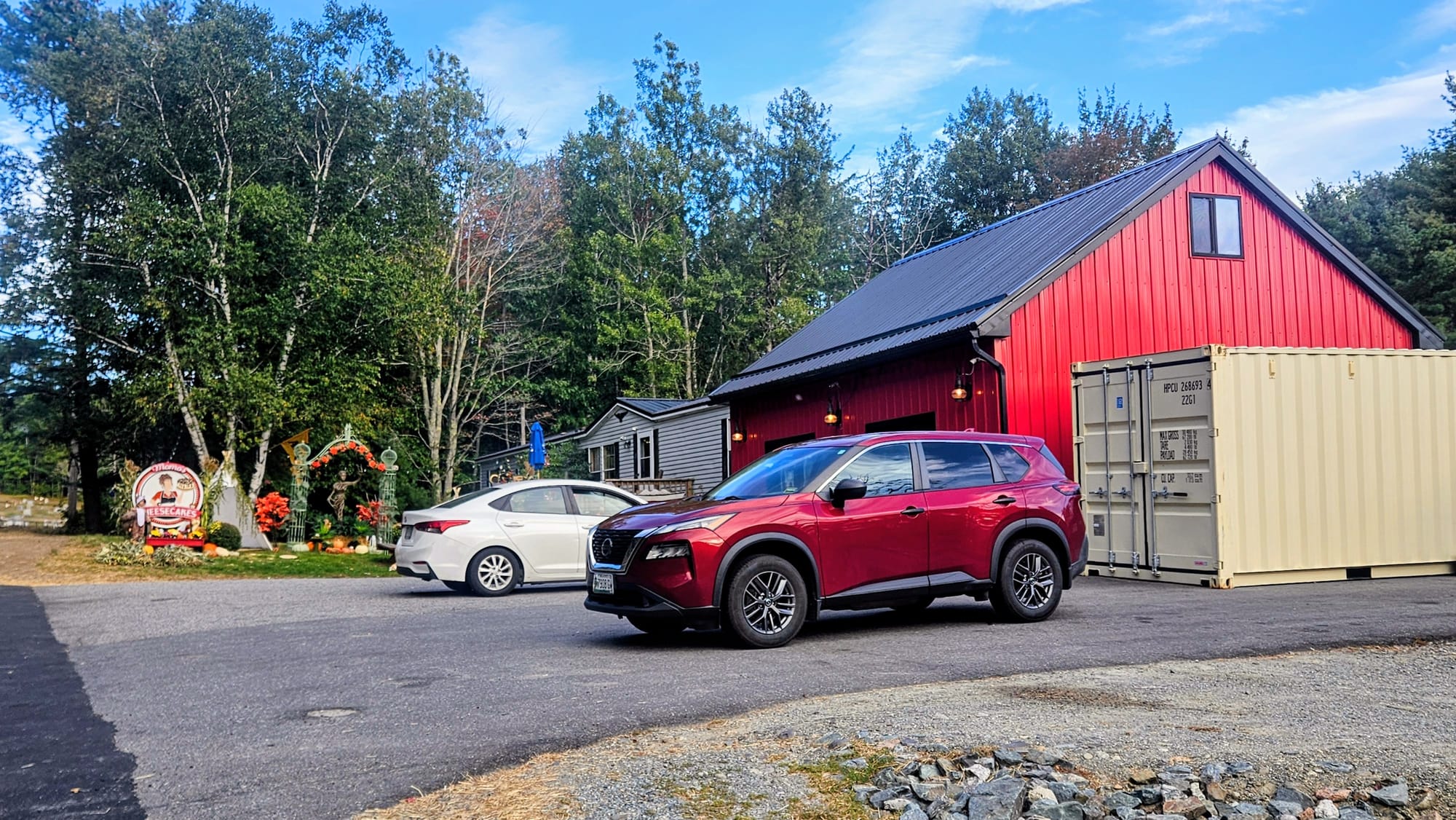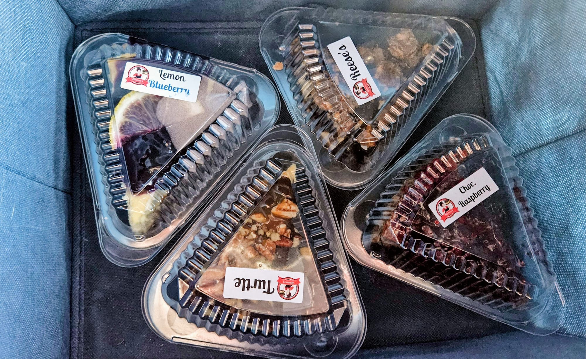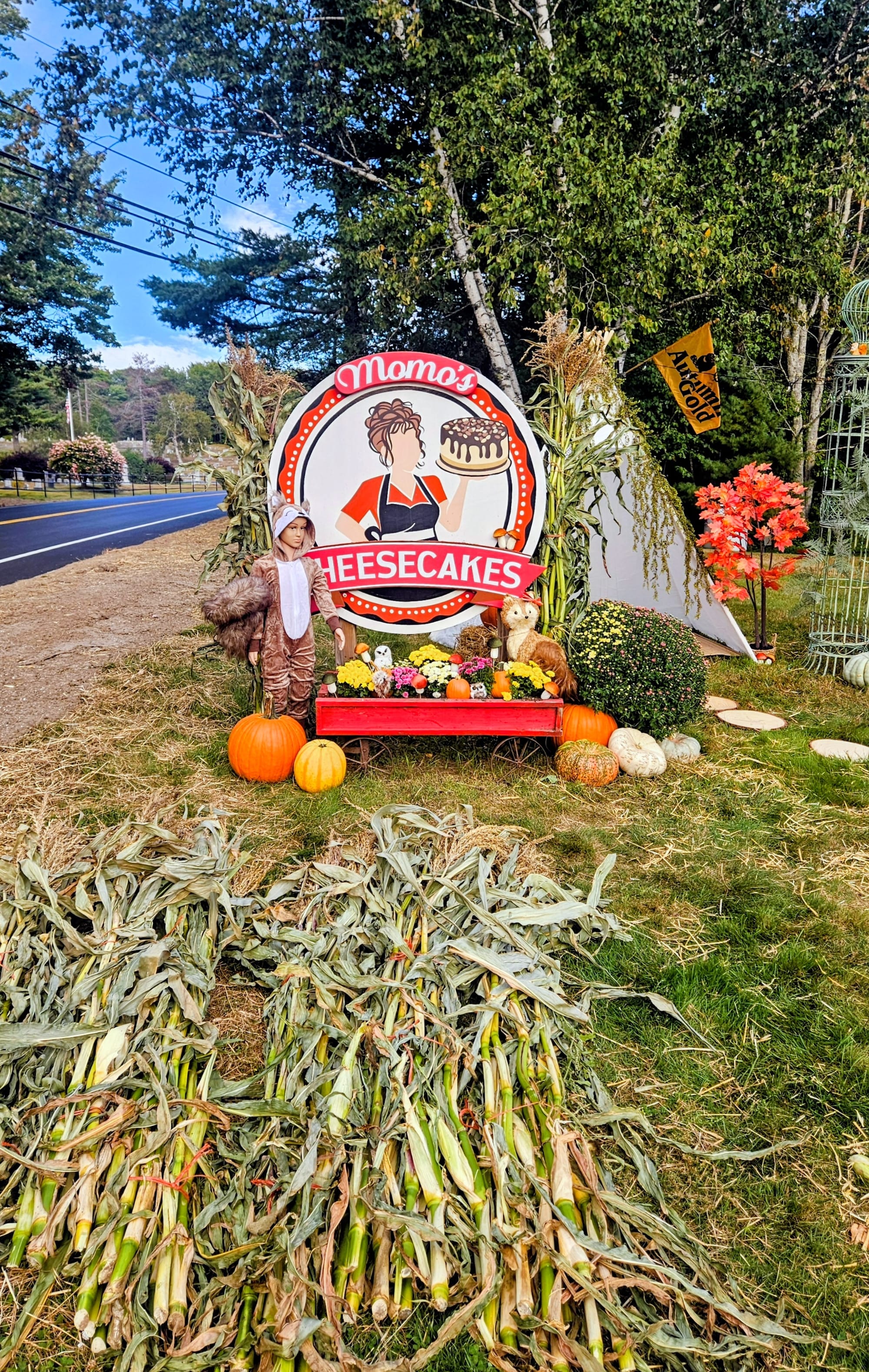 Sometimes Google can't give an accurate idea of the terrain, and I totally missed that, in that wide shoulder in front of the cemetery was a large drainage ditch. Between that and the hills on Main St, we were out of luck. We turned around in a landscape/gravel business parking lot that was closed for the day, and as we made our way back towards Momo's, I knew we couldn't give up that easily. A short ways down the street was a VFW hall, and we thought no one would mind us quickly parking in their lot. It was huge and no one was there anyways. We took the risk. We left the pets in the truck with the engine still running, locked it up, and went .2 miles up the hill to Momo's. We tried to choose our cheesecake slices as quickly as possible, but boy had a lot changed since 2019! The little cheesecake display box was now an entire wall! We had dozens of flavors to choose from. In addition to cash payments, there were also instructions for paying with Venmo. It was great to see how Momo's has grown over the years. With places like this, we worry that they could go out of business or stop making the cheesecakes altogether. This place was thriving. We didn't have time to sign the guest book or write on a Post-It, but we were thrilled to have some slices for dessert over the next few days.
