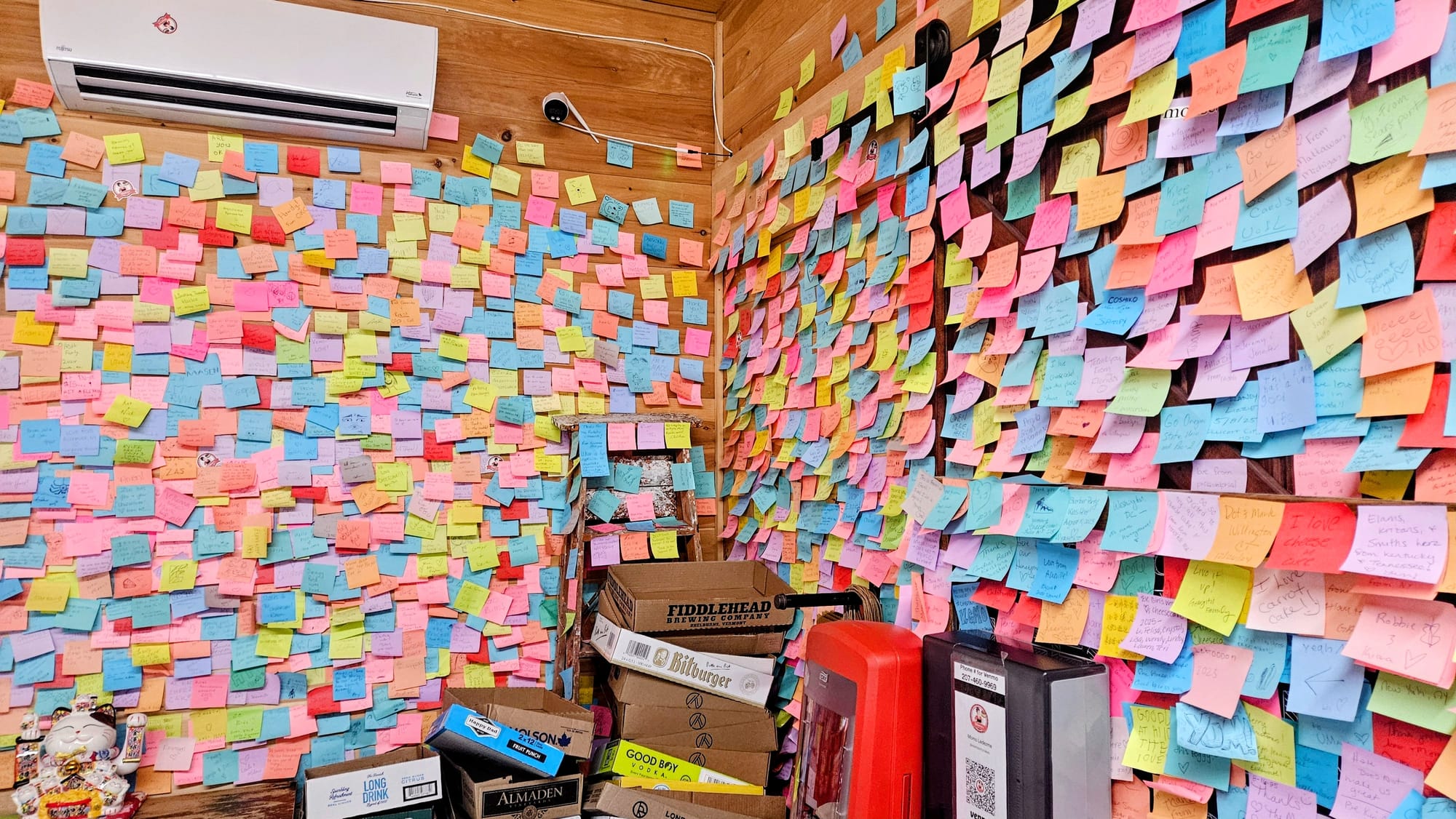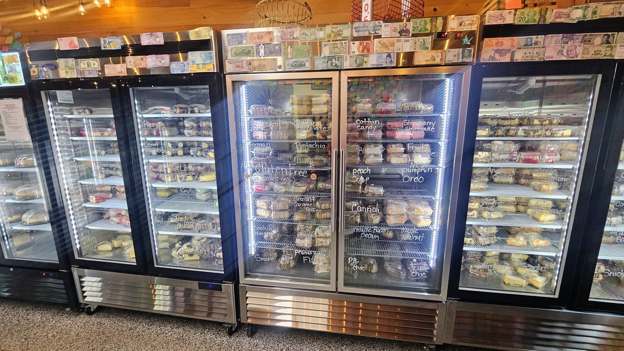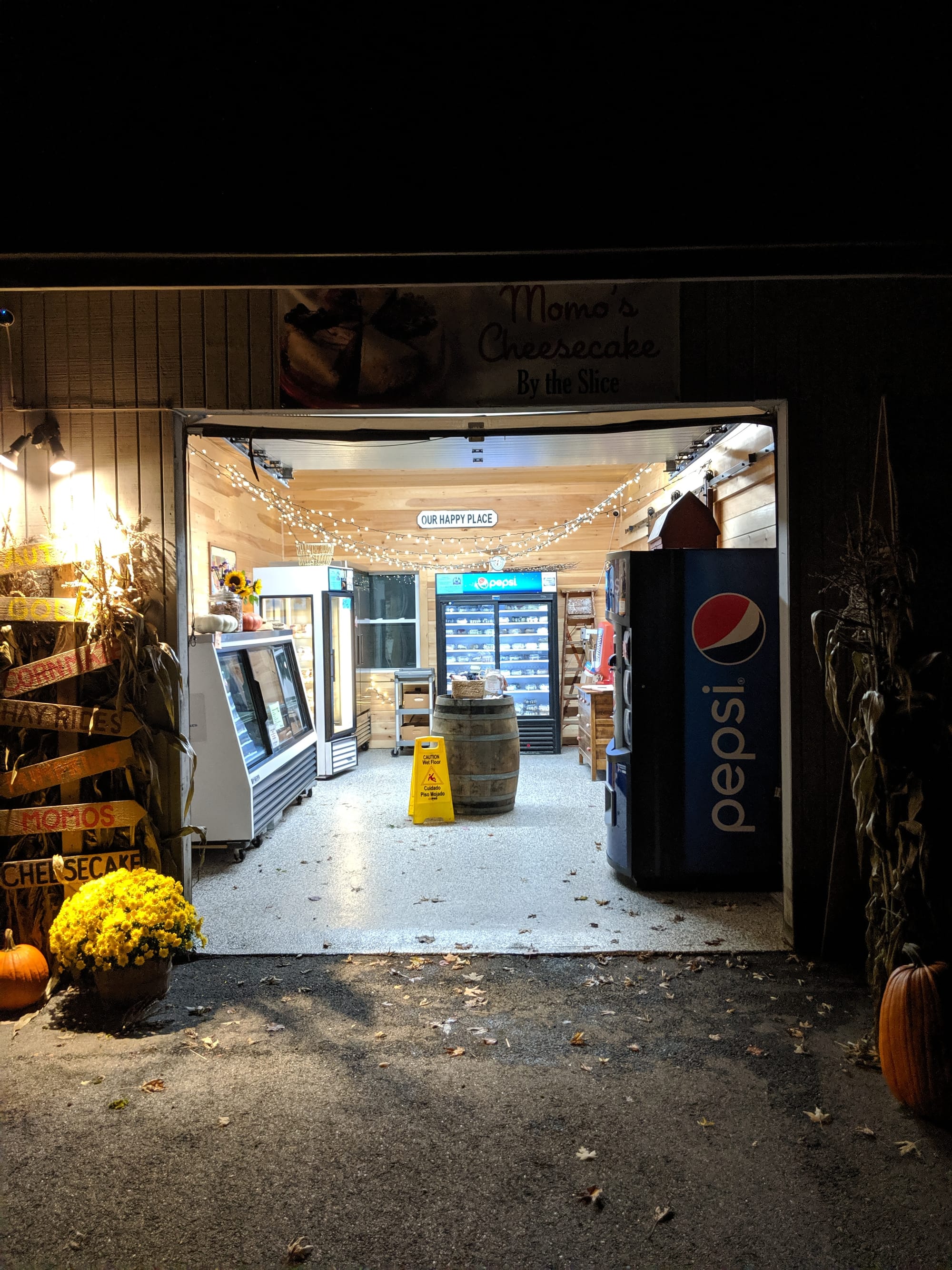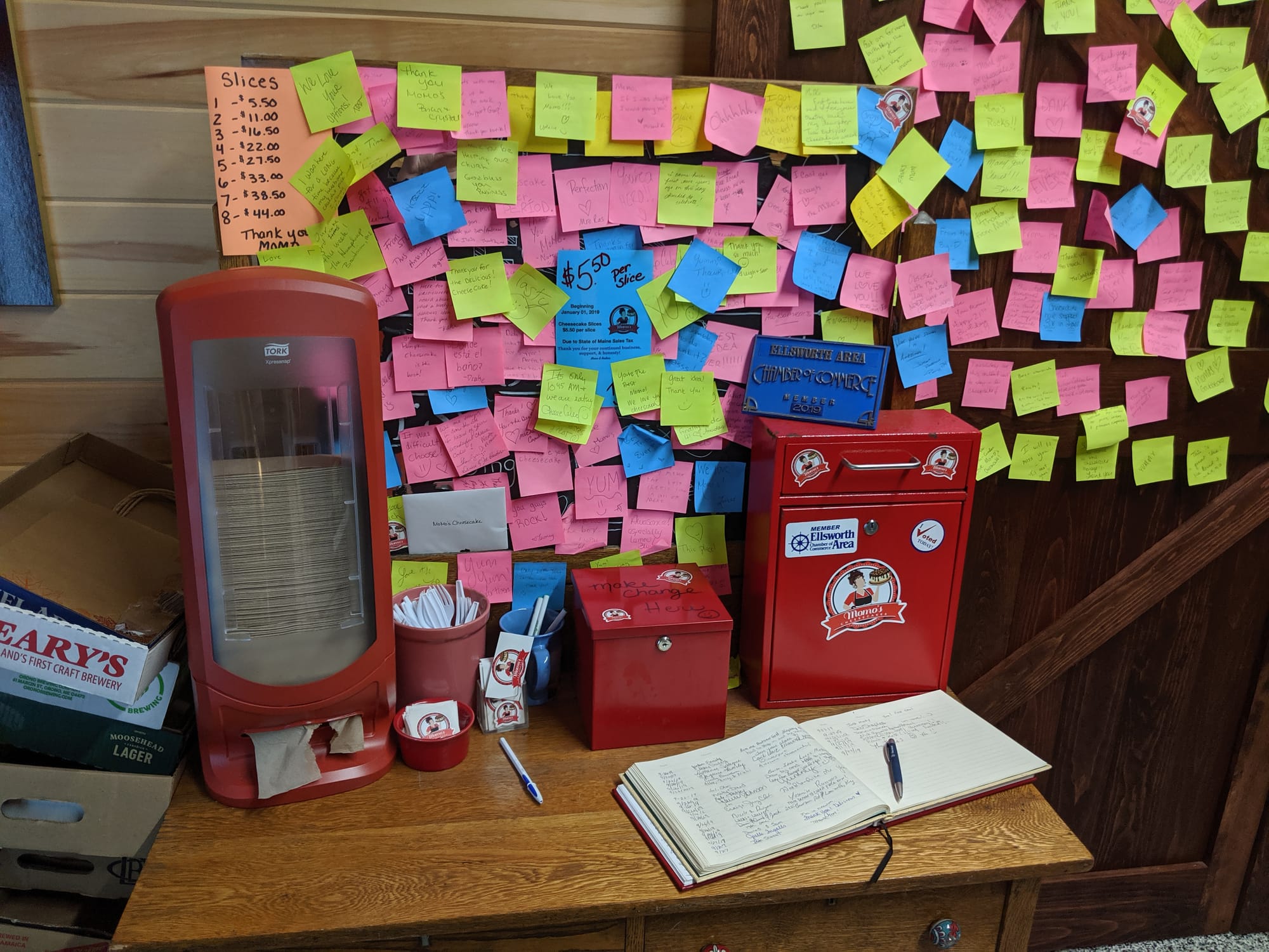 Momo's Cheesecakes is a cheesecake shop run out of a house on Main St. You know us and cheesecake; it's a dessert we simply can't pass up! Beyond our love of cheesecake, though, is our love for this shop. It feels like a step back in time, when things were simple and people actually trusted one another. The whole shop runs entirely on the honors system. You choose your cheesecake and deposit your cash in a lock box. There is also a guest book you can sign, and you can write messages on Post-Its and stick them to the wall. Because no one mans the shop, it's open 24/7. During our 2019 trip, we went late at night.