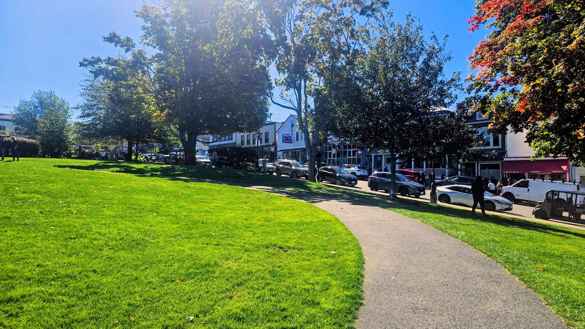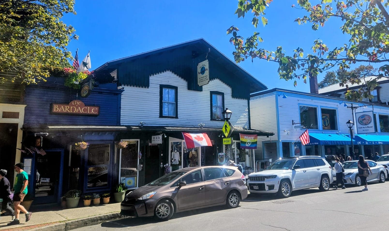 Across from the harbor walk is the Bar Harbor Inn and a hillside lawn, where there was a man playing live music on his guitar. Walking past the lawn, hearing the music, smelling the lobster rolls, and looking at all the quaint buildings, we definitely felt the quintessential New England vibe that we were hoping for.