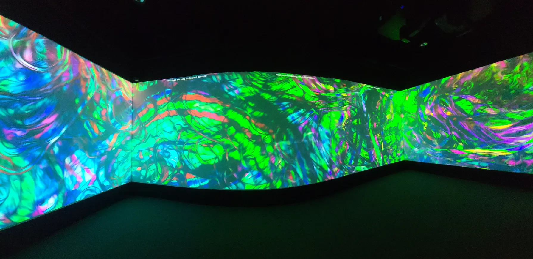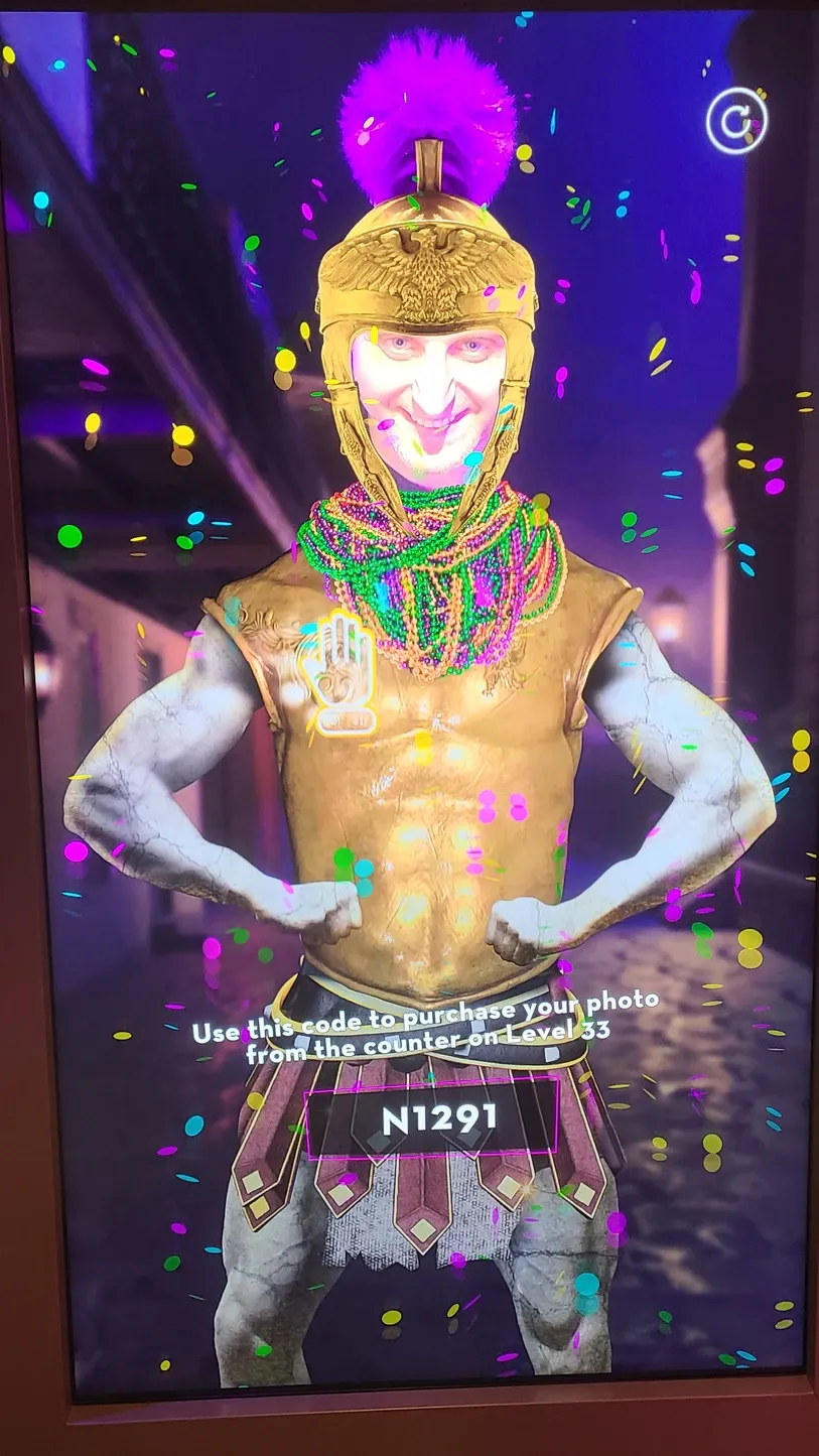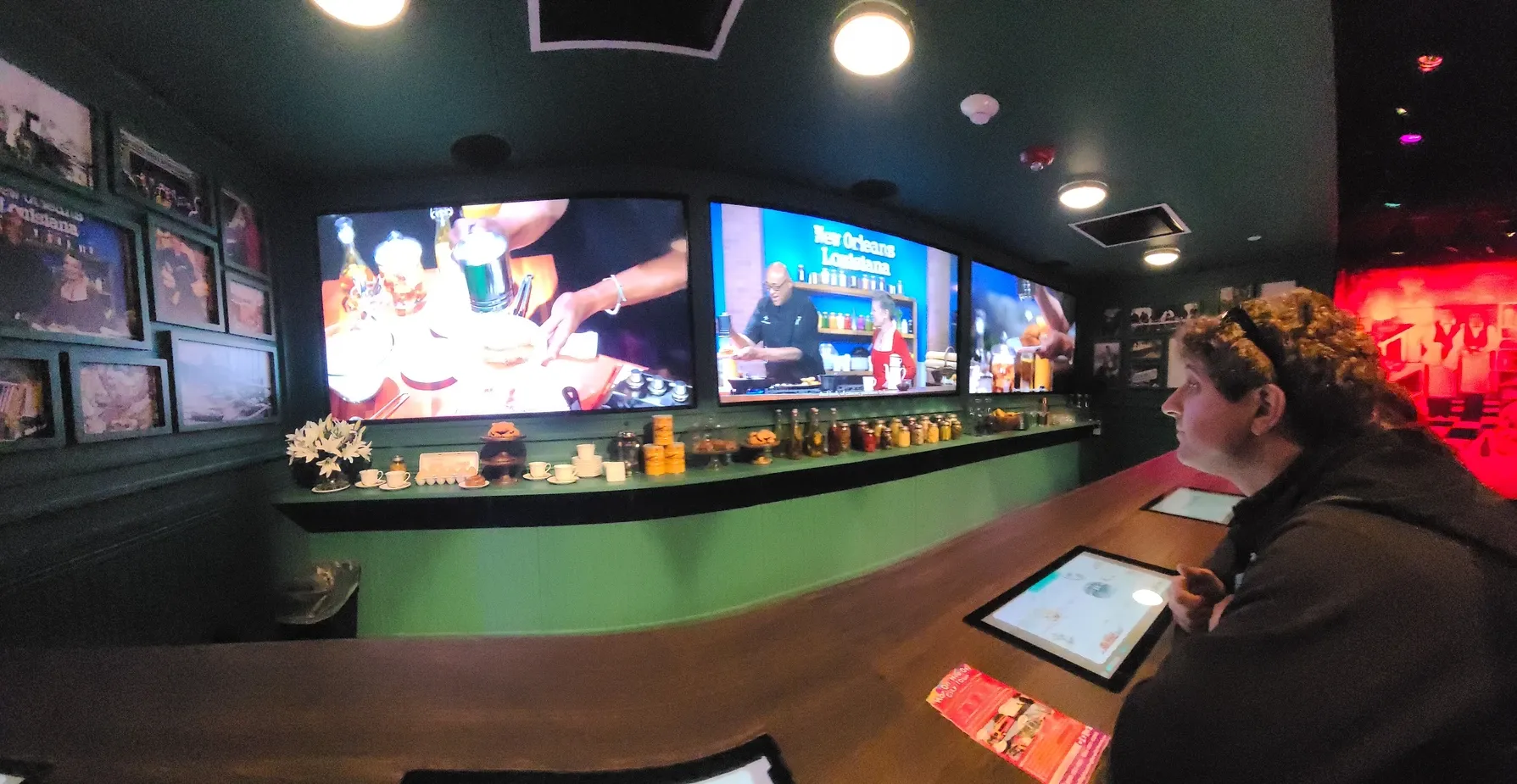 We got great advice on Instagram to park in the Basin Lot on St. Louis Street, which was only $5 for 10 hours and $10 for a full day, had tons of parking, and even allows RVs for $50! The actual inner city RV park is up the street. This parking lot also happened to be recommended by the City Sightseeing Tours, and our hop-on/hop-off tour had a ticket agent and pick-up spot right across the street. We got on and took the bus - a double decker with an open-air top - two stops to the Riverwalk. This area has ferries and boat cruises along the Mississippi, outlet stores, the Harrah's Casino (soon to be Caesars...you heard it here first), and the walk itself along the riverbank. We went for a different reason: Vue Orleans. I had been getting endless NOLA-related ads since arriving to the area, which is weird because usually my ad content is about 3 weeks behind the location I'm actually in. Granted, I was still getting Myrtle Beach ads too, but clearly the NOLA ones were way more useful. Anyway, Vue Orleans came up and I thought it looked cool. I read a couple of things on the website and determined that it was an observatory on the 33rd floor of one of the hotels, and it had exhibits with information about the city. My initial research didn't do this place justice. There are 3 floors of exhibits, and they're all modern, interactive multimedia presentations. On the first floor, you learn about the famous people who make up the history of the city, and there is also a board to learn about the most essential parts of the city - buildings, landmarks, celebrations, and more. All the interactions are touchless. You just gesture to the screen and it picks up your motion. Also on the first floor are exhibits on costumes (where we got to virtually dress ourselves), food, and music. Down the hall was a theater area that showed a film on a 270-degree screen, surrounding us on the left, front, and right sides.
