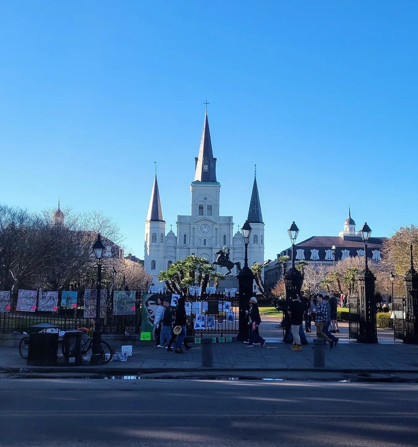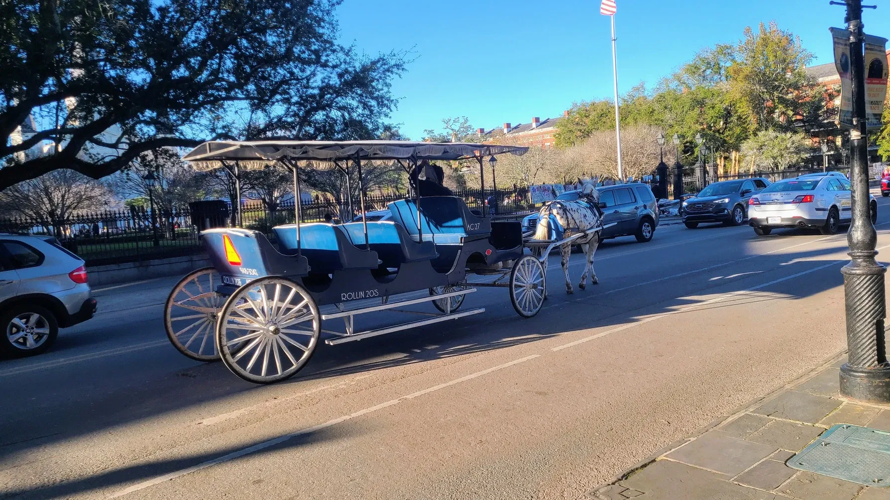 Now for the city itself. It's pretty sad to see how many RVers are quick to comment on the forums how much crime there is and how we need to be "very careful" traveling there, because the city really is a must-visit. Do you research, have your wits about you, and don't let fear steer you away from this place. I had wanted to go for a very long time and was so happy we were feeling well enough to make the drive in. The culture is so unique and rich. The history of blended backgrounds shines through, with the city streets lined with French, Spanish, American, and Caribbean influences. There is great food, music, and nightlife. When we went, the small local parades were starting as a pre-Carnival bash. The big Mardi Gras festivities would begin the following weekend, so we actually hit the city on a "slow week," as our tour guide said. Fine with us; there was no way we were healthy enough for Mardi Gras level hype. But we still got to walk all the shops with their flags and vibrant colors, see some parade floats preparing for their big moment, and feel the energy of the locals and tourists as they anticipated the upcoming weeks.