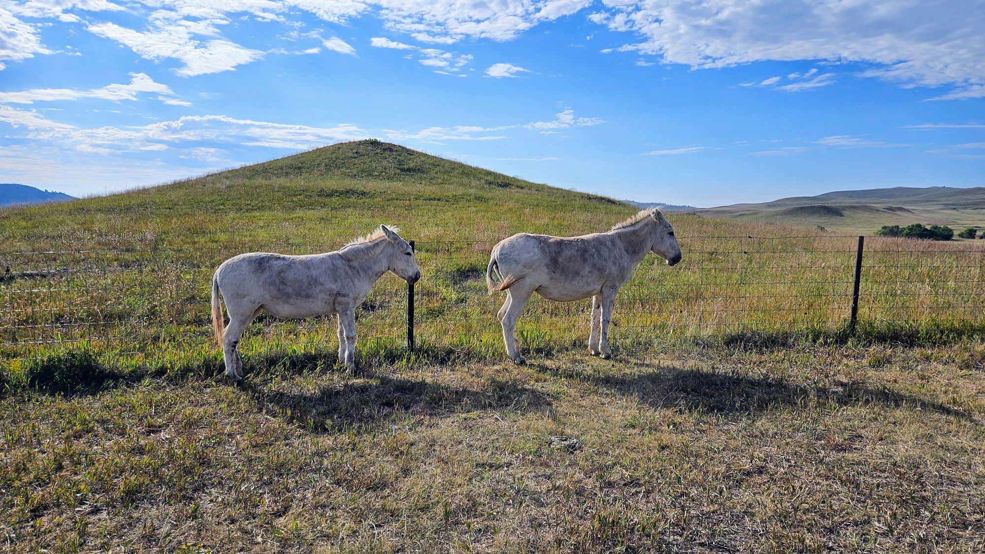 The Custer State Park "begging burros" used to work as pack animals to help visitors ascend Black Elk Peak, the country's highest peak east of the Rockies. When those trips ended, the park retired the donkeys and released them. Now, this small feral herd delights visitors by giving us all an experience that's basically the opposite of a typical wildlife encounter. We're allowed to get close, and trust me, the donkeys wouldn't have it any other way. Even though they mostly eat prairie grass, they remain hopeful that a friendly human will give them an extra tasty treat. When we drove the Wildlife Loop, we came upon a begging burro party that was already in full swing. People were out of their vehicles, giving the donkeys apples and carrots. Other people remained in their cars and set up more of a food takeout window. We wondered if visitors were actually allowed to feed them, or if everyone was just blatantly ignoring the rules. I did some research later on and, to the best of my knowledge, understand that feeding them isn't condoned, but it's not actually harmful the way feeding an actual wild animal is. I will say, though, it provided some good entertainment!