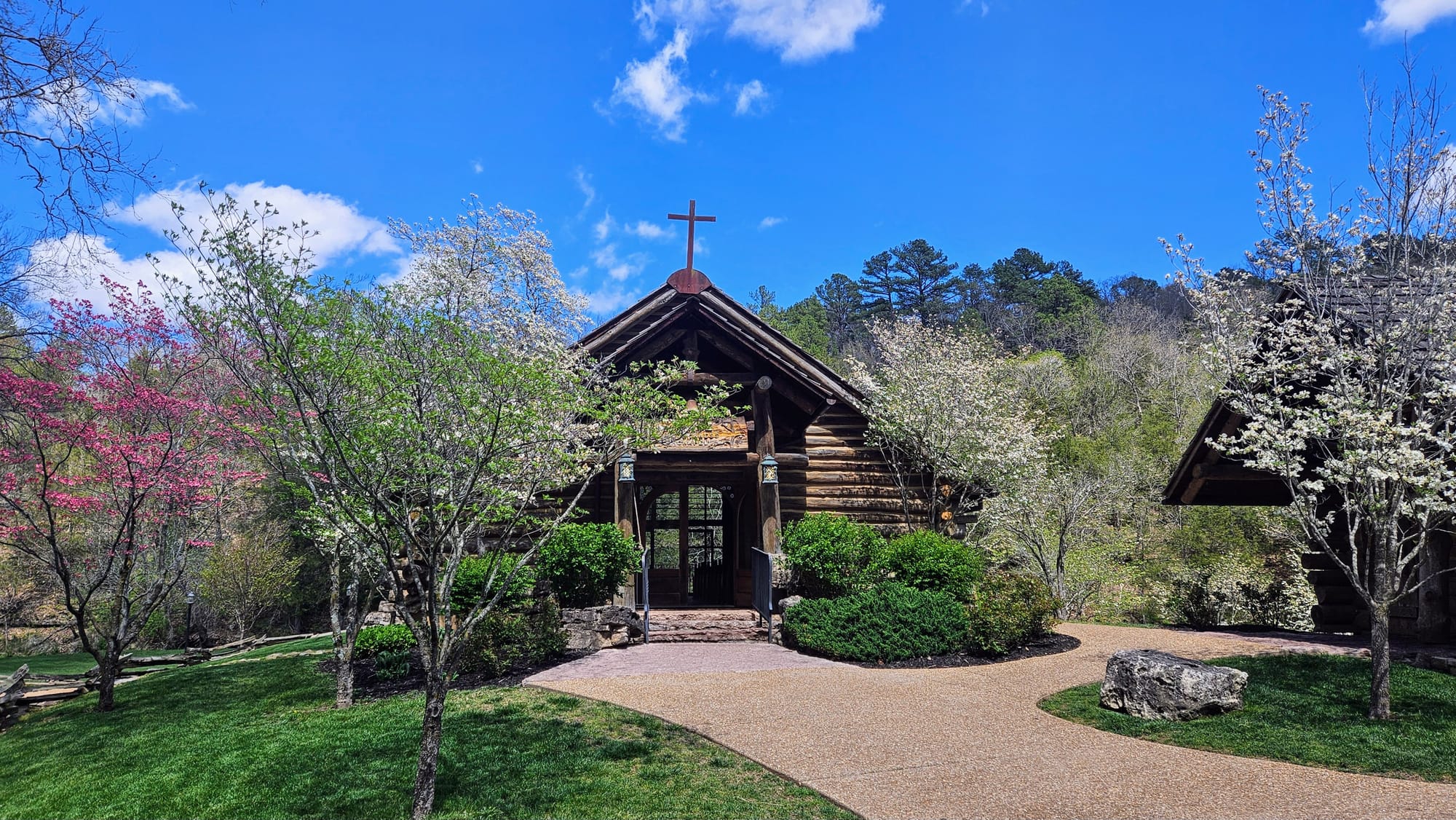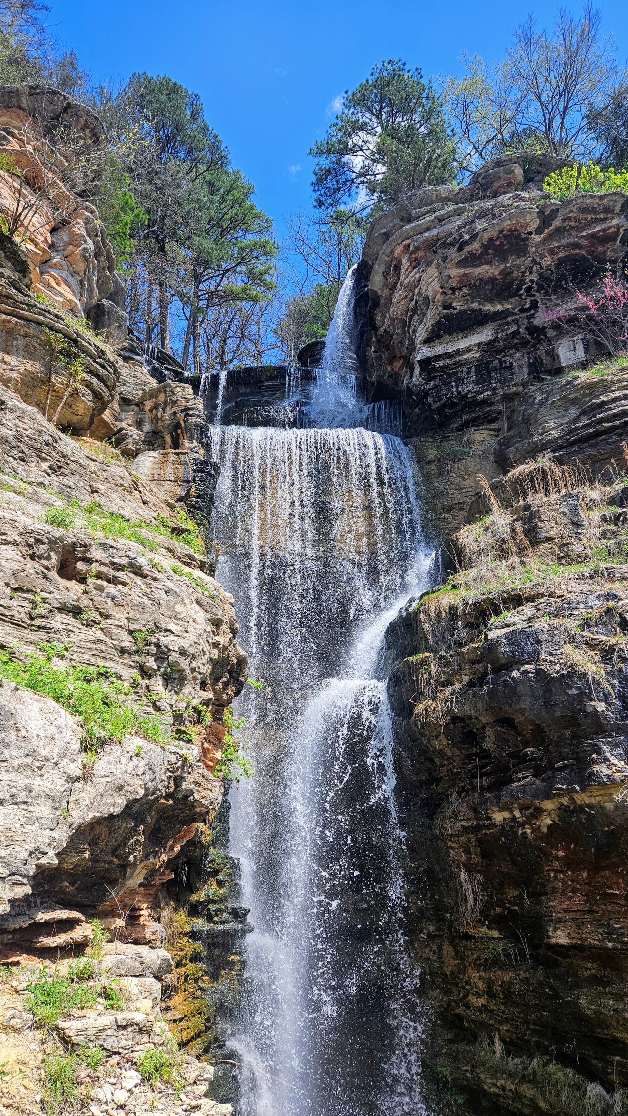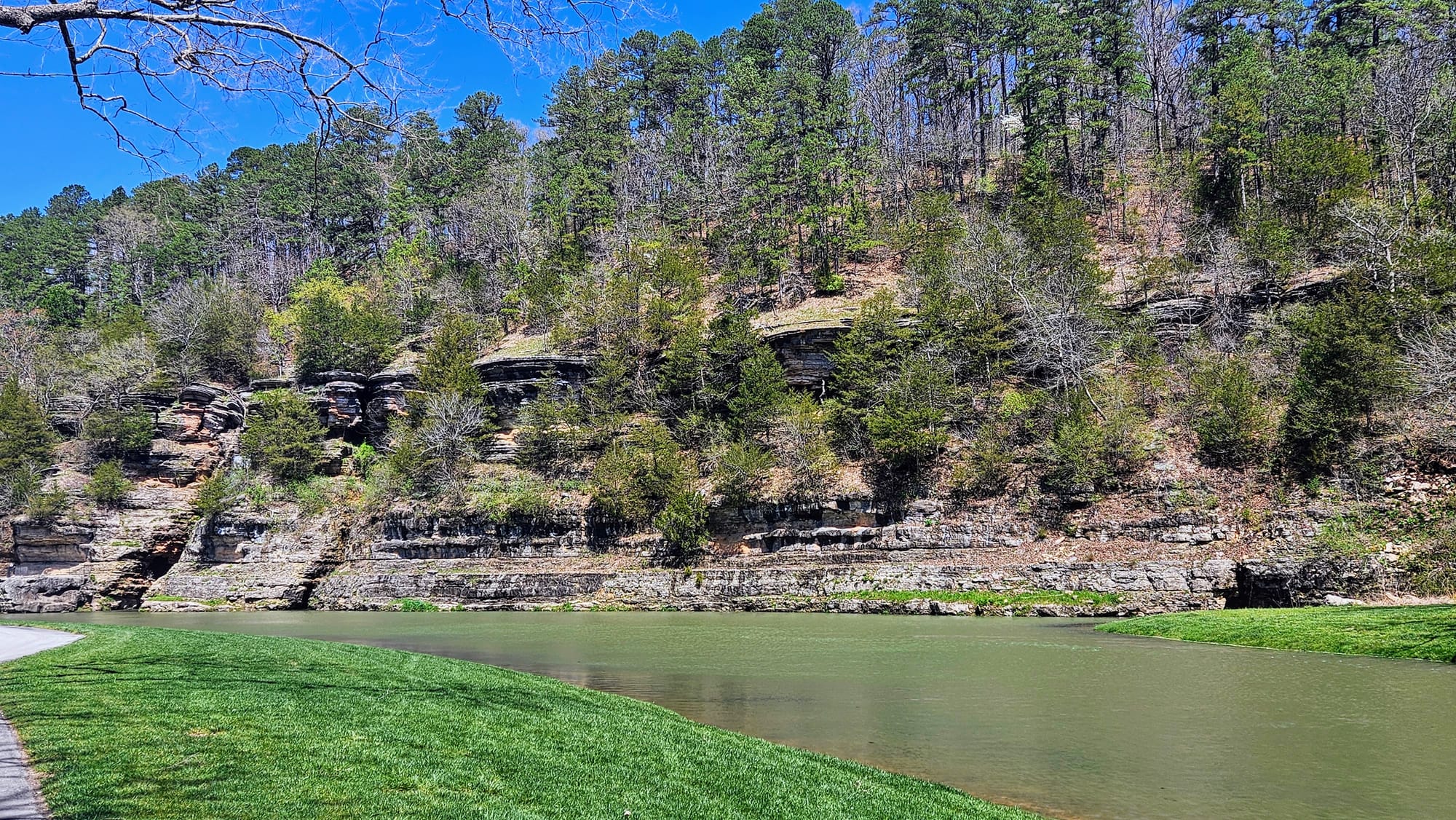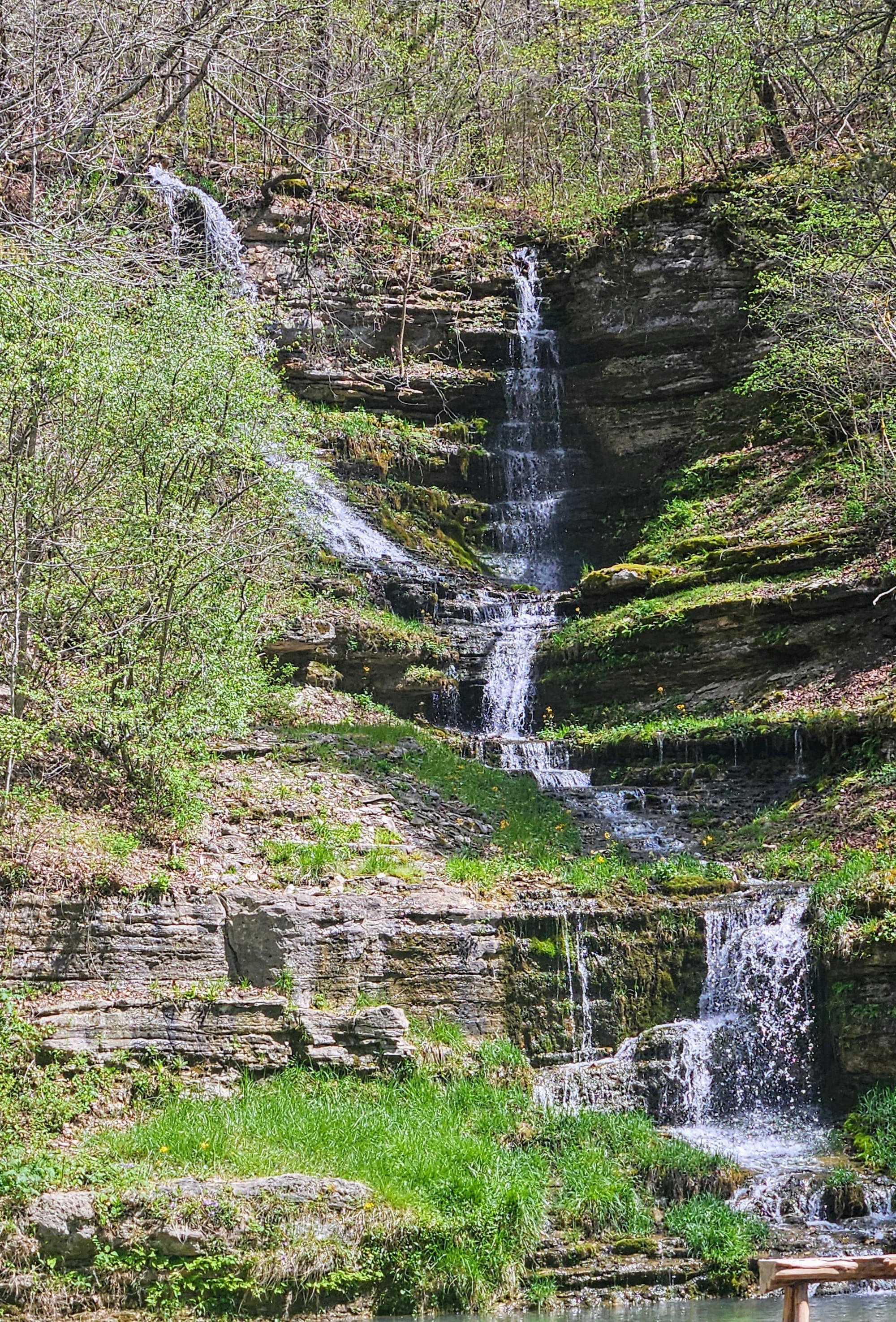 Our first full day was rainy, but that gave us time to get work done before our adventures. The following day, the sun came out and gifted us a perfect spring day. Instead of going to Branson right away, we went to the town of Lampe, home of Dogwood Canyon Nature Park. The park is a 10,000-acre nature preserve with some unique features, including a wildlife sanctuary, grist mill, treehouse, restaurant, and gallery exhibiting Native American and Civil War relics. We were able to see most of these with a general admission ticket, but we purchased an add-on, a 2-hour tram tour through the entire preserve, including the wildlife pasture which is otherwise not accessible to visitors.