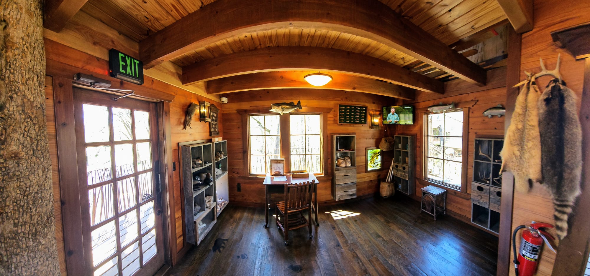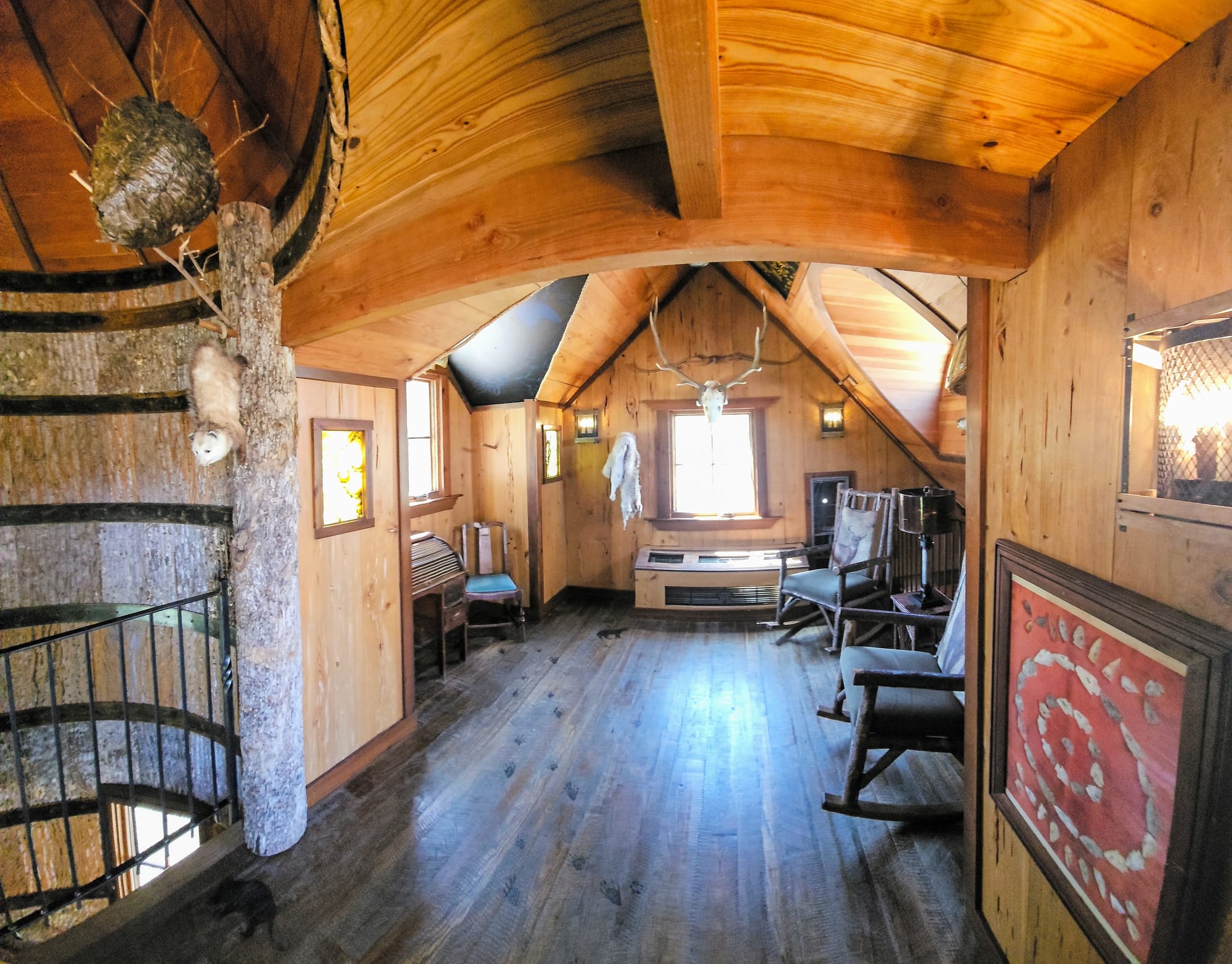 When walking the paved road, you can't miss the incredible treehouse located between the main buildings and the amphitheater. It was built on the TV show Treehouse Masters back in 2015 and features two levels, a suspension bridge, and great views of the canyon.