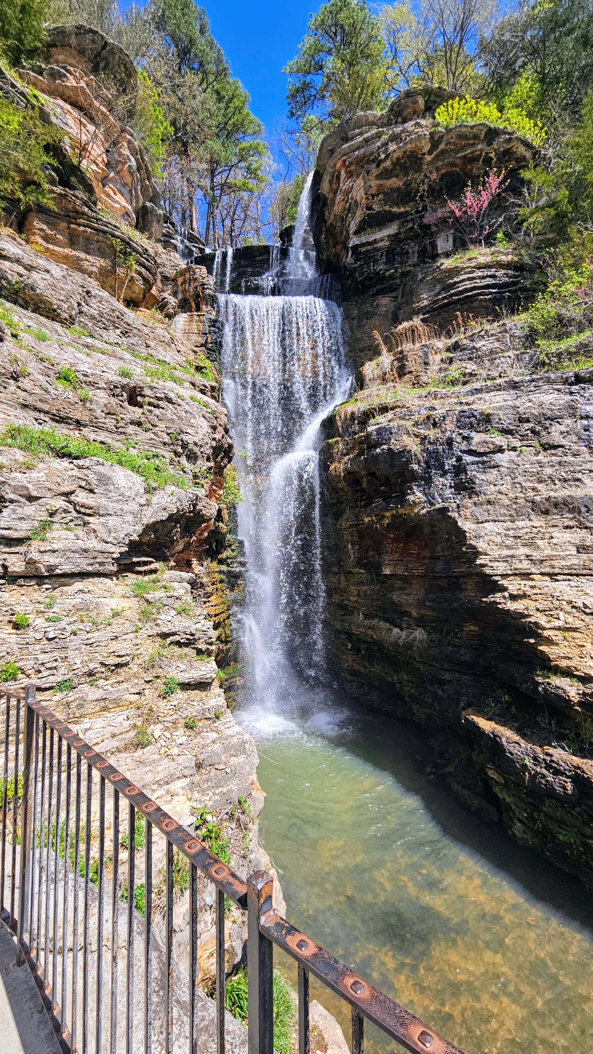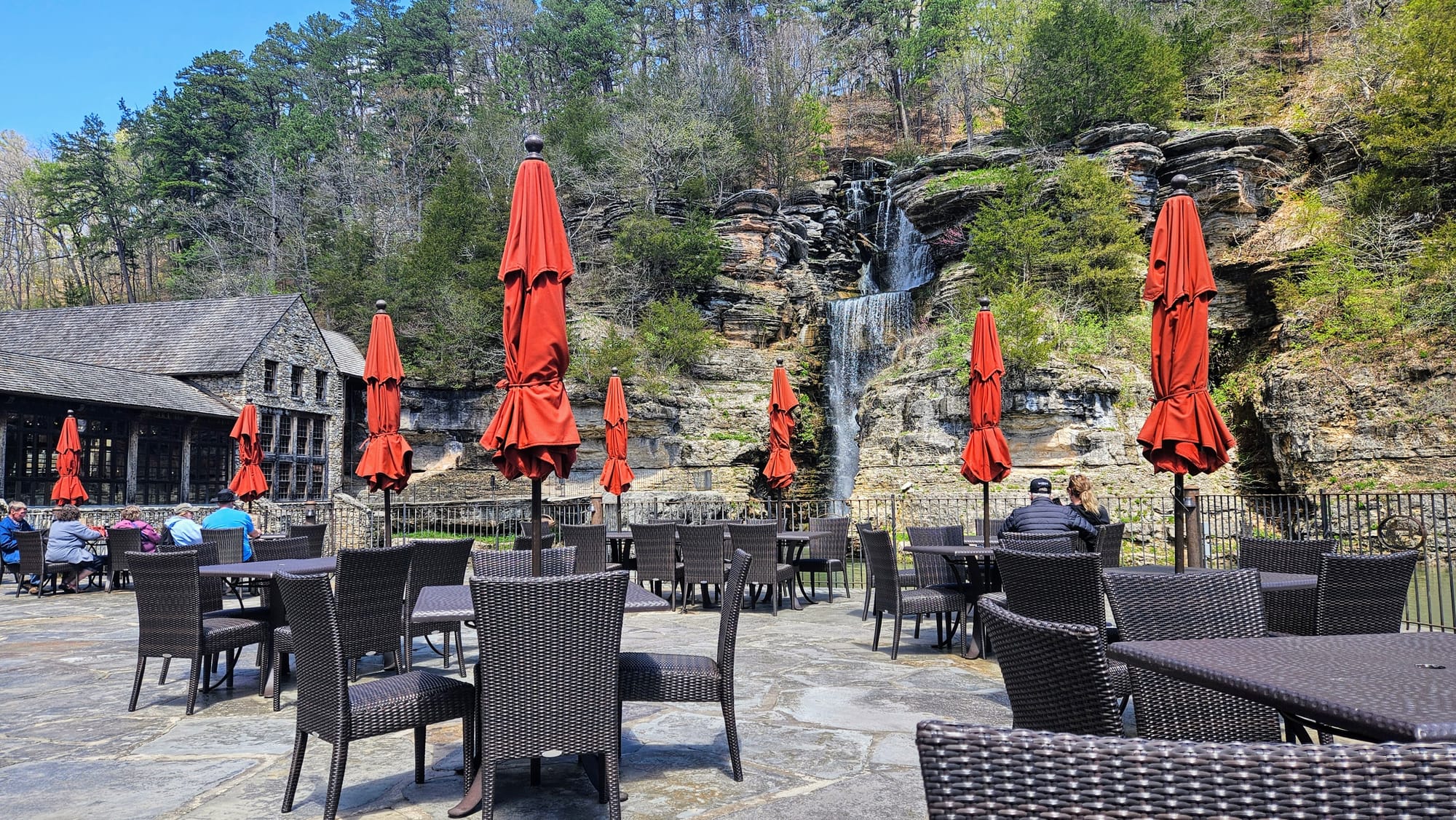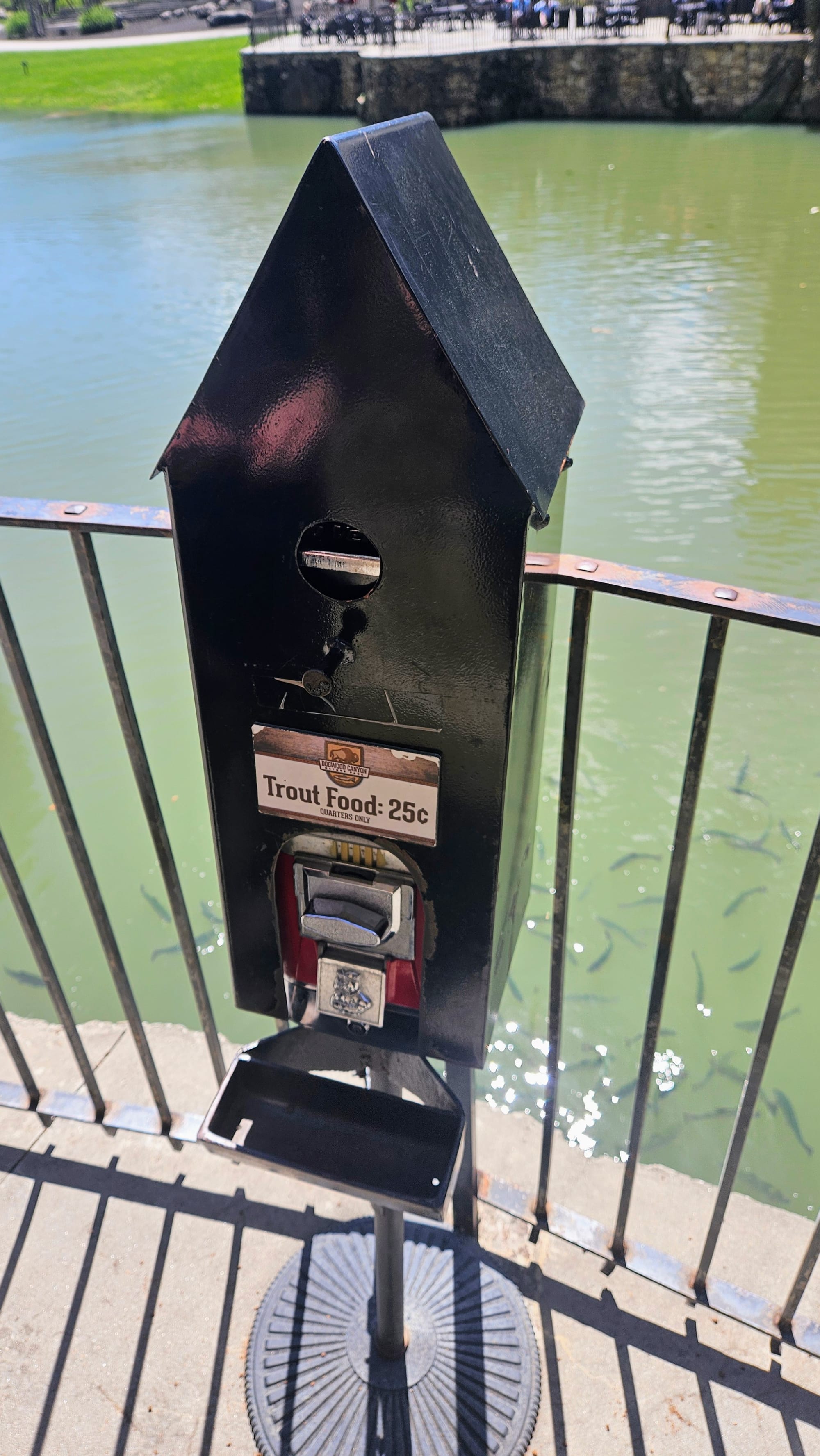 We didn't even come close to experiencing all that Dogwood Canyon has to offer. We appreciated seeing what we did from the tram, but there are hiking trails and features in the back of the preserve that we only passed by. Experiencing them up close would mean hiking or biking several miles. We couldn't justify walking 5 miles to a trailhead, only to hike another 1.5 miles, and then 5 miles back. However, whether you head all the way to the other side of the park or just stay near the entrance, you will be surrounded by natural beauty. In fact, one of the most picturesque waterfalls can be accessed right from the grist mill. A patio overlooks this exquisite waterfall, and below are trout that you are allowed to feed from the provided dispenser.