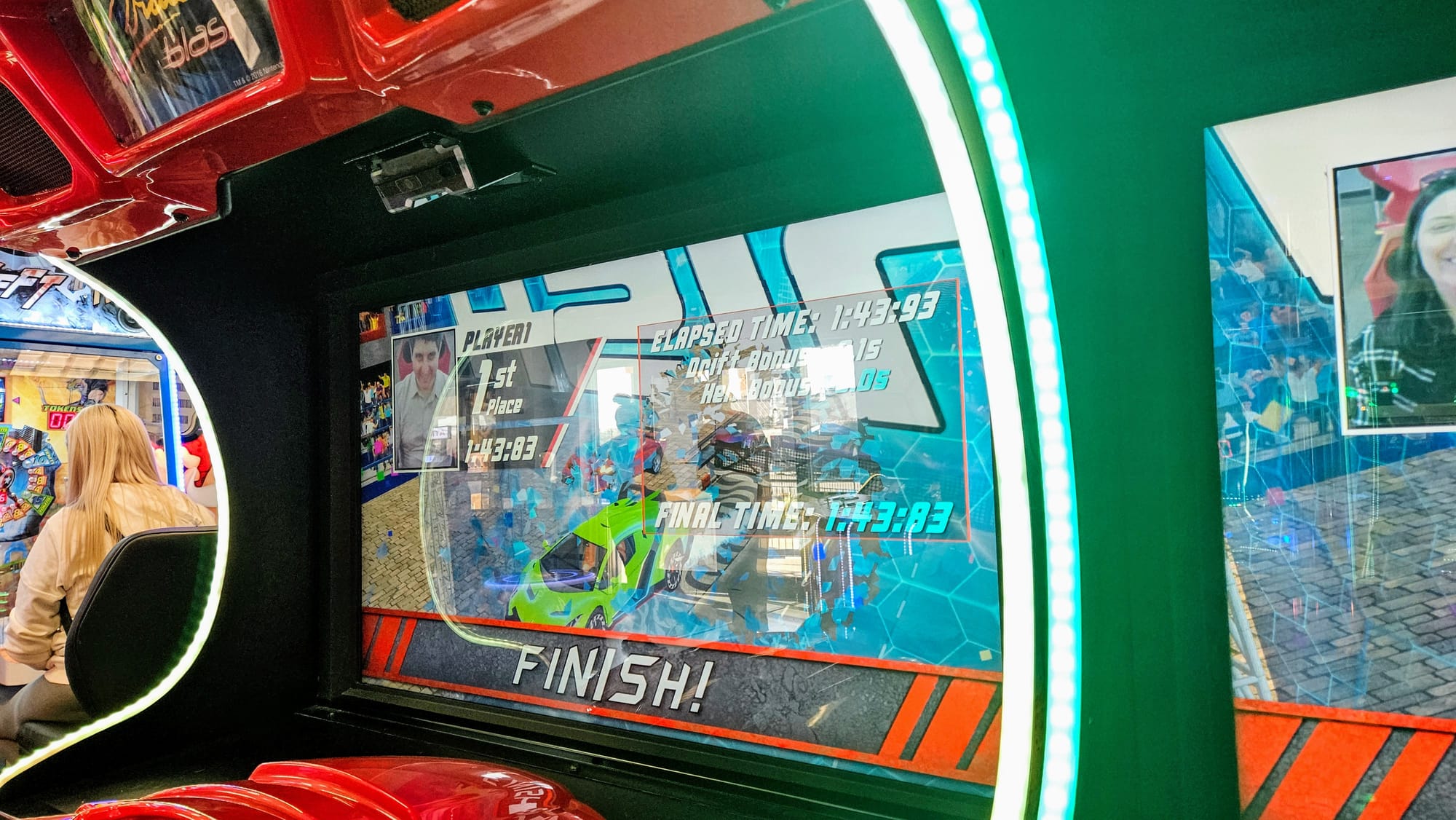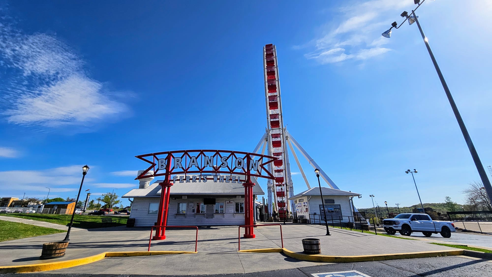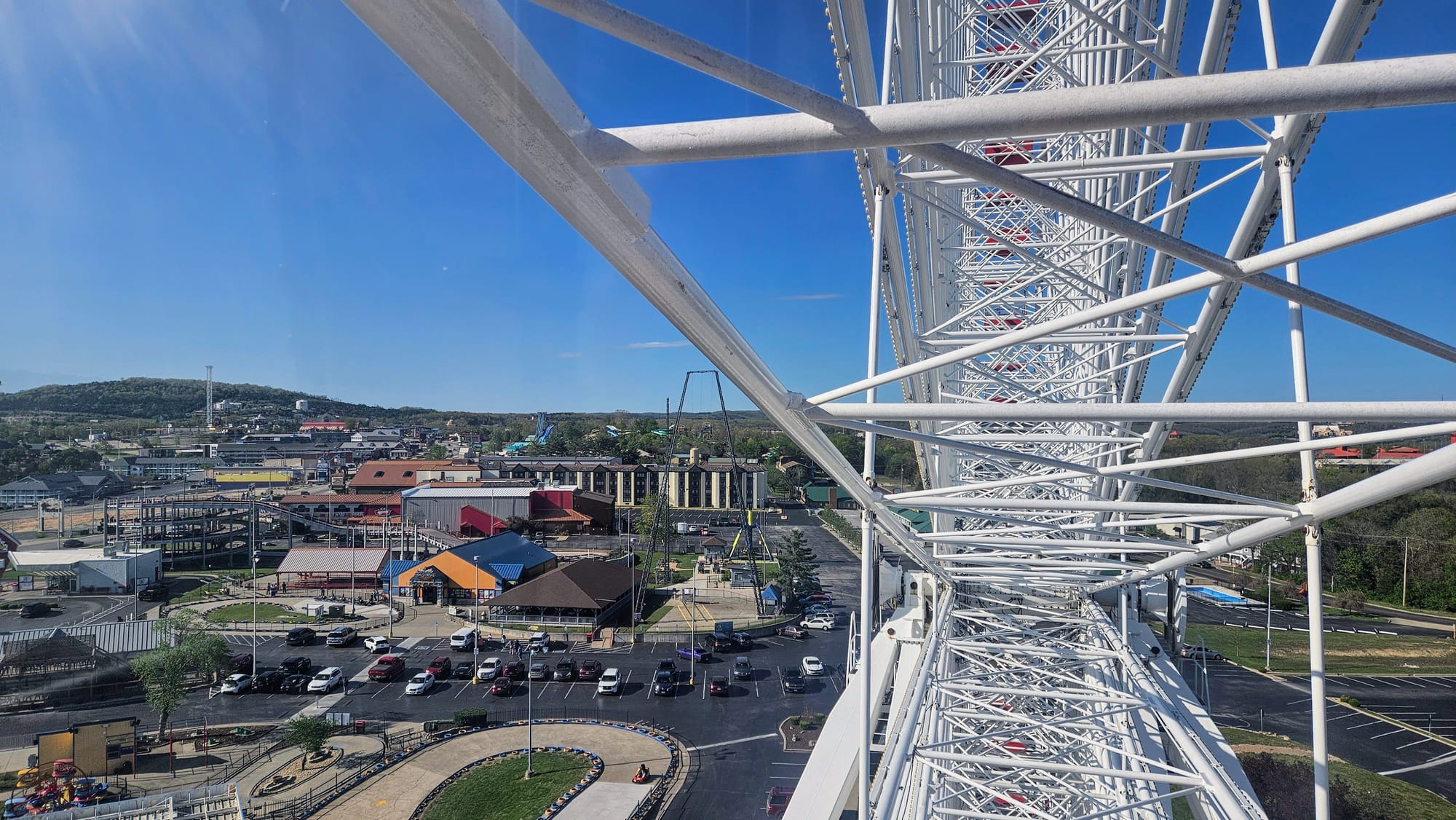 It was time to resume our quest to get in touch with our inner children. Branson has a Ferris Wheel, where we could ride and see the sights from above. The wheel's location is at Tracks – as in, go-cart tracks. In addition to the wheel, there are multiple go-cart tracks, an arcade, and a restaurant on site. We opted in for text notifications, which gave us 5 free plays each at the arcade, and so after our Ferris Wheel ride, we spent some time honing our skills on the games.