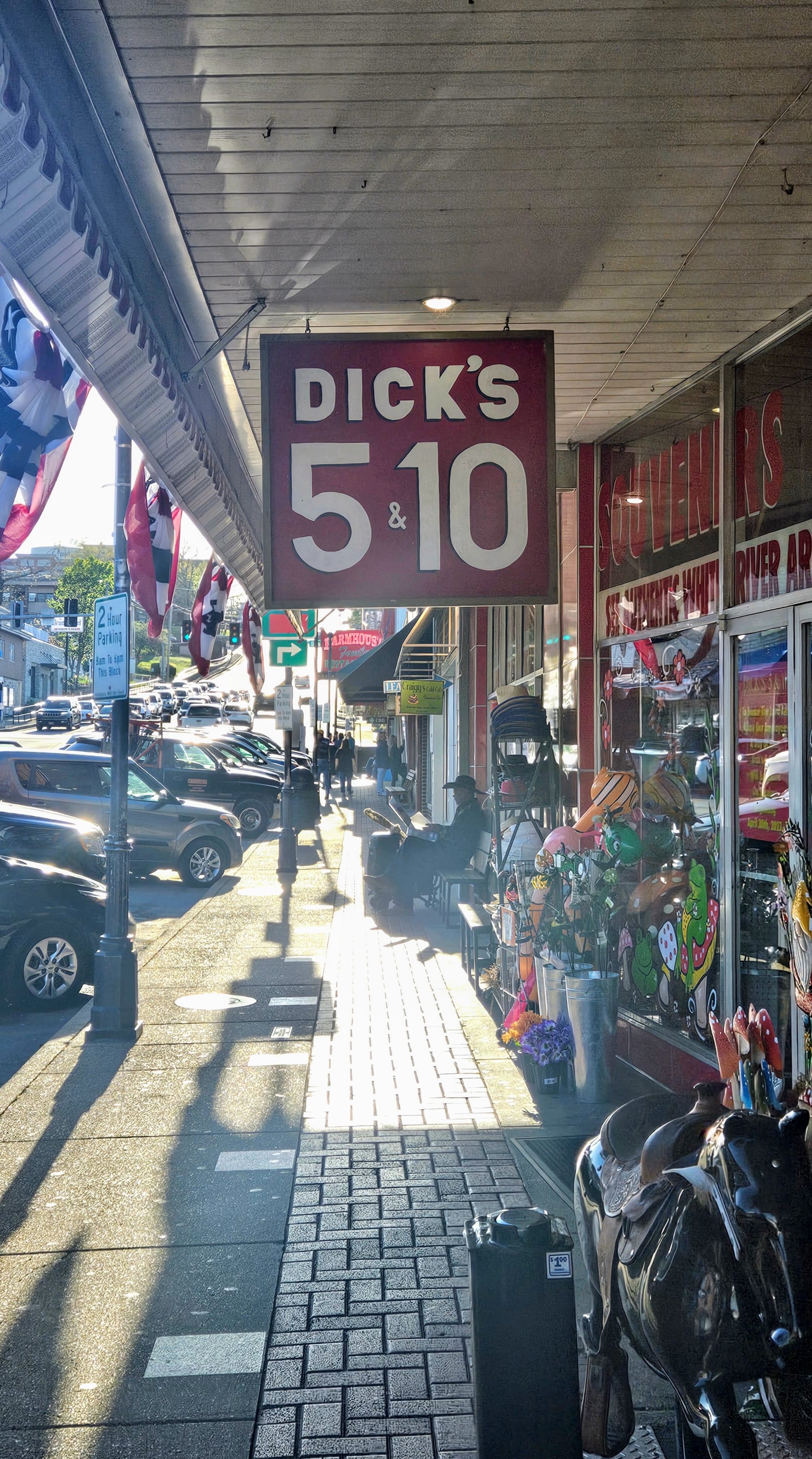 We ended our day driving down to The Landing, the riverfront shopping center located across town. Once again, we got major Pigeon Forge vibes. Just like The Island at Pigeon Forge, The Landing had lots of outlets, a fountain show, and some rides. We didn't stay long but were able to see the fountain show (which had water and fire). Then on our way back to the truck, we did some souvenir shopping at Dicks 5 & 10, the quintessential "has everything" shop – cluttered and junky, but great deals on all the things.