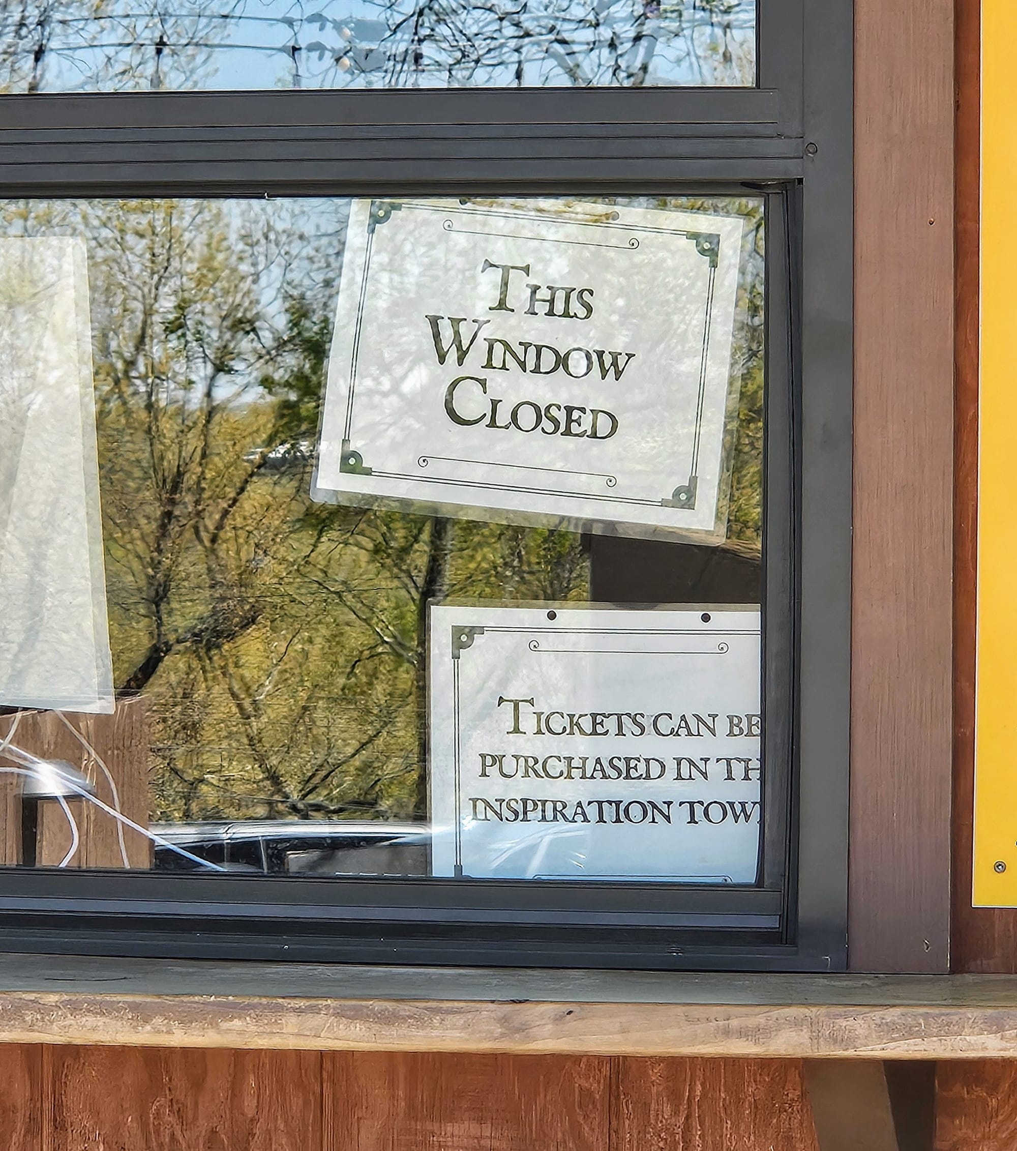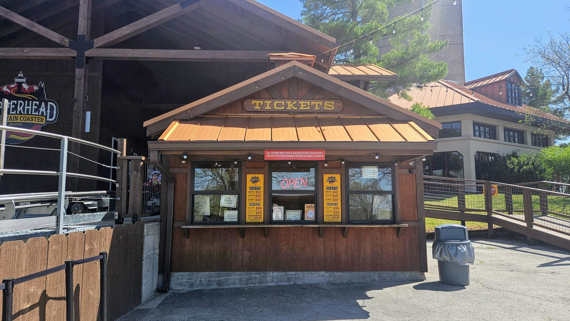 To make matters worse, before we left the adventure park area, we figured we would just redeem our coaster tickets so we'd have them in-hand. Somewhere in the 5 minutes we were inside the tower, the coaster ticket booth had closed. The neon sign still said it was open, but no one was manning the window. The sign on one of the windows said that the tickets could be redeemed inside Inspiration Tower, where we had just come from. We decided to deal with that issue later and just try to get our actual general admission tickets.