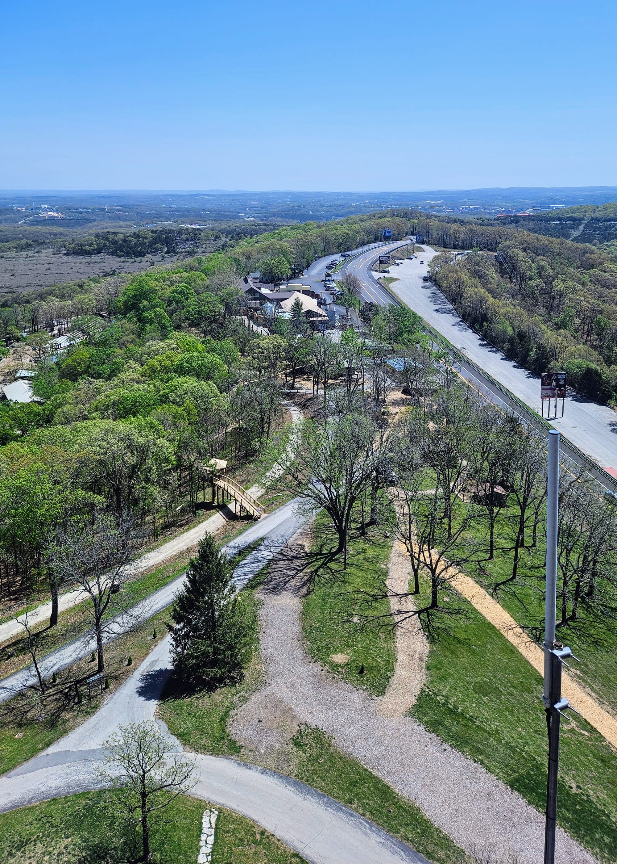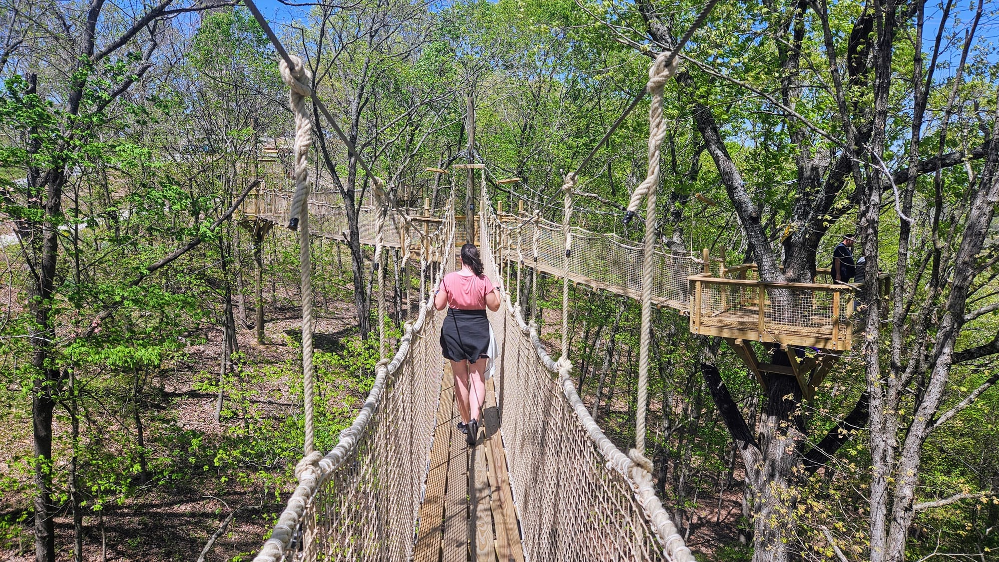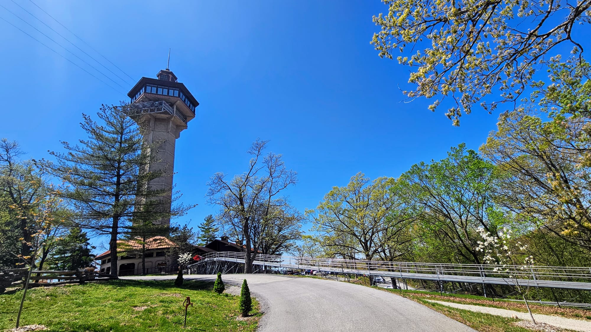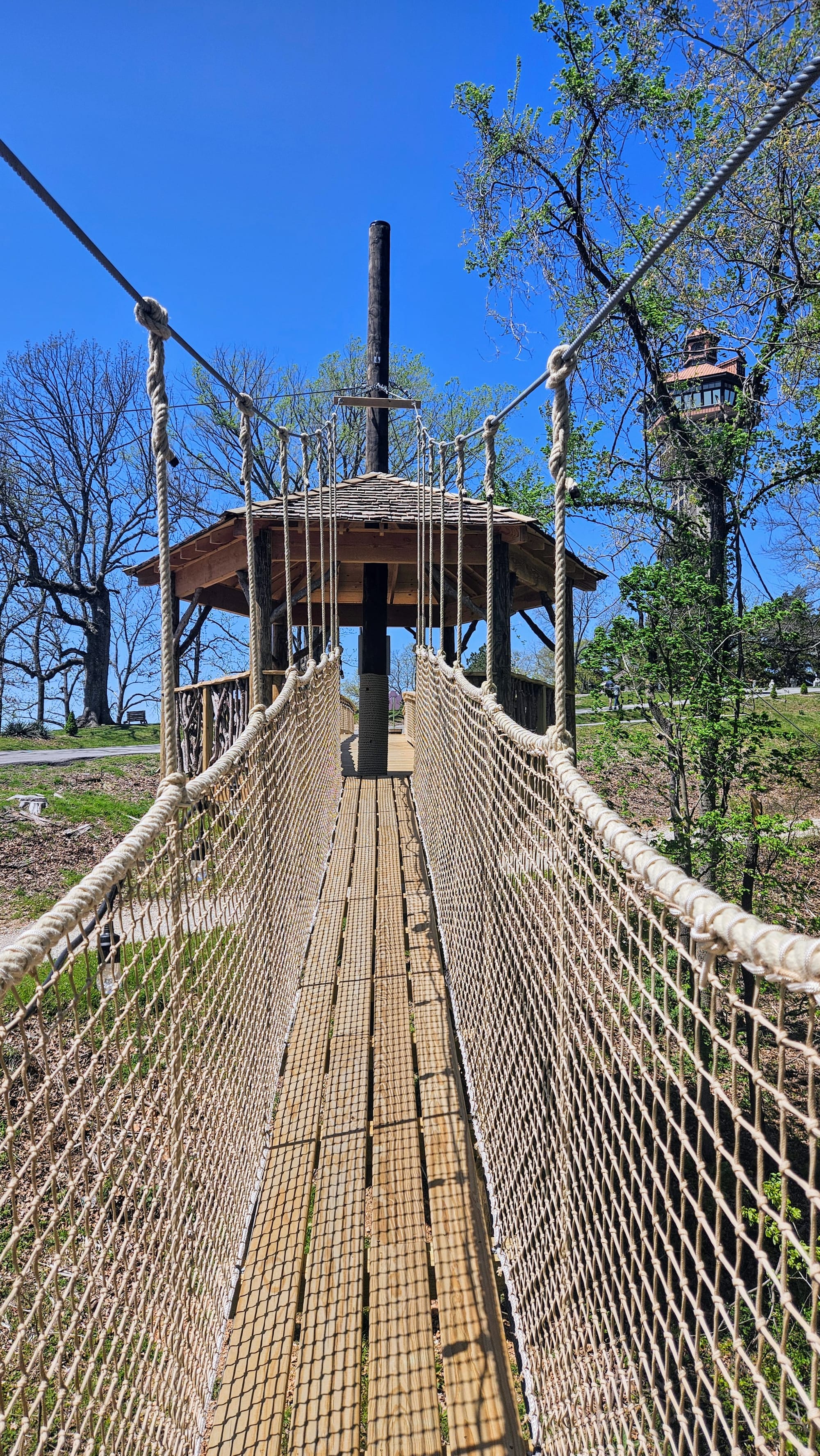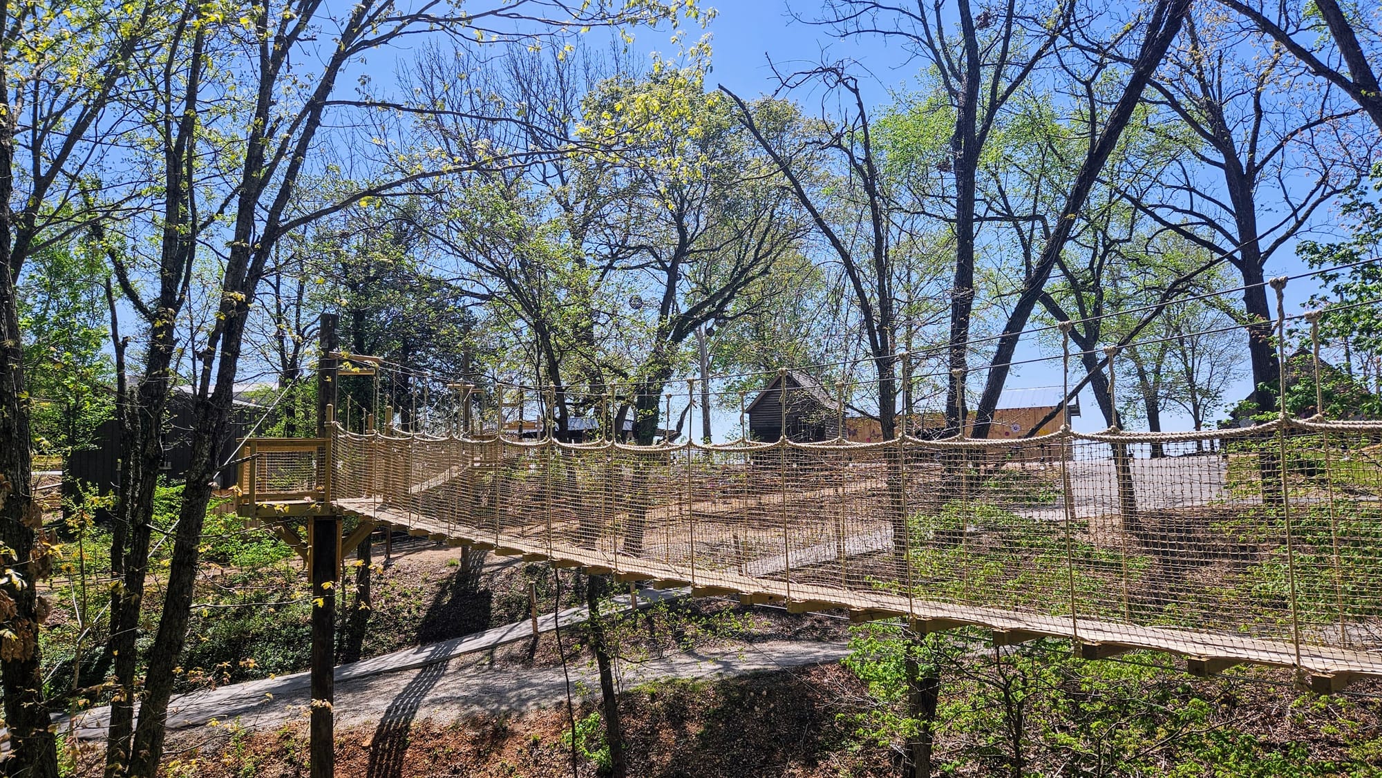 We did the treetop suspension bridge, and as soon as we exited, noticed the adventure park right up the hill. That's when we realized we could have just walked instead of wasting all that time. On the way back up to the park, we stopped at the sculpture garden and chapel. Then we went back inside the Inspiration Tower and convinced the lady to let us up. There was absolutely no structure to taking the elevator. We shared it with the zipliners and were "supposed to wait in line," but the zipliners were all signing their waivers and getting checked in, so we just snuck around them and went up the elevator.