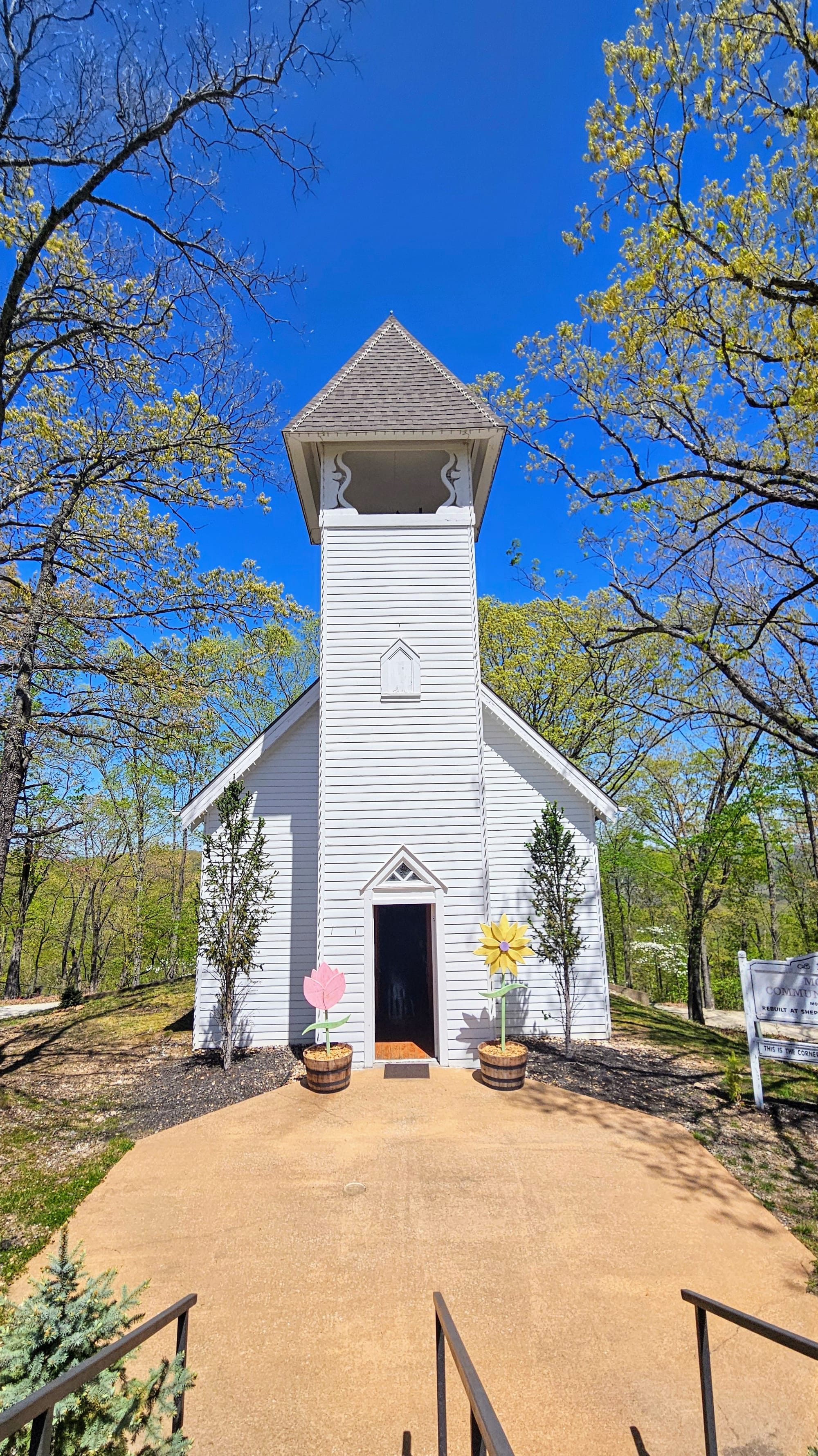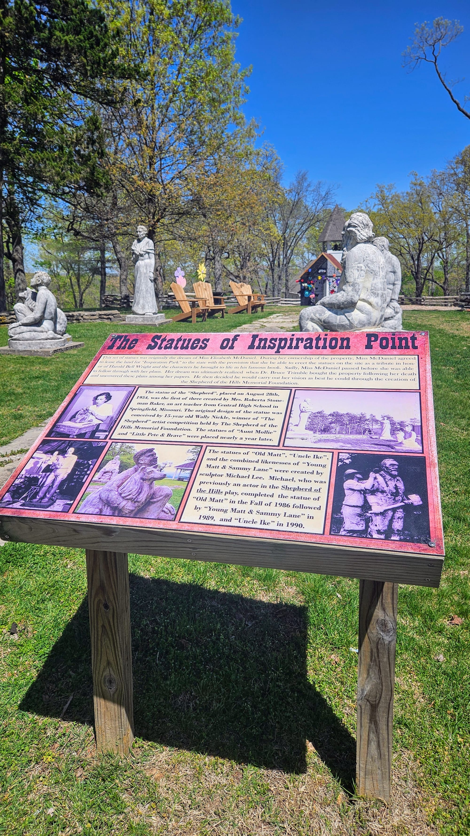 Our main activity of the day was Shepherd of the Hills, located a few miles outside downtown. It's a farmstead that has grown in popularity because of a book by Harold Wright. In fact, this book is one of the reasons Branson has become so well-known. Even though the farm aspect still exists, Shepherd of the Hills has grown into a mini-destination. It offers food, productions at the outdoor theater, an observation tower, 9 hole mini golf, games and gem mining, tubing, a treetop suspension bridge, a ropes adventure course, ziplining, a mountain coaster, a sculpture garden, a chapel, and so much more that we can't even list everything. Sounds like an amazing place to spend the day, right?