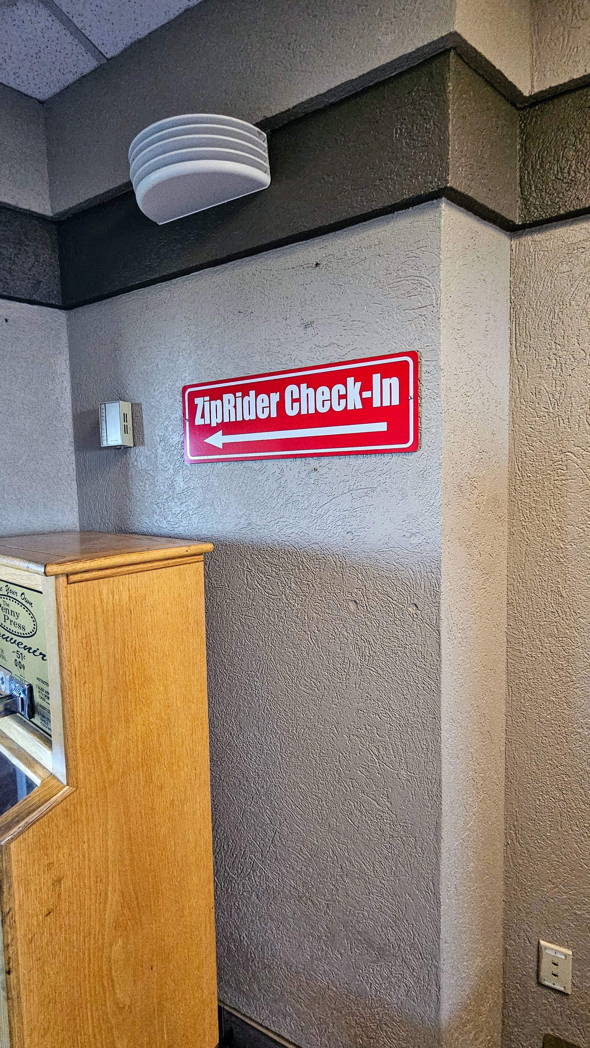 Want to zipline at Shepherd of the Hills? Just be sure to know where you're going! The "check-in" is through an emergency exit only door. Also, why are they calling it a check-in when that's clearly down in the tower lobby? They do not make things easy around here.