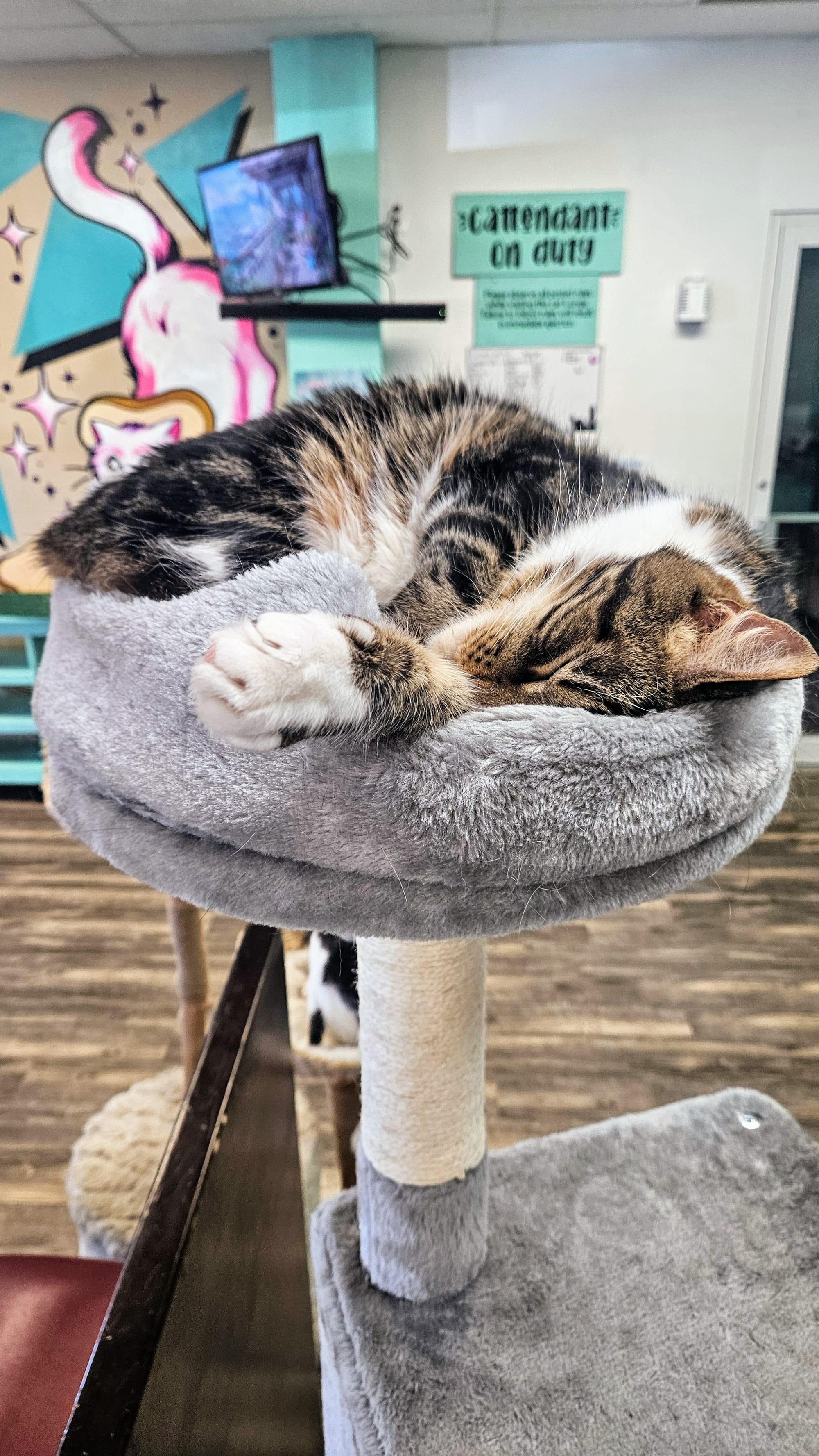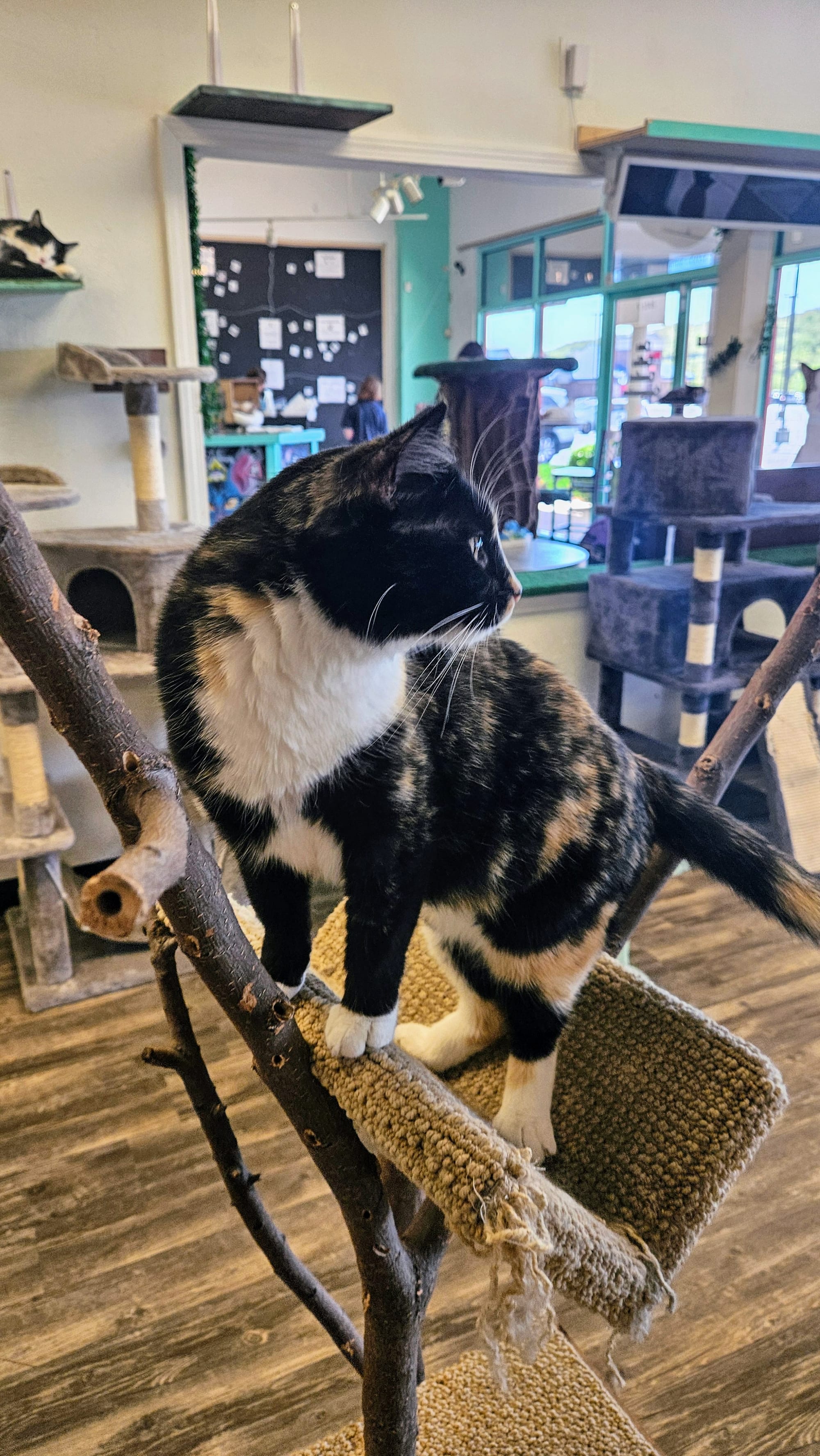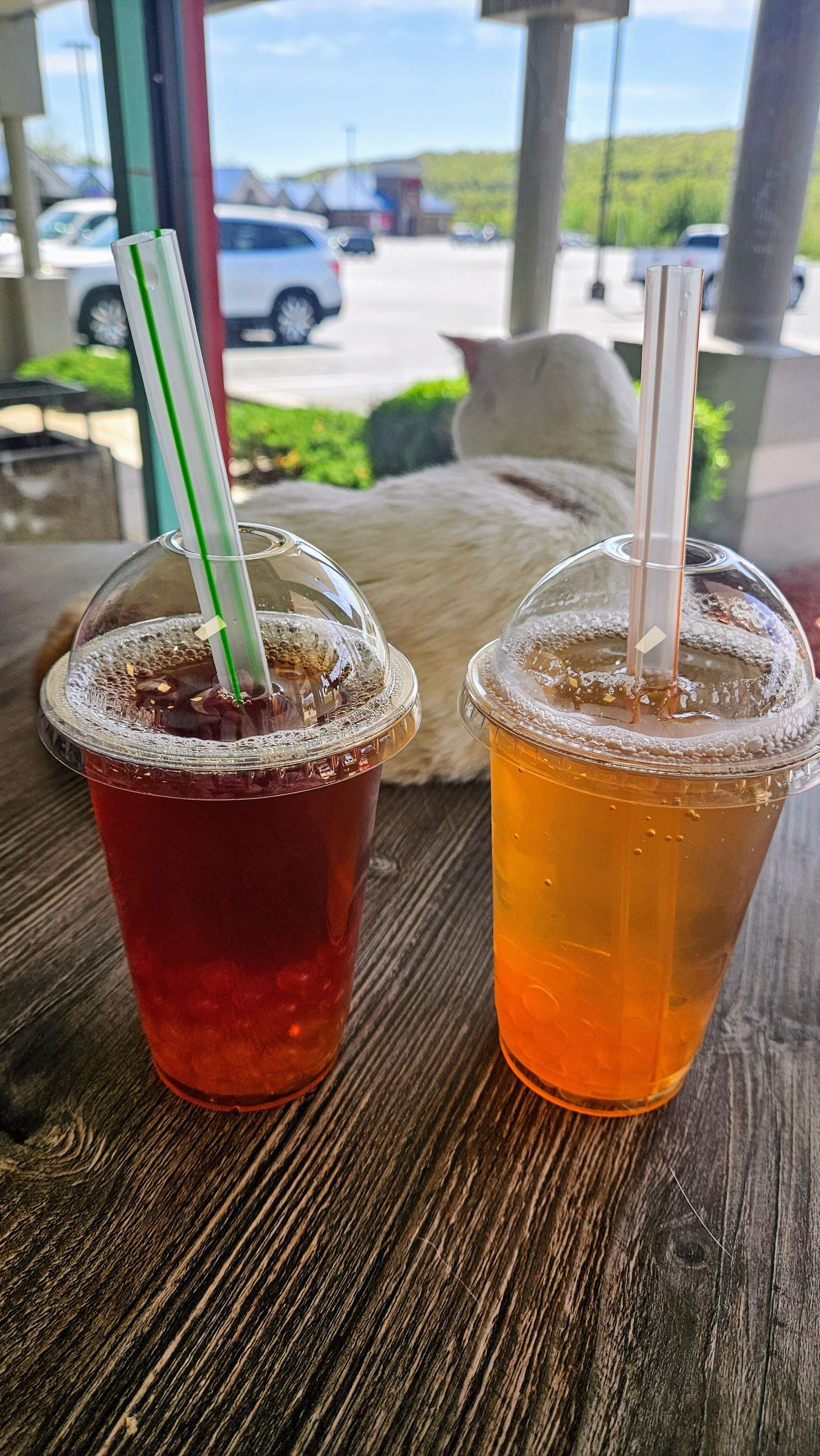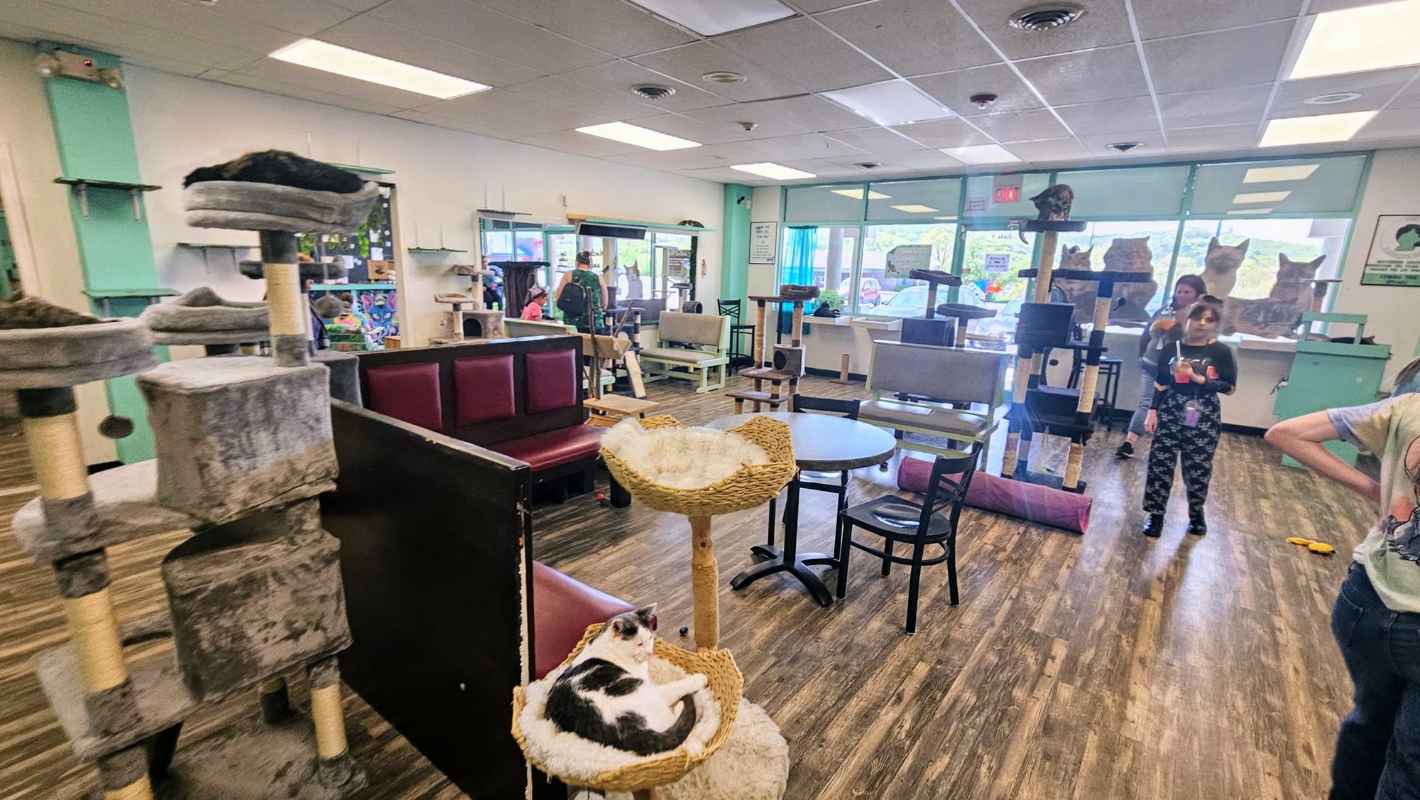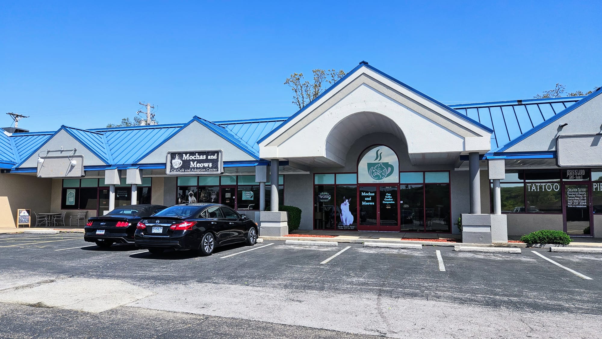 We needed a pick-me-up after exhausting ourselves trying to navigate Shepherd of the Hills, and so we headed over to a very special cafe for some afternoon tea. Mochas and Meows is Branson's cat cafe, where many of the Branson Humane Society felines live while they're awaiting adoption. You can go just for the beverages and even a sandwich (or purrnini, as they call them), but for an extra small fee you can go into the lounge and visit the cats. We ordered two boba teas and ventured into the lounge, where we spent a half-hour greeting our new furry friends. Most were taking their afternoon naps, and none of the others seemed to be very interested in us. Needless to say, we weren't "chosen," as we like to say. That's totally fine. Clearly, we aren't in the market to adopt another pet right now anyways. Besides, once upon a time, a cat did choose me, and she's the best kitty we could have ever asked for. Still, we appreciated seeing how loved these cats are, and the idea of a cat cafe is great for their socialization. We had never been to one, but we had seen one in Nashville that we wish we had visited. We were glad to finally see what they're all about.