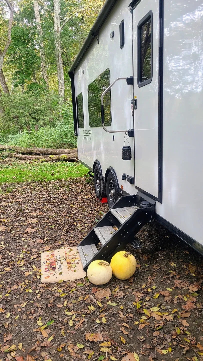 We conserved our tanks and water to last us the whole 10 days, and we made it with maybe a day to spare if we wanted to push it. 30 amp was also more than enough for our needs, since we’re out of air conditioning temperatures and our heat runs on propane. 30 amp was enough to run our electric heater too when we needed it. Between the heat and the new autumn RV decorations, the inside was as cozy as the outside.