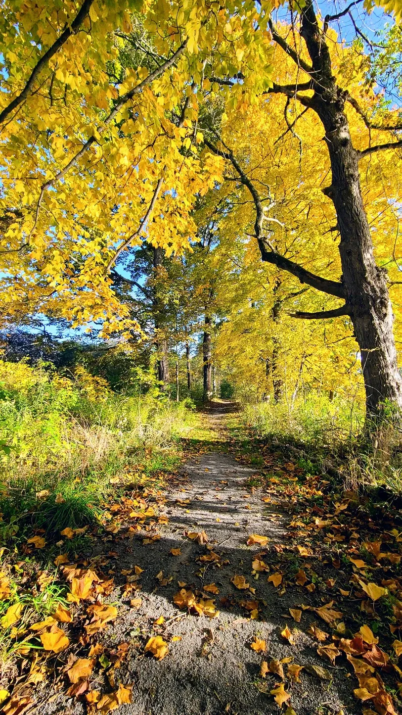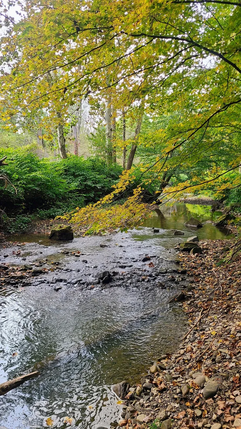 Thankfully our site was problem-free. The back of our site had a giant tree that had been cut down, and its massive trunk wasn’t the best view, but it just added to the woodsy vibe. We arrived on a Thursday and had no neighbors on either side. Over all, the campground was delightfully quiet, even when the weekends rolled around. Columbus Day Weekend got pretty busy, but even still, sounds didn’t carry very far. This was definitely a place where we could slow down, breathe, and take in the nature surrounding us. That’s really what fall camping is all about. The nights got cool and we turned on our heat for the first time this season. We had some nice big campfires in our exceptionally big firepit. We took walks in the crisp air with leaves falling around us. The campground has a trail that goes behind all the campsites and follows along the Allegheny River and Brokenstraw Creek. Seeing the leaves change color little by little every day was really fun.