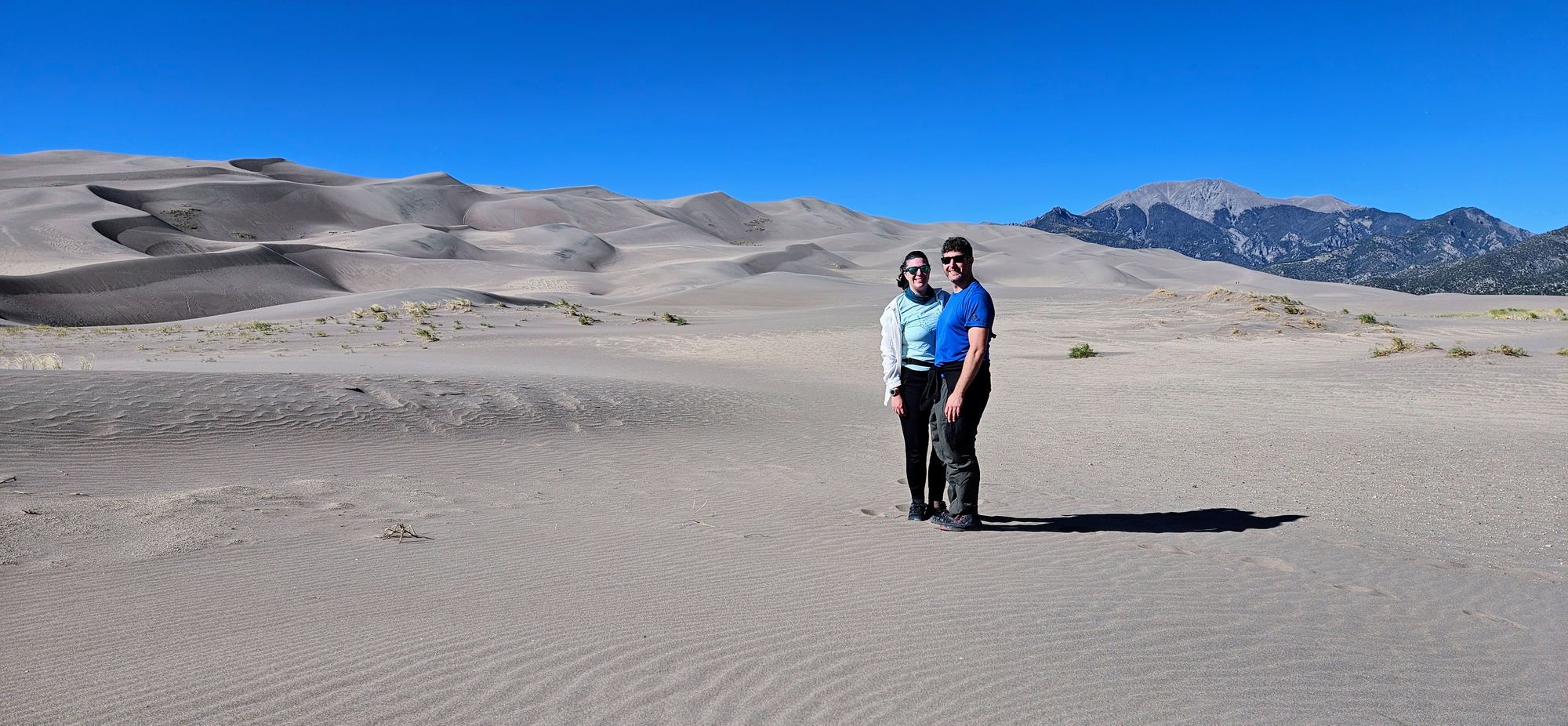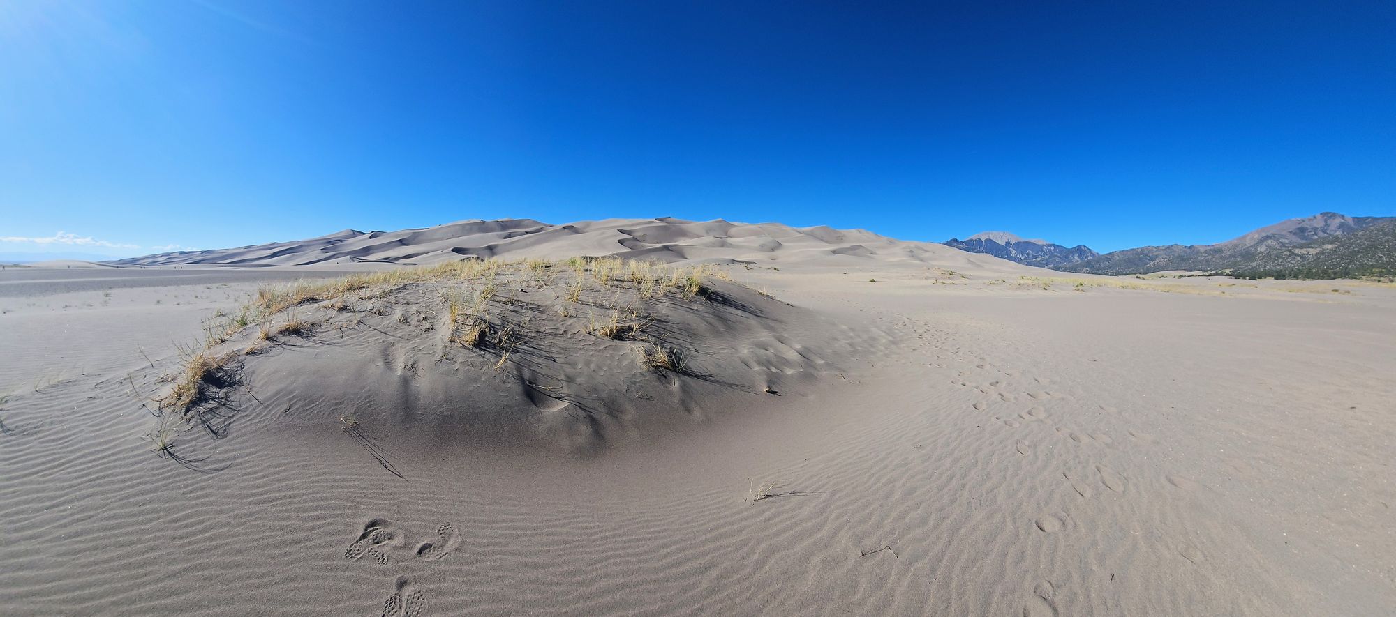 If you're curious what the dunes look like in the daylight, we returned to our photography spot the next day to take a look. Here you can see the dune hills and the adjacent mountains that served as the foreground for some of my photos.