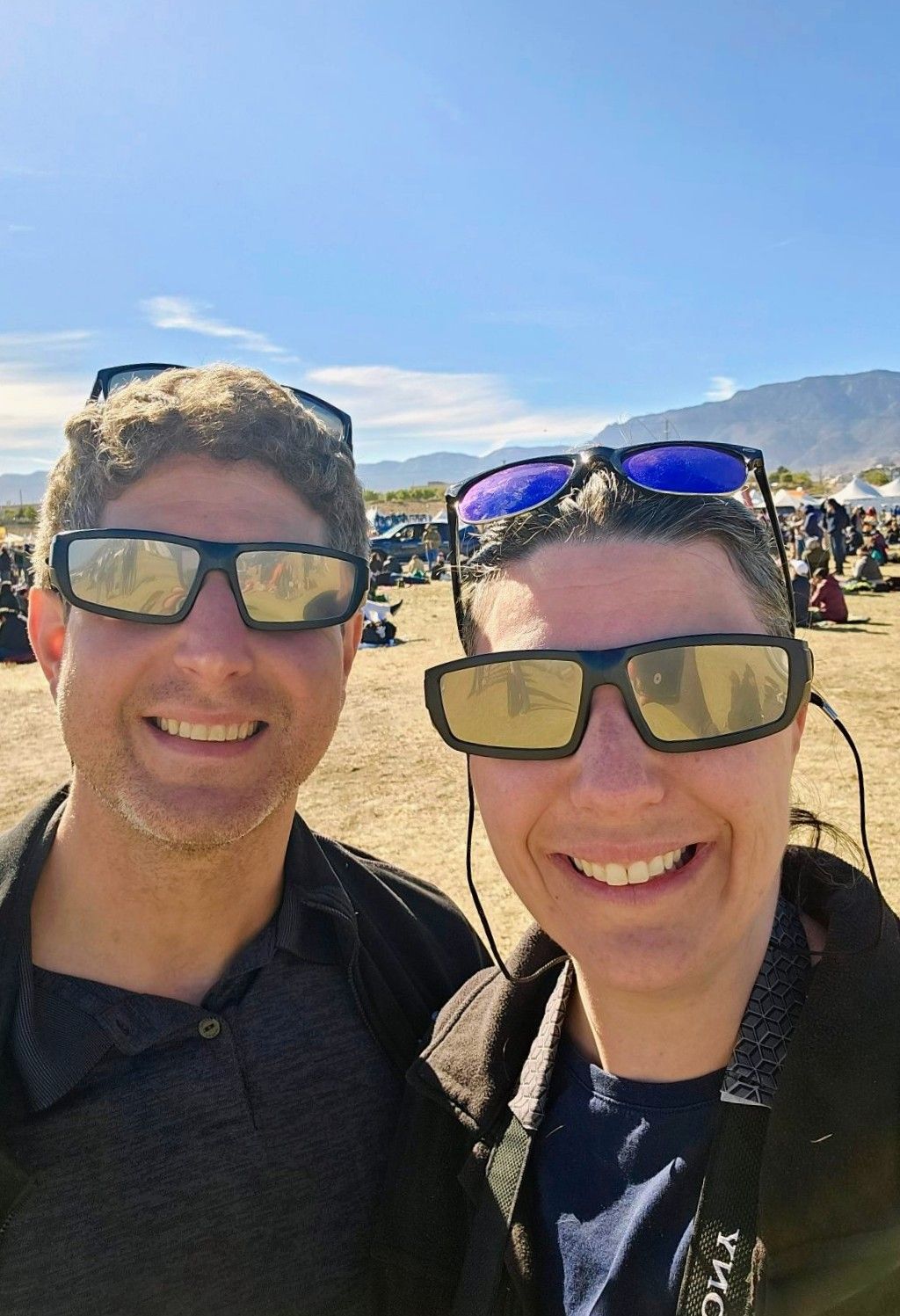 The celestial wonders weren't over yet, though. We were headed to the Albuquerque Balloon Fiesta, which is magical in its own right, but something very special was happening on the second weekend of the Fiesta. We were in the direct path of the Annular Solar Eclipse. These eclipses occur when the moon passes in front of the sun at the furthest point from earth. The moon appears smaller than the sun, so does not completely cover it as it would during a total solar eclipse. Instead, it covers just enough to leave a ring of fire, or annulus. The Balloon Fiesta held its own special eclipse event, and we were ready for it. We purchased eclipse glasses, and I also bought a couple of lens filters for my camera. The biggest danger to capturing the eclipse is the brightness of the sun. Just as you don't want to look at a solar eclipse directly with your eyes, you also need to be careful pointing cameras toward the sun, especially when part of it is blocked by the moon. With a mirrorless camera, the risk is lower because it does not have an optical viewfinder. If you use a DSLR and look through a viewfinder, you could burn your retina just like you might if you were looking directly at the sun. Beyond the human eye is the camera mechanism, which can also get burned if pointed toward the sun for too long. Again, the risk is lower with a mirrorless because of its electronic viewfinder. There are no mirrors to reflect the damaging rays.