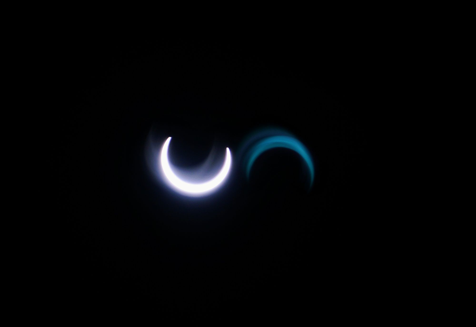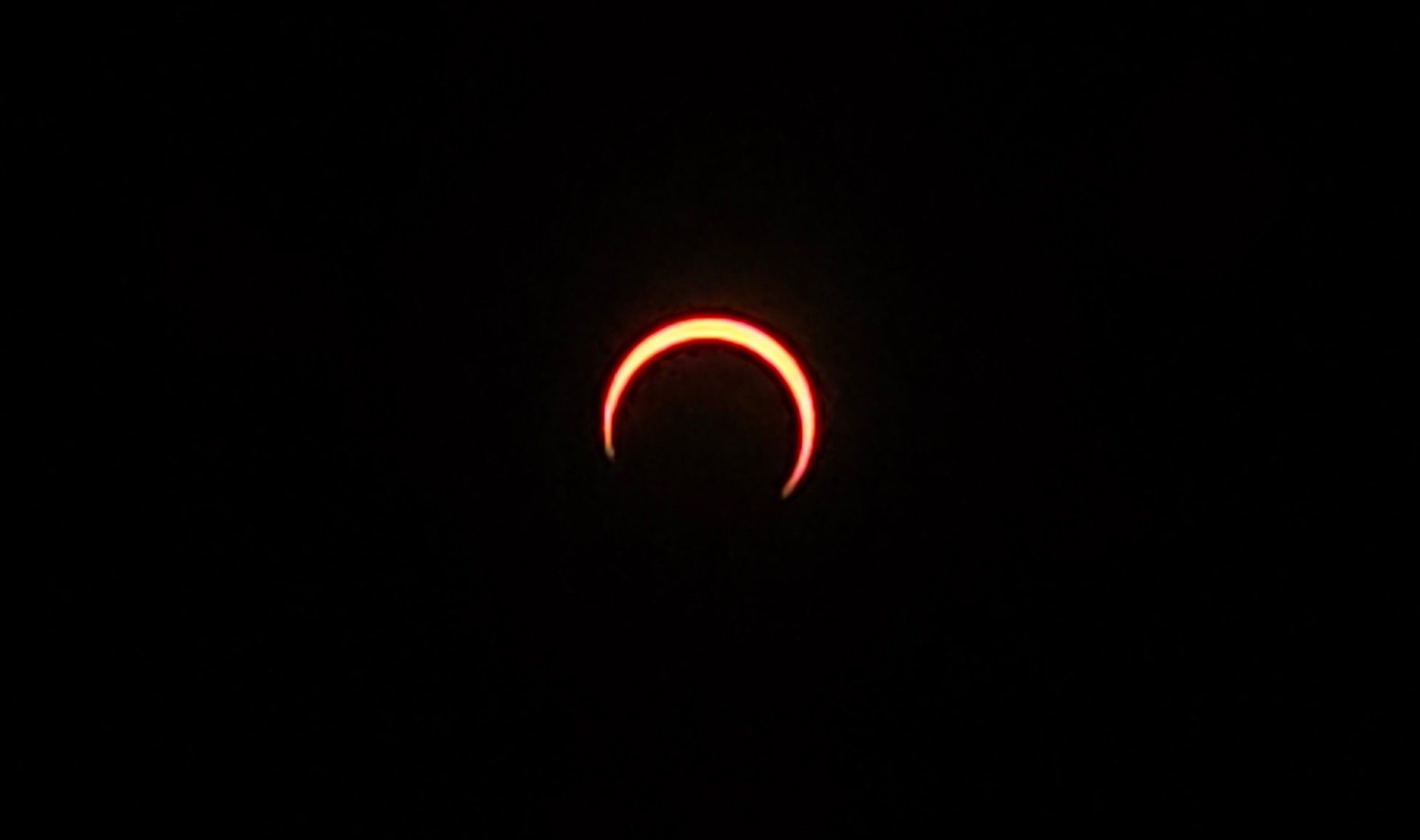The shining star (pun intended) of the equipment actually turned out to be my cell phone! The filter wrap worked great, and using my telephoto feature, I was able to get a 12x zoom. Not super close, but better than my mirrorless lens. The cell phone + filter let in just enough light to capture the warm glow of the crescent, and at peak, the ring of fire.