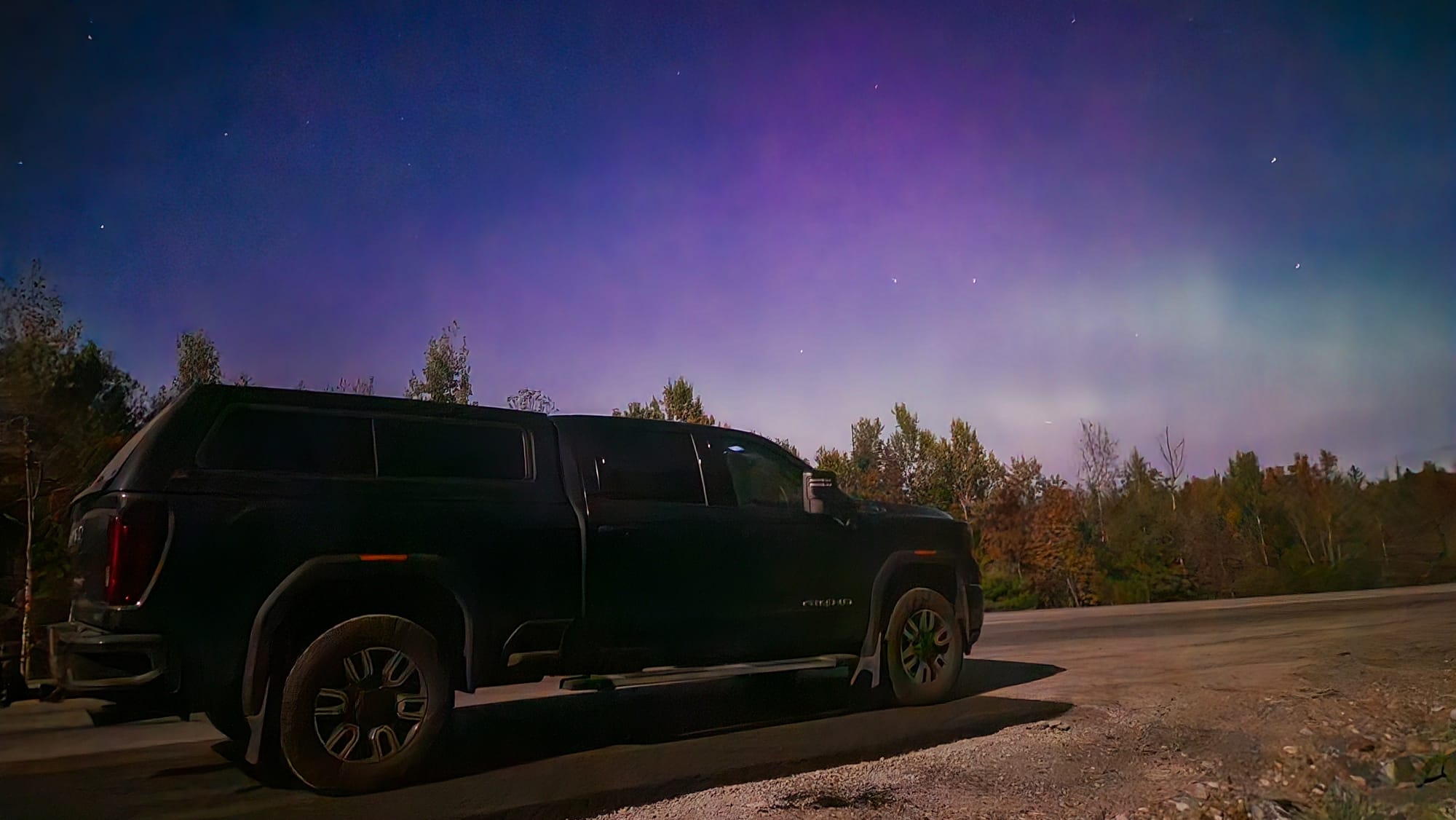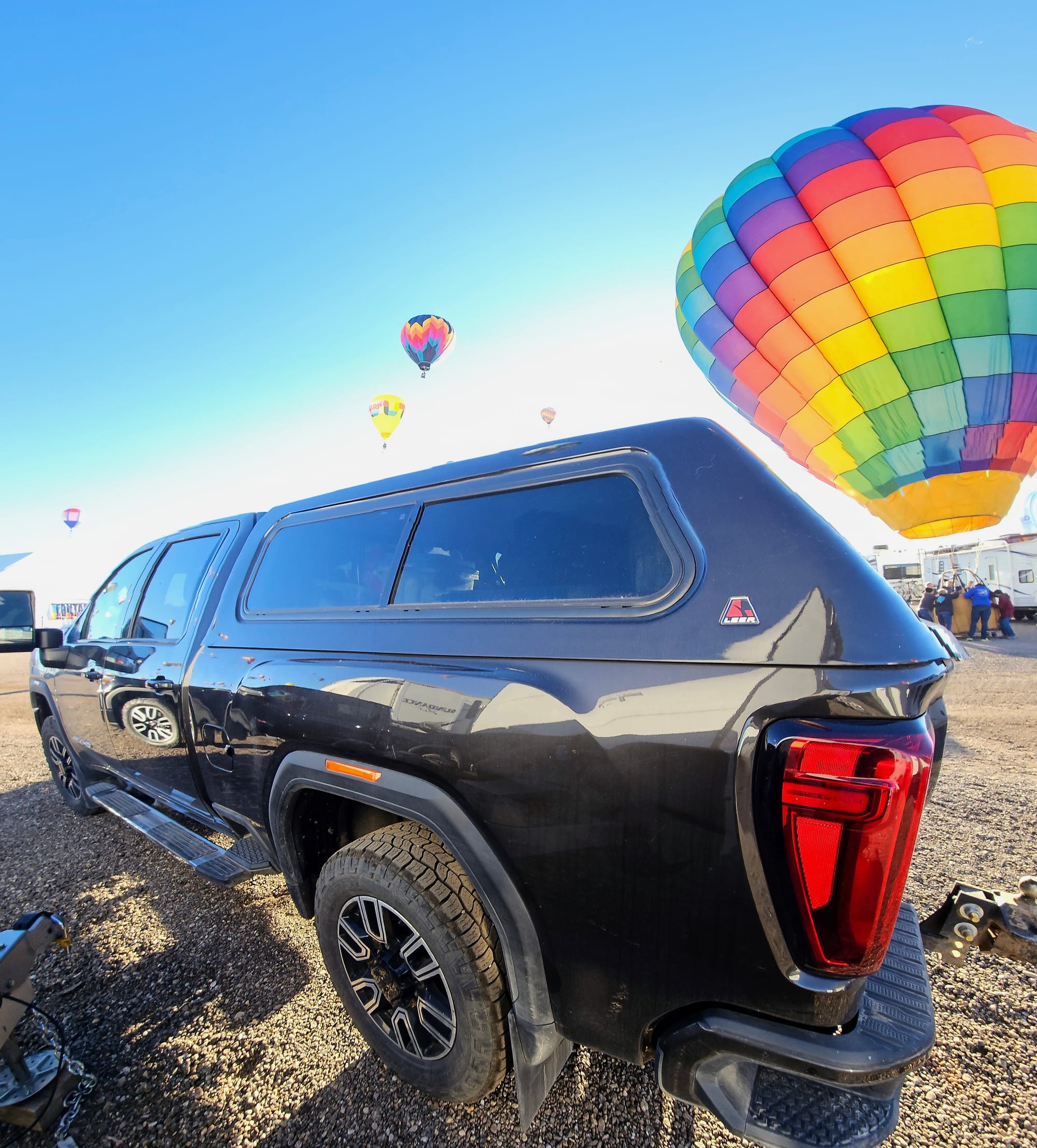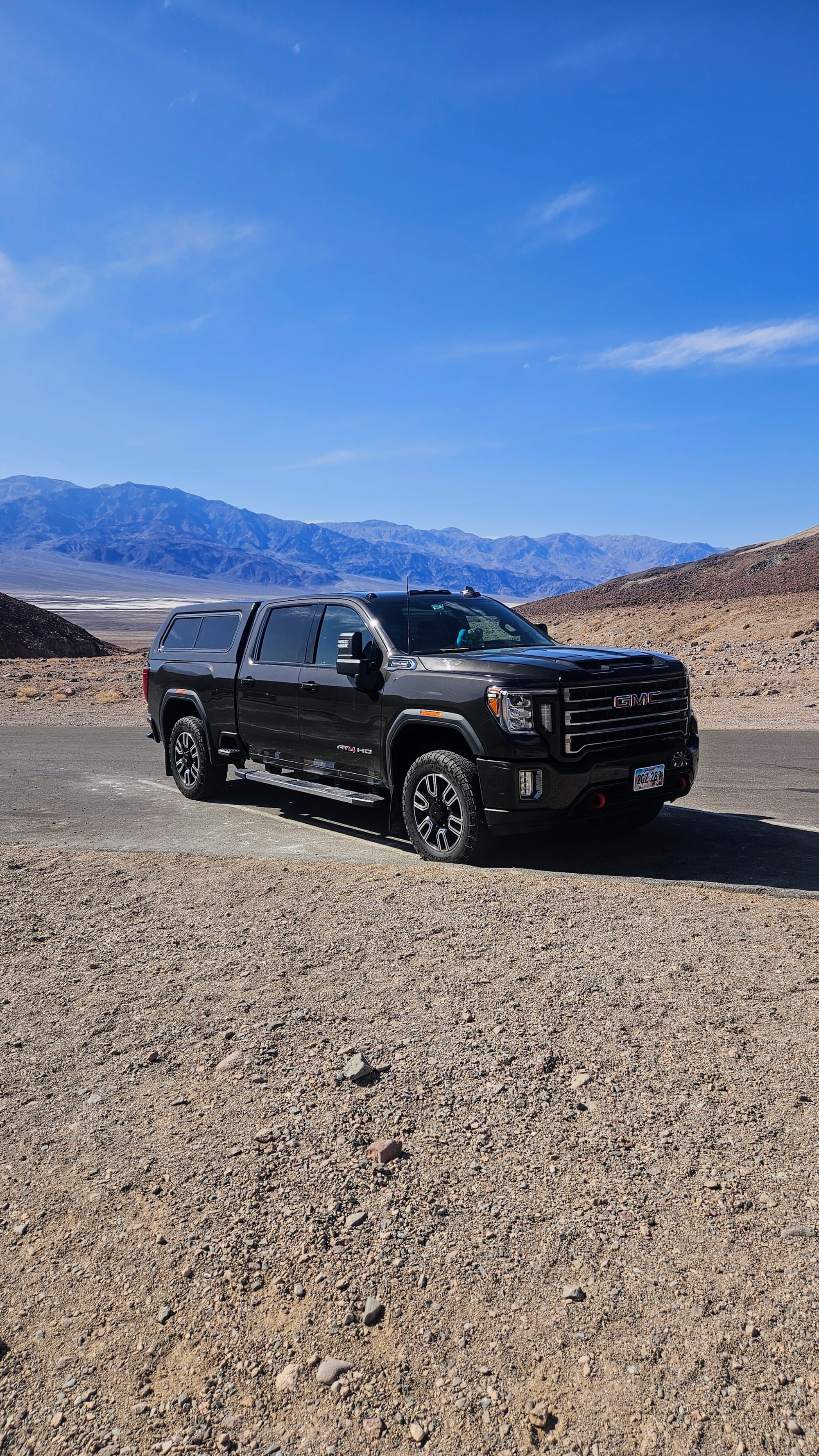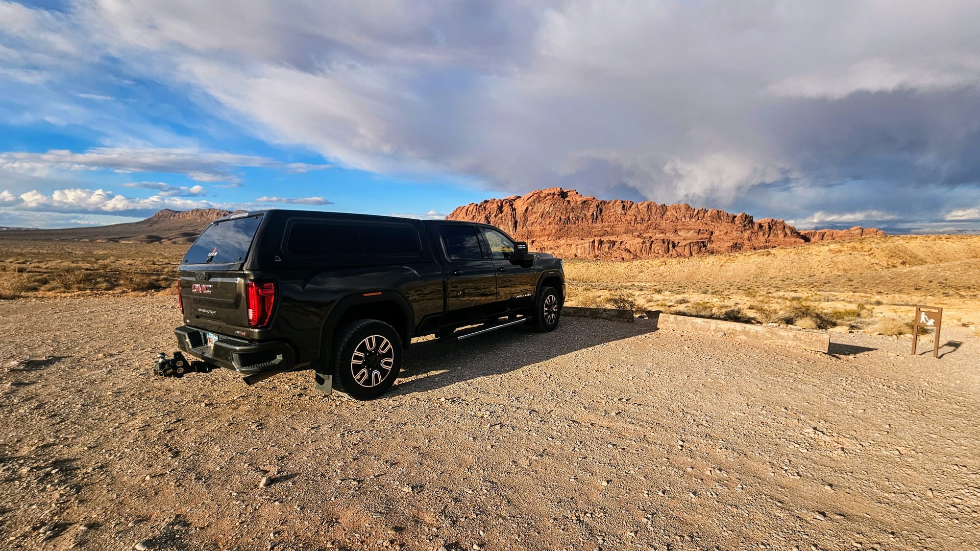 Clyde is a 2020 GMC Sierra 2500. We got him in February 2021, almost exactly a year to the day we launched on the road. We faced a lot of obstacles when purchasing our first truck. We had always been fans of small vehicles and never liked the ruggedness of trucks. At first, we resisted getting one at all. We considered trying to tow the RV with a large SUV, but once we settled on our 28ft ATC toyhauler, we knew we needed to go heavier duty, especially if we wanted to travel all over the country. At the end of the day, learning to maneuver a large truck would be nothing compared to maneuvering the entire RV! All that said, we still needed to find a truck that wouldn't feel too bumpy barreling down the road. We test drove tons of makes and models, and GMCs felt the most "un-truck" to us. We liked the comfort, the interior setup, and its specs for towing a rig our size.