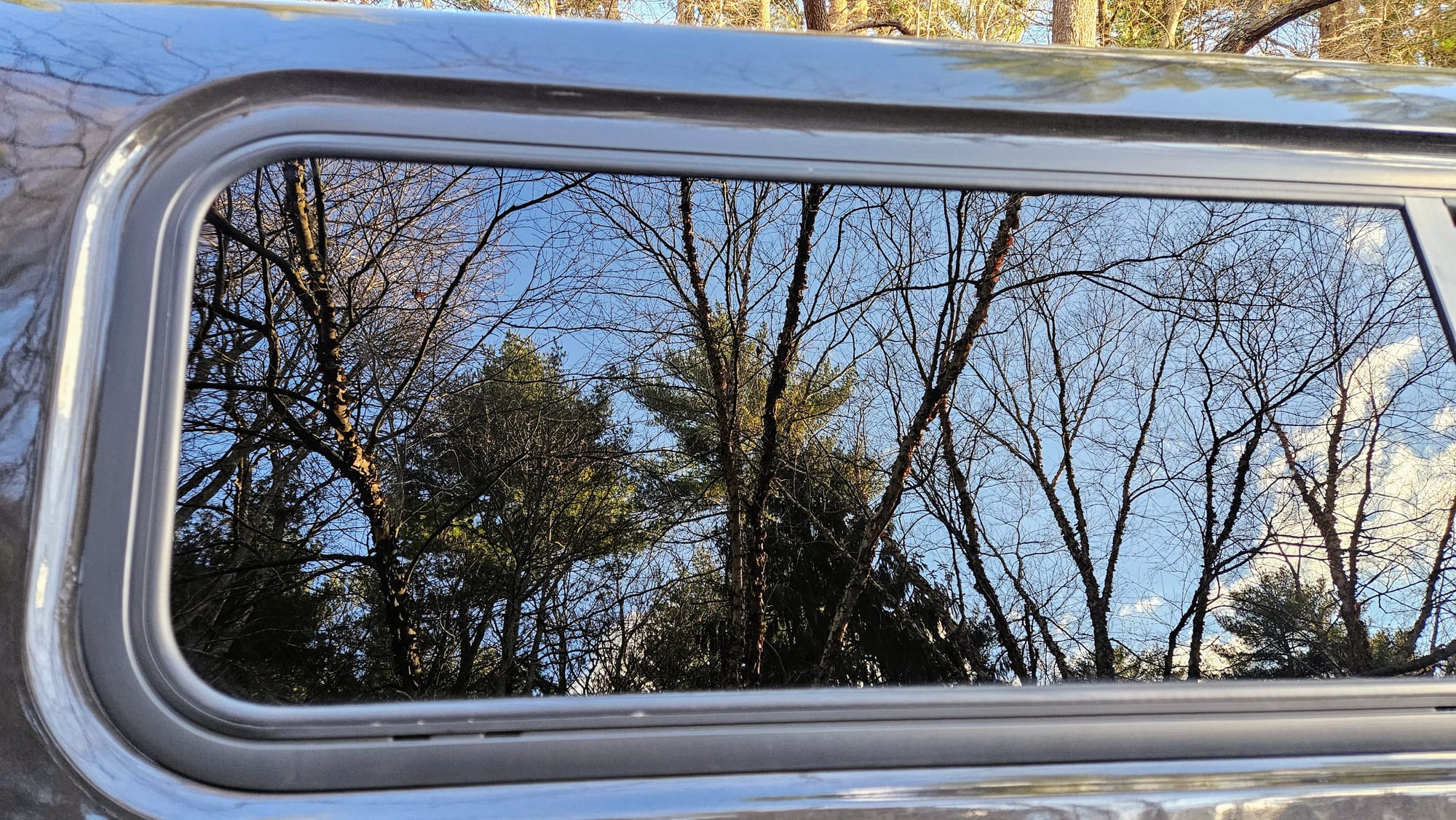 After Season 2 on the road, we decided to tint all our back windows. We did a lighter tint for the cab, so Tanner wouldn't have the sun beating in on him whenever we traveled east. We got a darker tint on the cap so we could block people's view of whatever we were carrying.