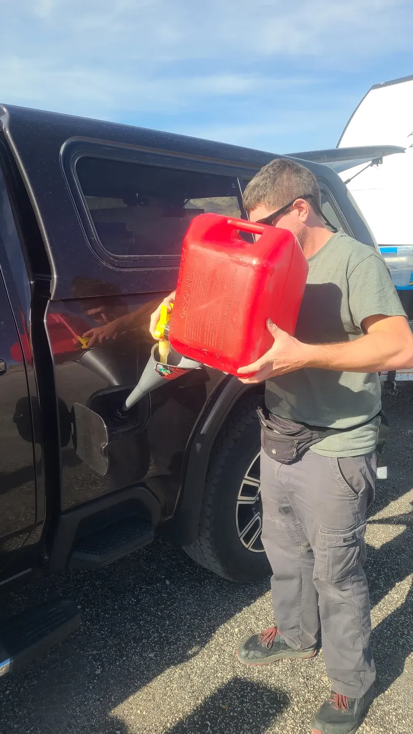 Ironically, we didn't run out of gas in the 85 octane boonies, but we did run out of gas in the 93 octane boonies! On our way to Joshua Tree National Park in CA, we made the grave mistake of passing by a gas station that looked too crowded. We underestimated just how desolate parts of CA could be, and we ended up running out of gas not once, but TWICE before making it to the National Park. Thank goodness we had reserves, but Anthony filling up on the side of the freeway with semitrucks speeding by is NOT one of our fondest Clyde memories.