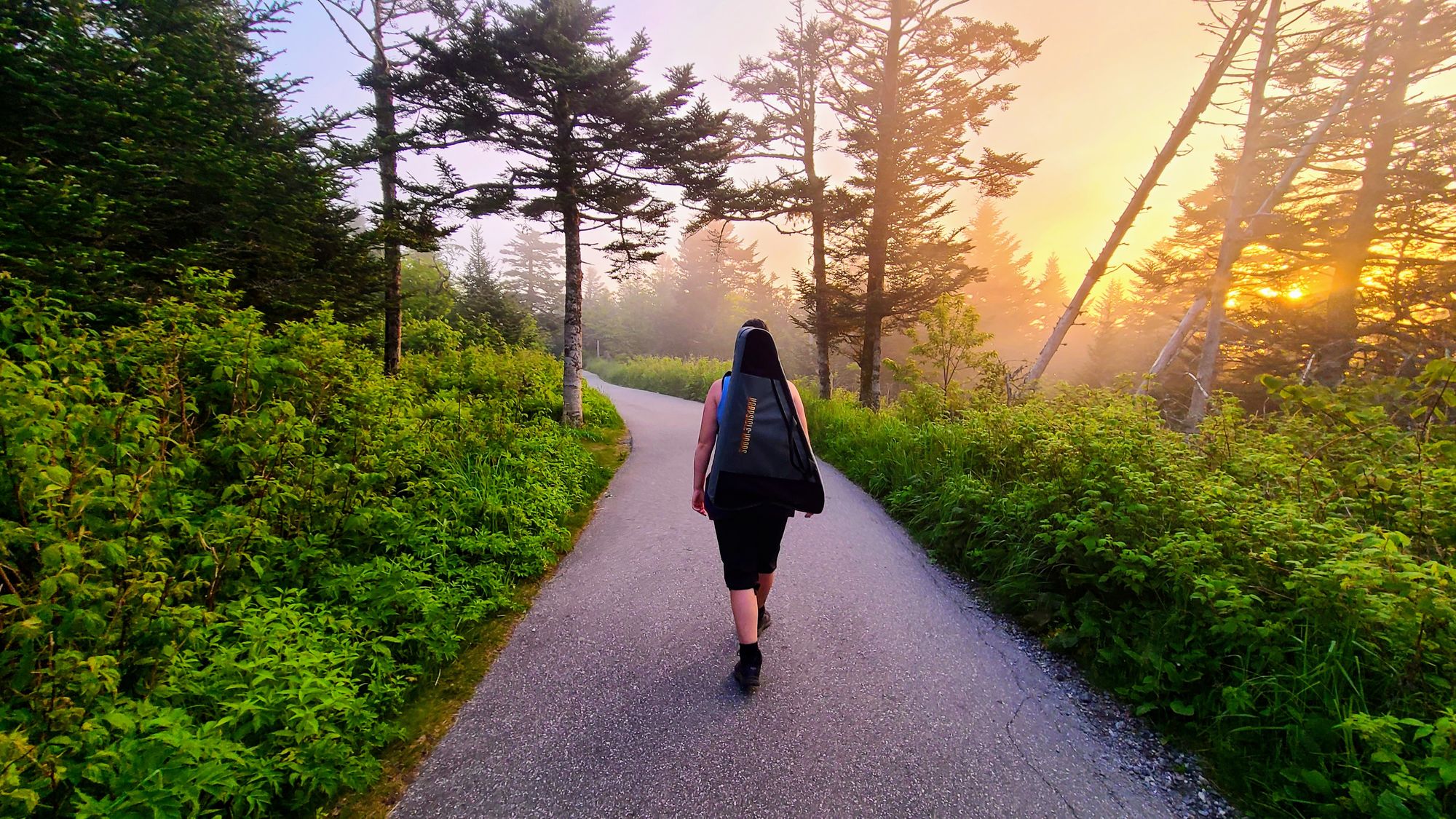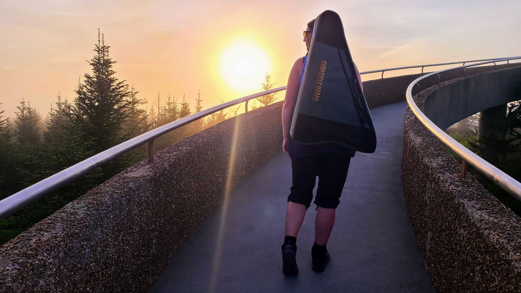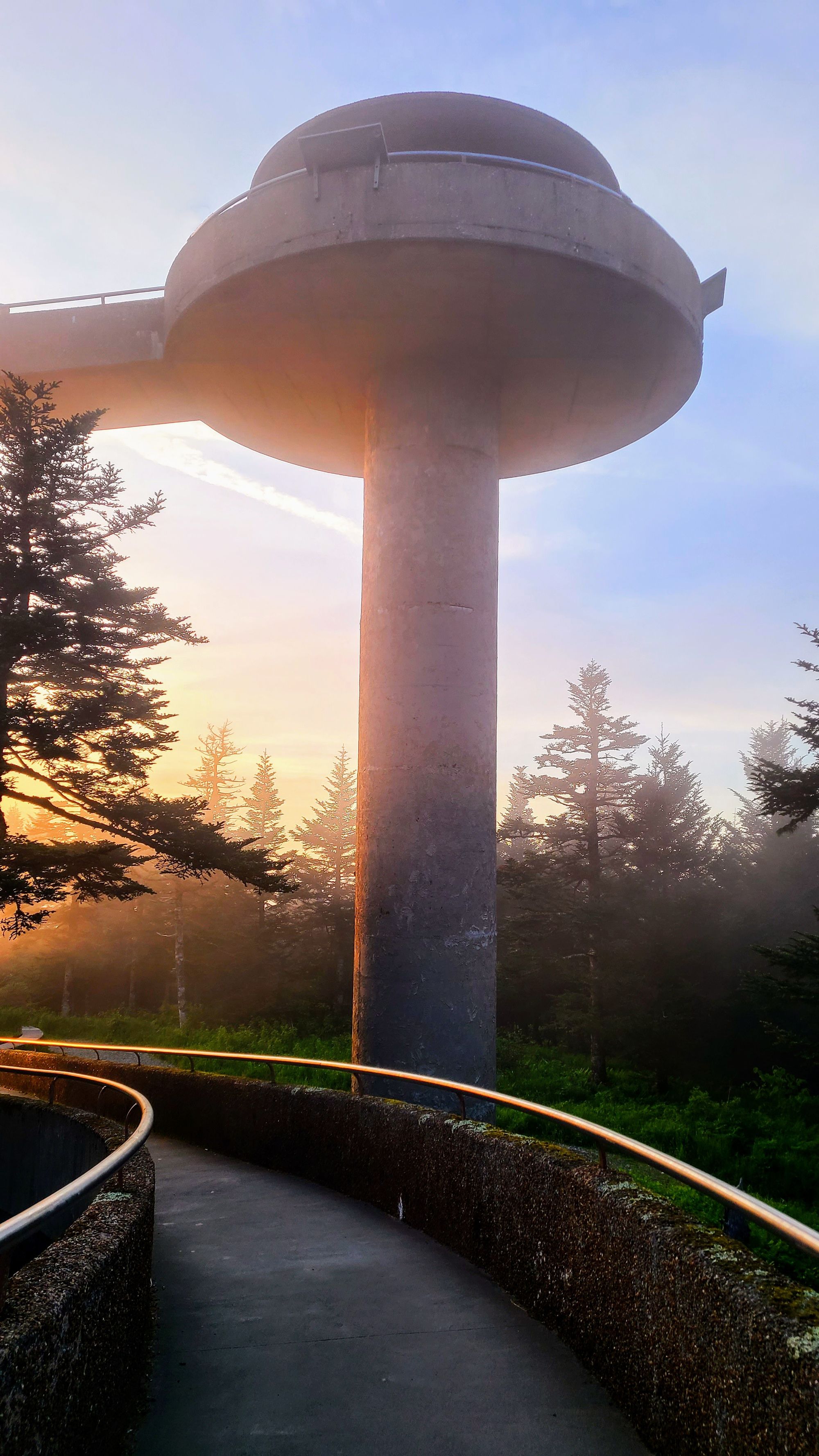We went for sunset because it fit into our schedule, and let's face it, sunset over mountains is gorgeous. If I wasn't aiding my calf injury, we would have opted to also do Andrews Bald trail, which begins at the Clingmans Dome parking lot. This trail leads down to an opening with beautiful views, and it was recommended to us by a worker at the local REI. But, since we were taking it easy, I instead added challenge by lugging my harp up the steep hill to the Clingmans Dome lookout tower. Those photos are definitely a fine addition to the Hiking Harpist gallery!