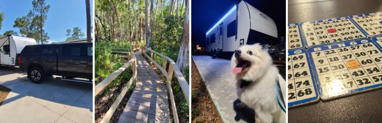 As we traveled southward and learned our comfort levels more, as well as our tank capacities and limits, we began booking longer stays at water and electric-only sites. The snowbirds slowly started leaving Florida as April progressed, and so we squeezed in a longer stay of 9 nights later in the month. This left us with a gap between our Koreshan stays, which we knew we wanted to fill with a full-hookup site. Cue the RV resort!