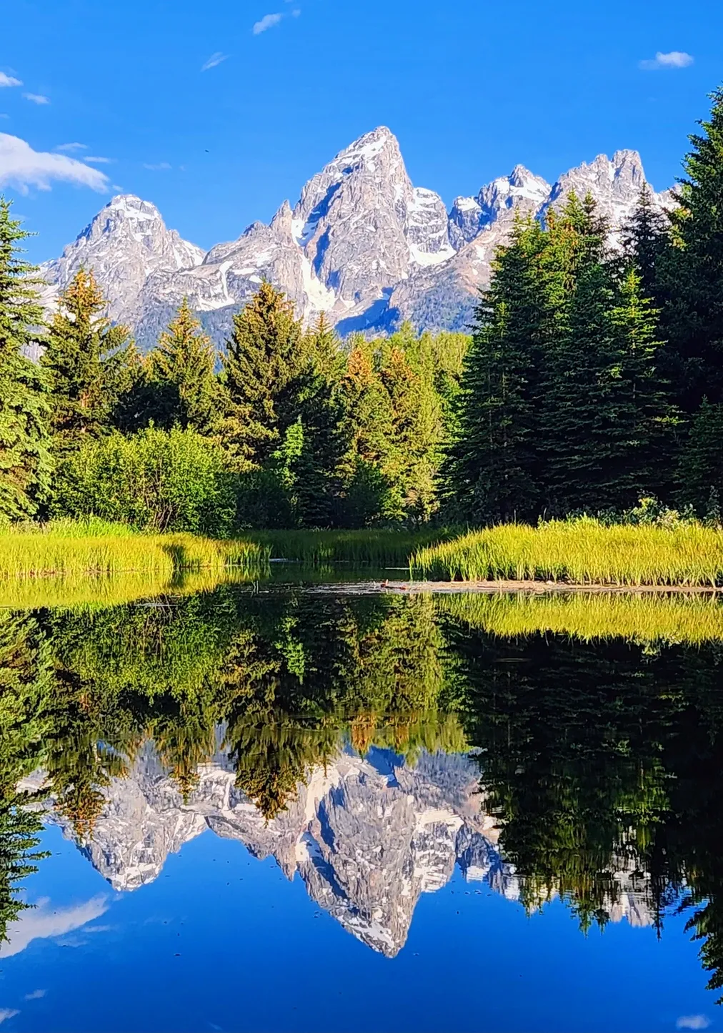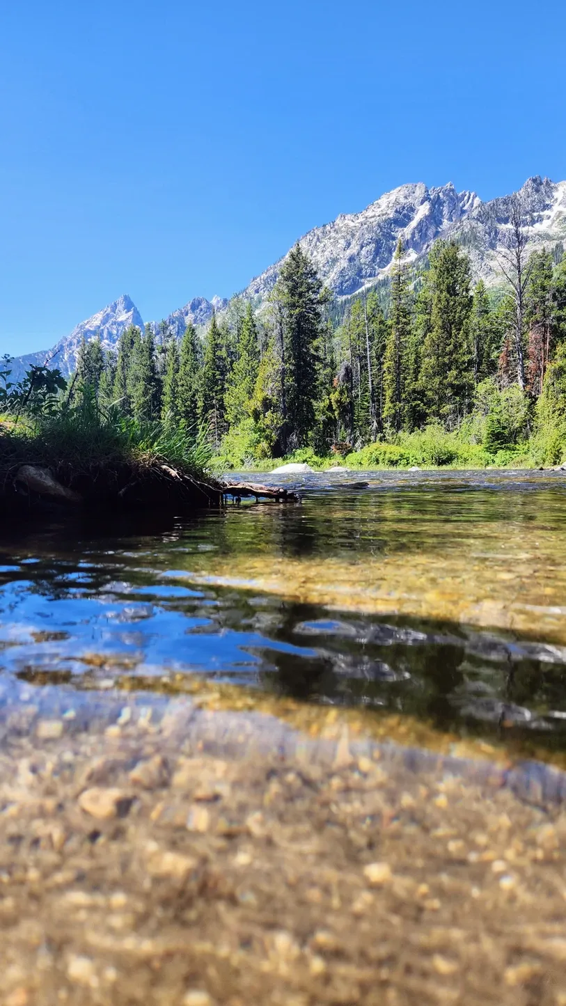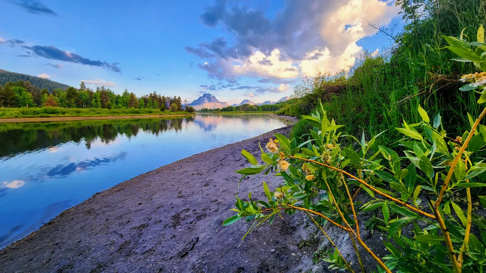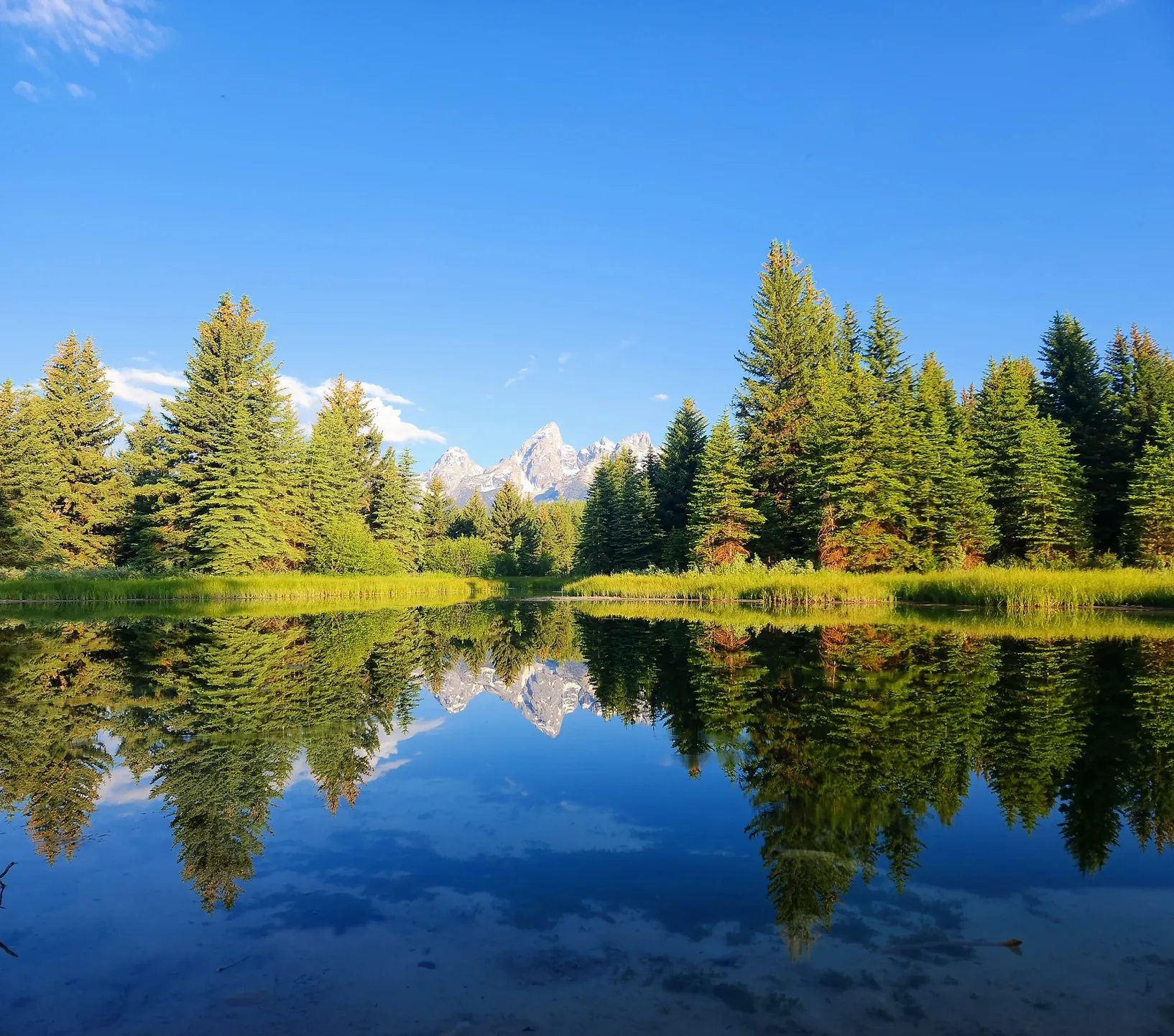 The Snake River is very calm in this area, and if still enough, you'll be dazzled by some of the most symmetric water reflections of the Tetons.