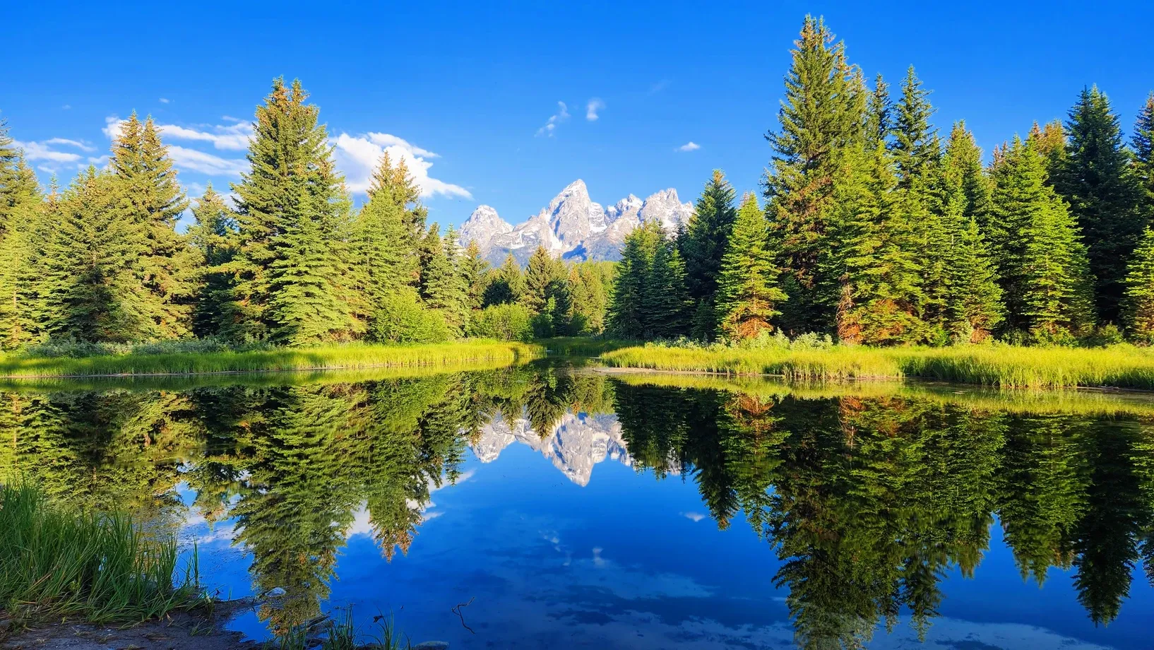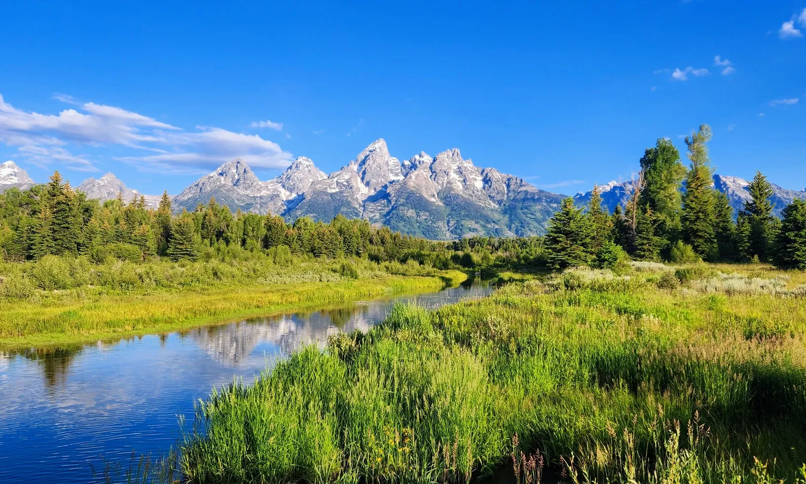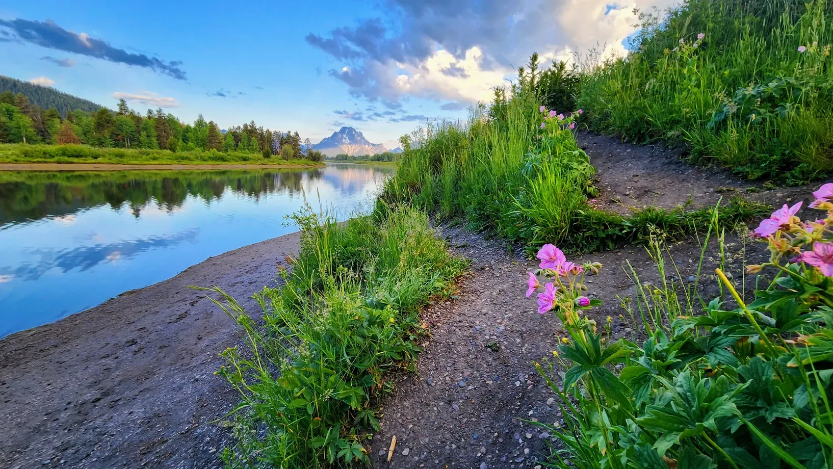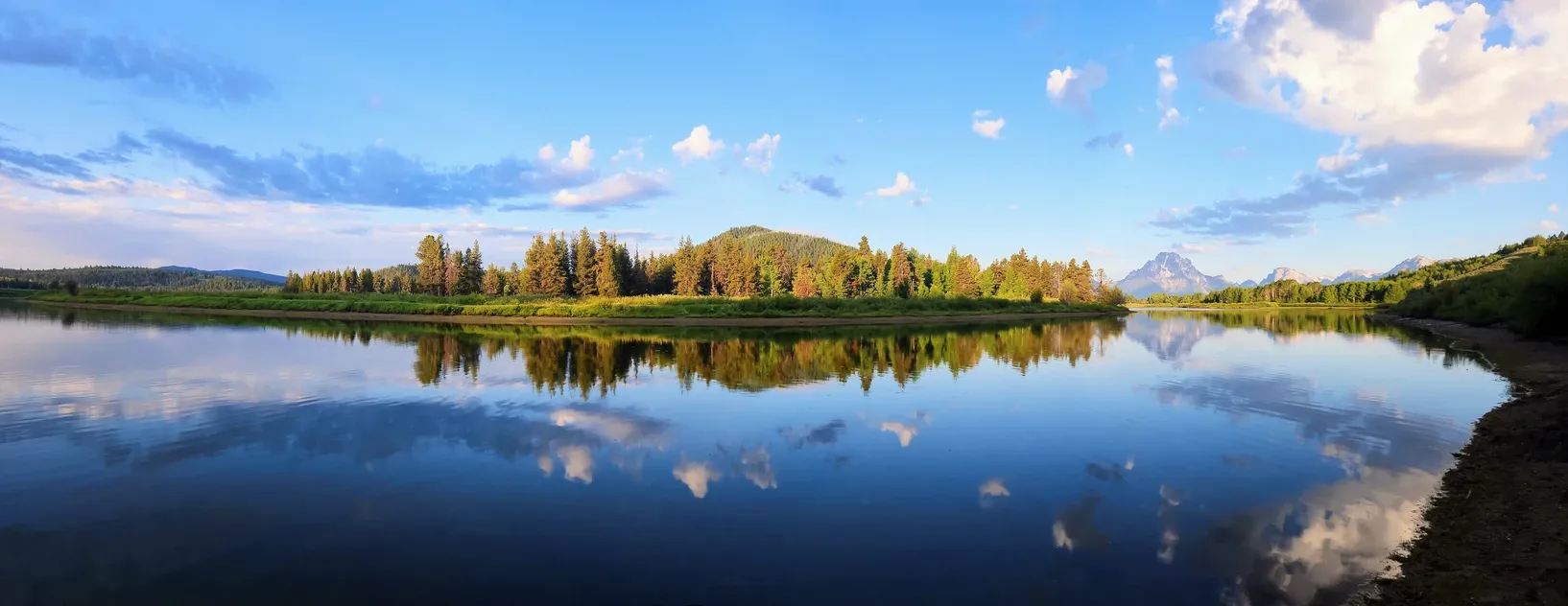 The Snake River is very calm in this area, and if still enough, you'll be dazzled by some of the most symmetric water reflections of the Tetons.