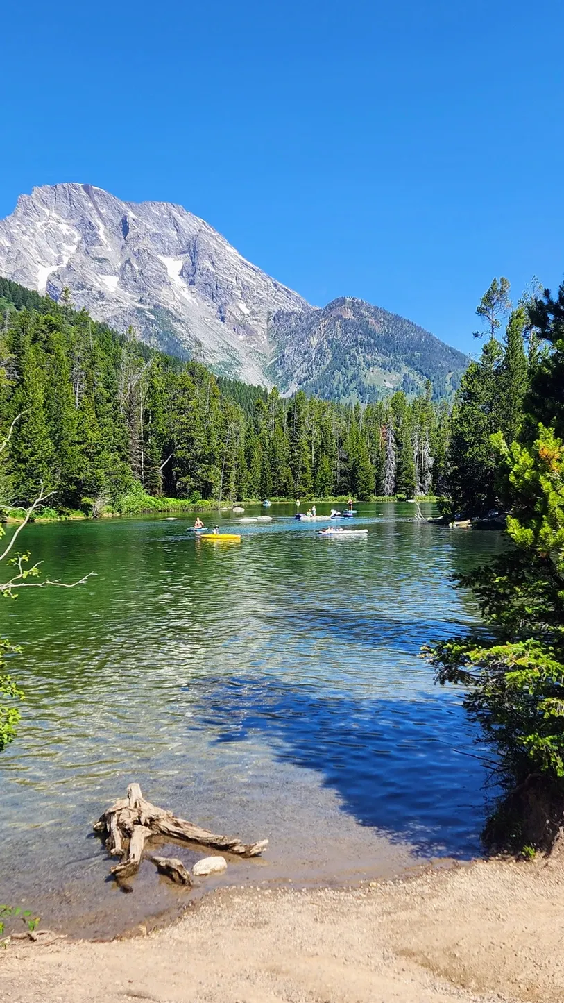 A short retracing of our steps off Inspiration Point led us to another offshoot, where we got to see Hidden Falls. Then we circled back the way we came, along Jenny Lake's western shore once more, back to the String Lake parking area. Instead of calling it a day, we continued towards String Lake, which we didn't know much about, but evidently there are lots of spots for boat launching, swimming, and picnicking. If you arrive early enough, you can snatch a day-use spot with your own little beach, complete with a bear box to keep your food safe. It was very cool and all I could think about was how amazing it would be to bring my floaty there! Something to keep in mind for next time.
