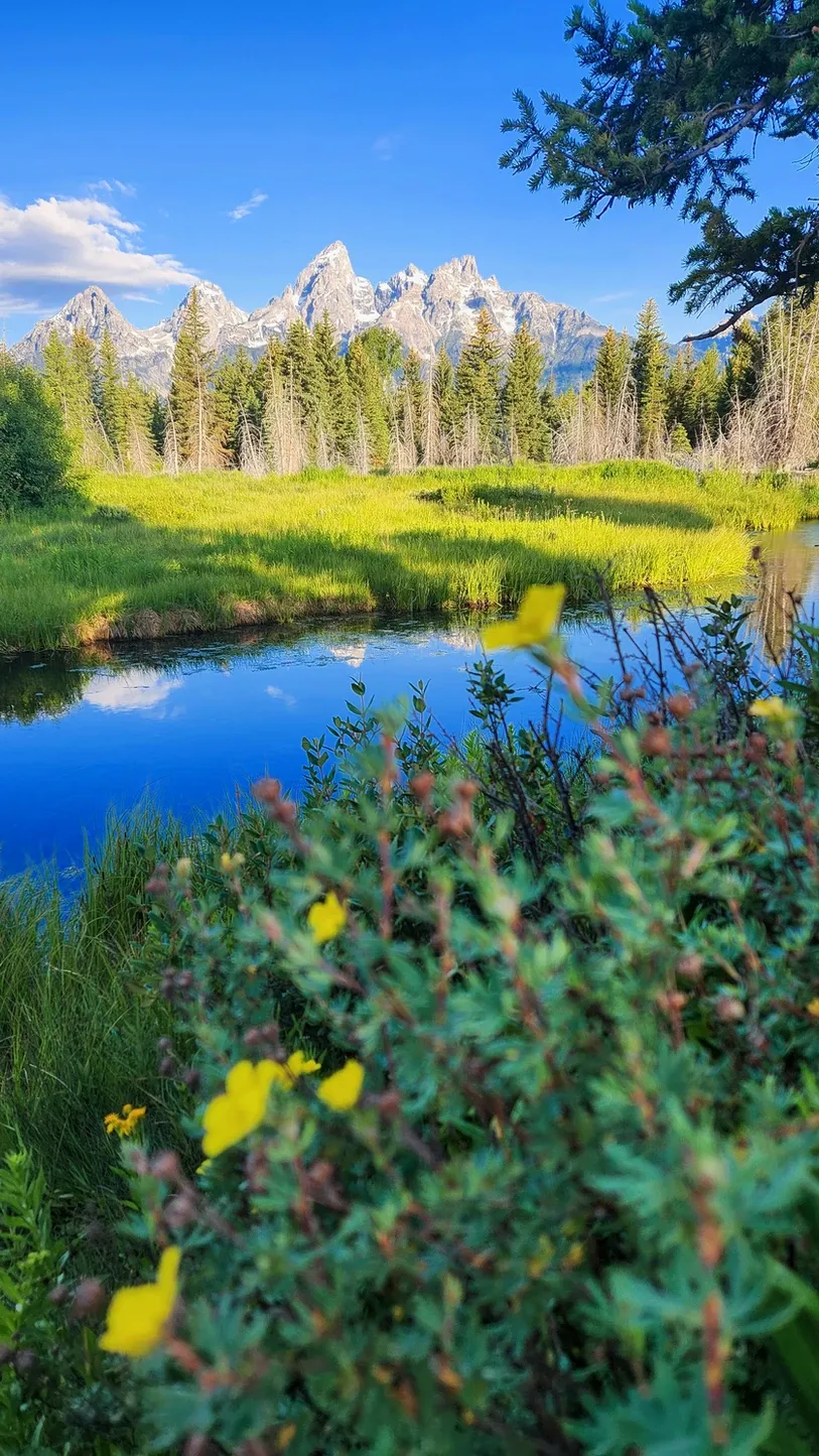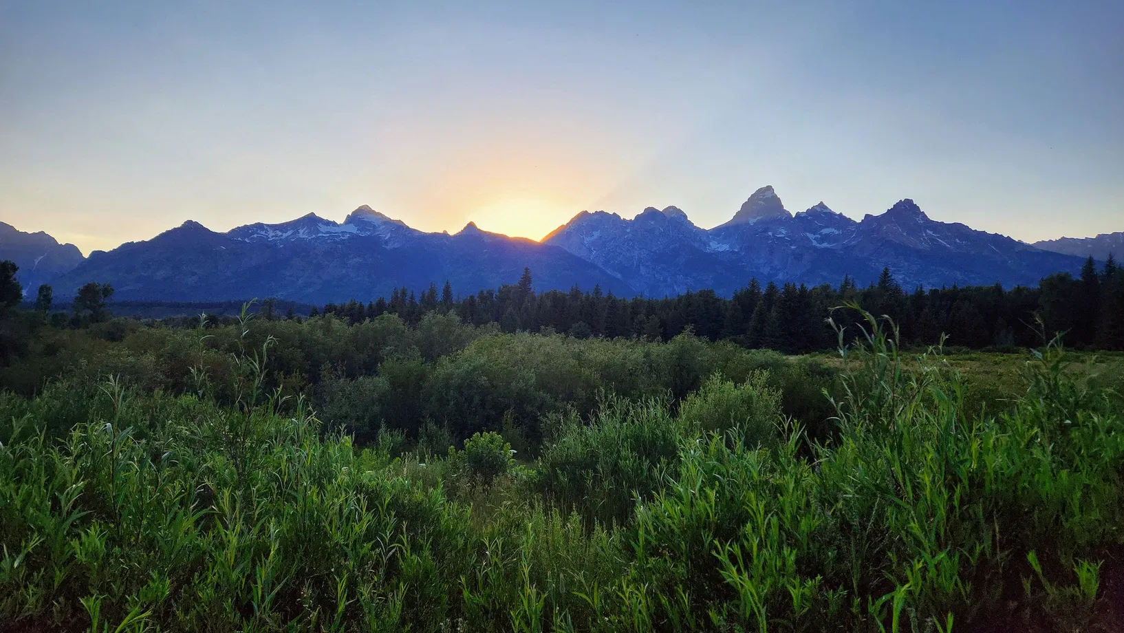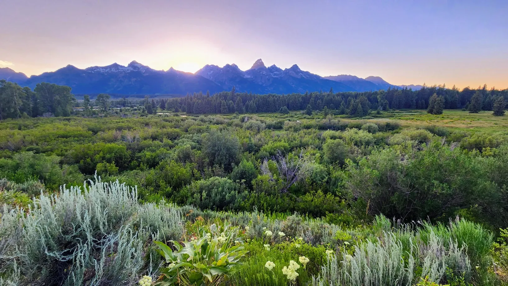The Gros Ventre River runs on the eastern side of the national park and eventually into the Snake River. It's a slightly less crowded area, but Gros Ventre Road has a few pullouts where you get beautiful views of the river. We recommend going at sunset so you can see the sun's glow on the mountains. The setting sun also made the water look a beautiful blue color. So even if you don't spot a moose, you get the scenery, and that was pretty much the theme for our visit to the Tetons. There is beauty everywhere you look, and the wildlife and history are just a bonus.