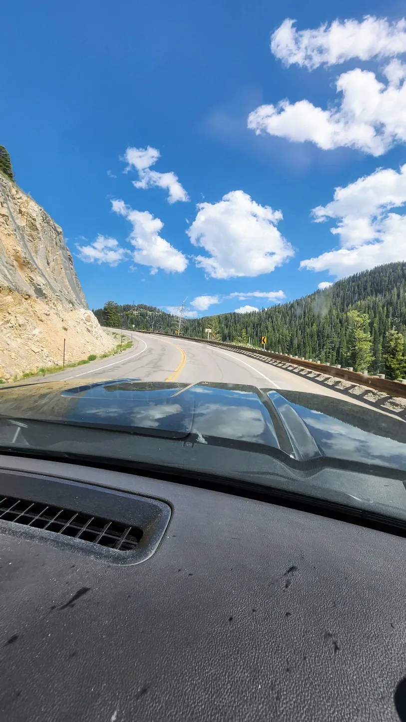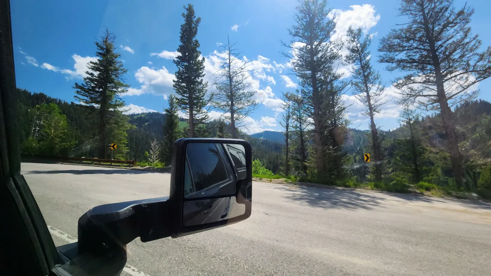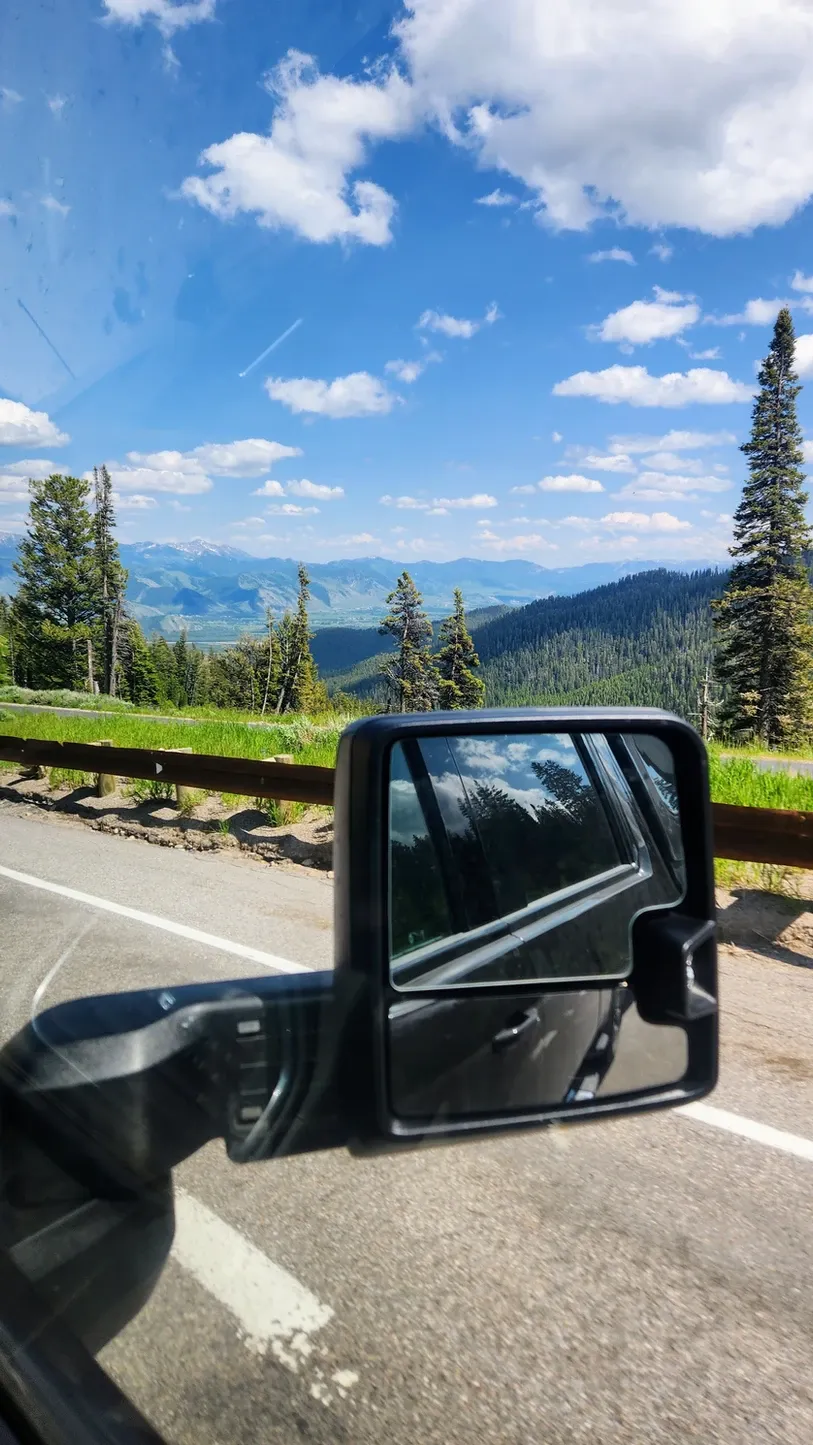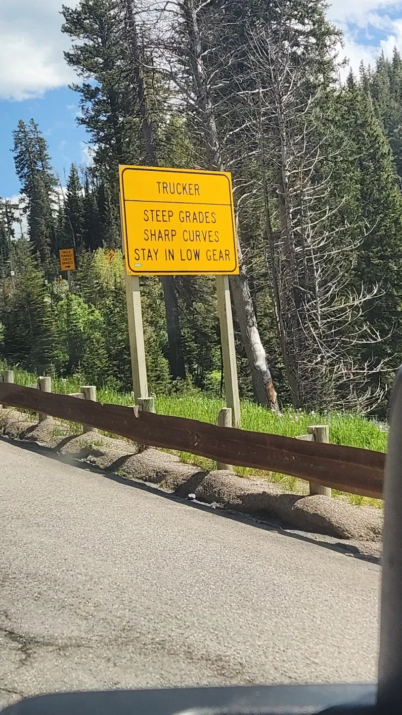 But first, we had to get over there. While we were familiar with Teton Pass - many RVers describe it as their worst towing nightmare - for some reason it didn't dawn on us that we'd be towing over the pass. We set out to cross the border from Idaho to Wyoming, enjoyed a podcast along the way, viewed the distant Tetons over vast green farmland, when suddenly, warning signs started popping up: "Teton pass is open only to vehicles under 60,000GVW." "Dangerous road. Closed to trucks and trailers Nov. 15-Apr. 1." I checked the map and realized that as soon as we crossed into Wyoming, we had a daunting experience awaiting us. 10% grades, curves with steep drop-offs, and risks of rockfall. Going around would have added hours to our day, and having towed tens of thousands of miles, we knew we could handle it, as long as our emotions could. And so, up up up we went.