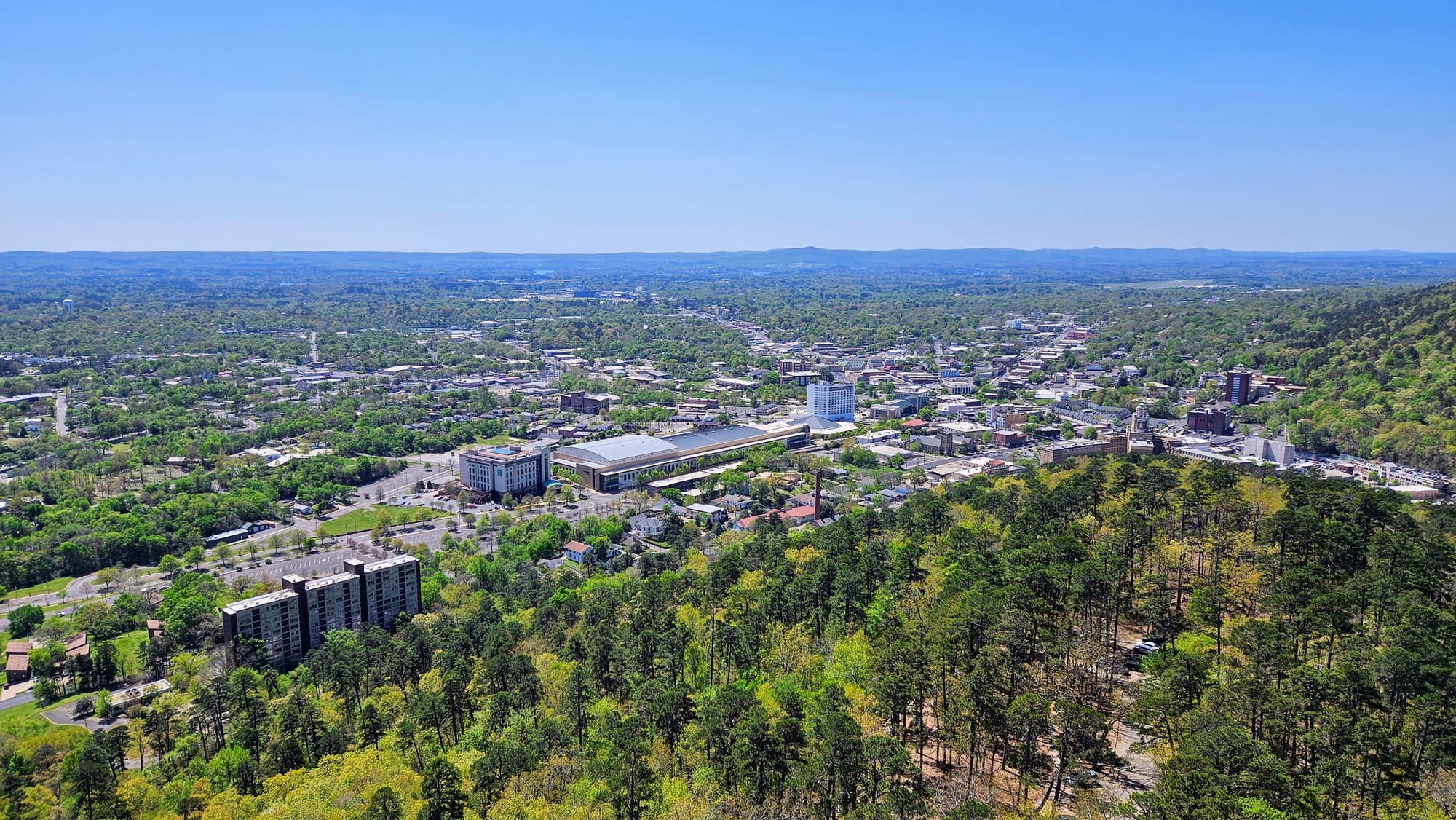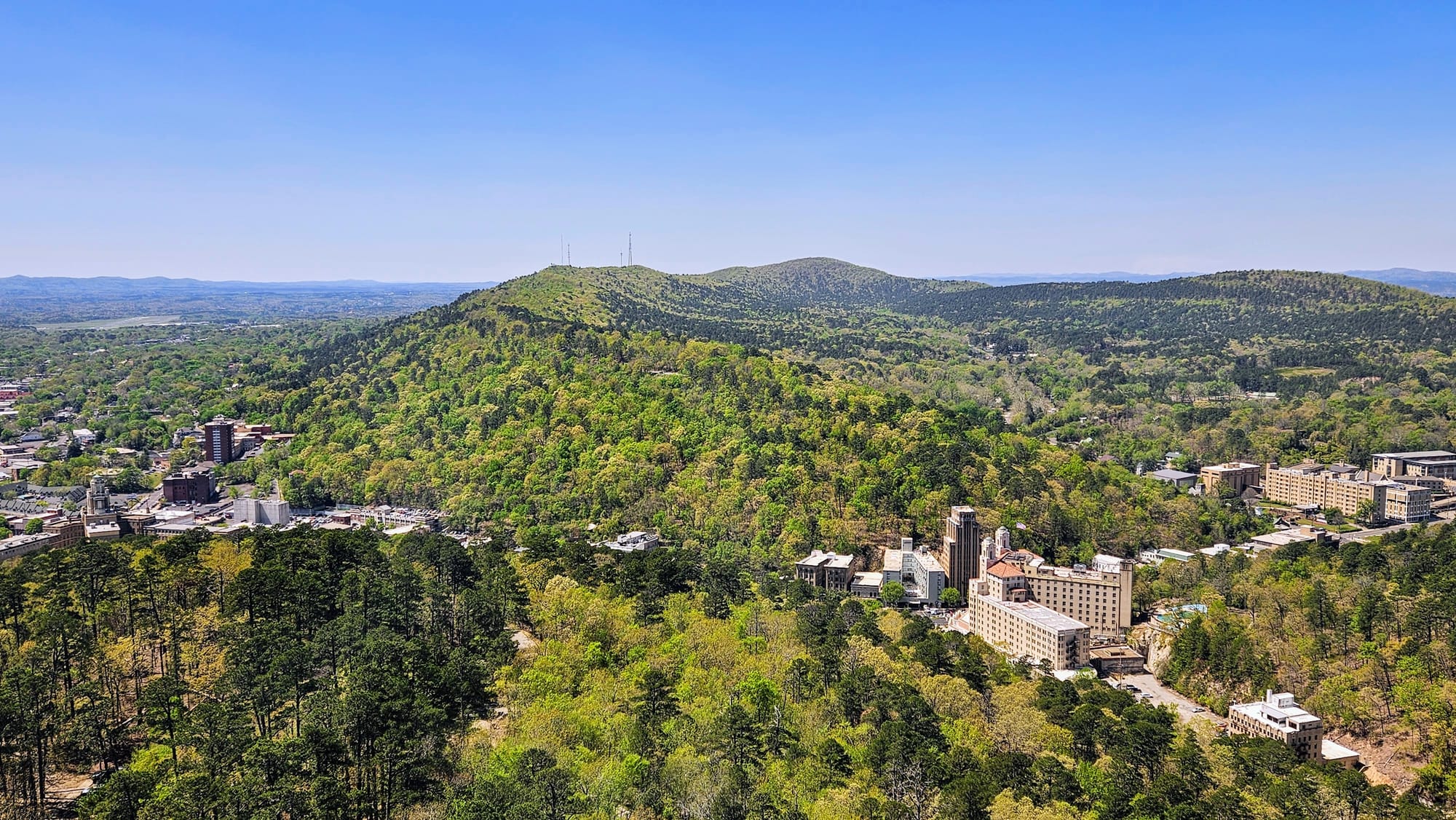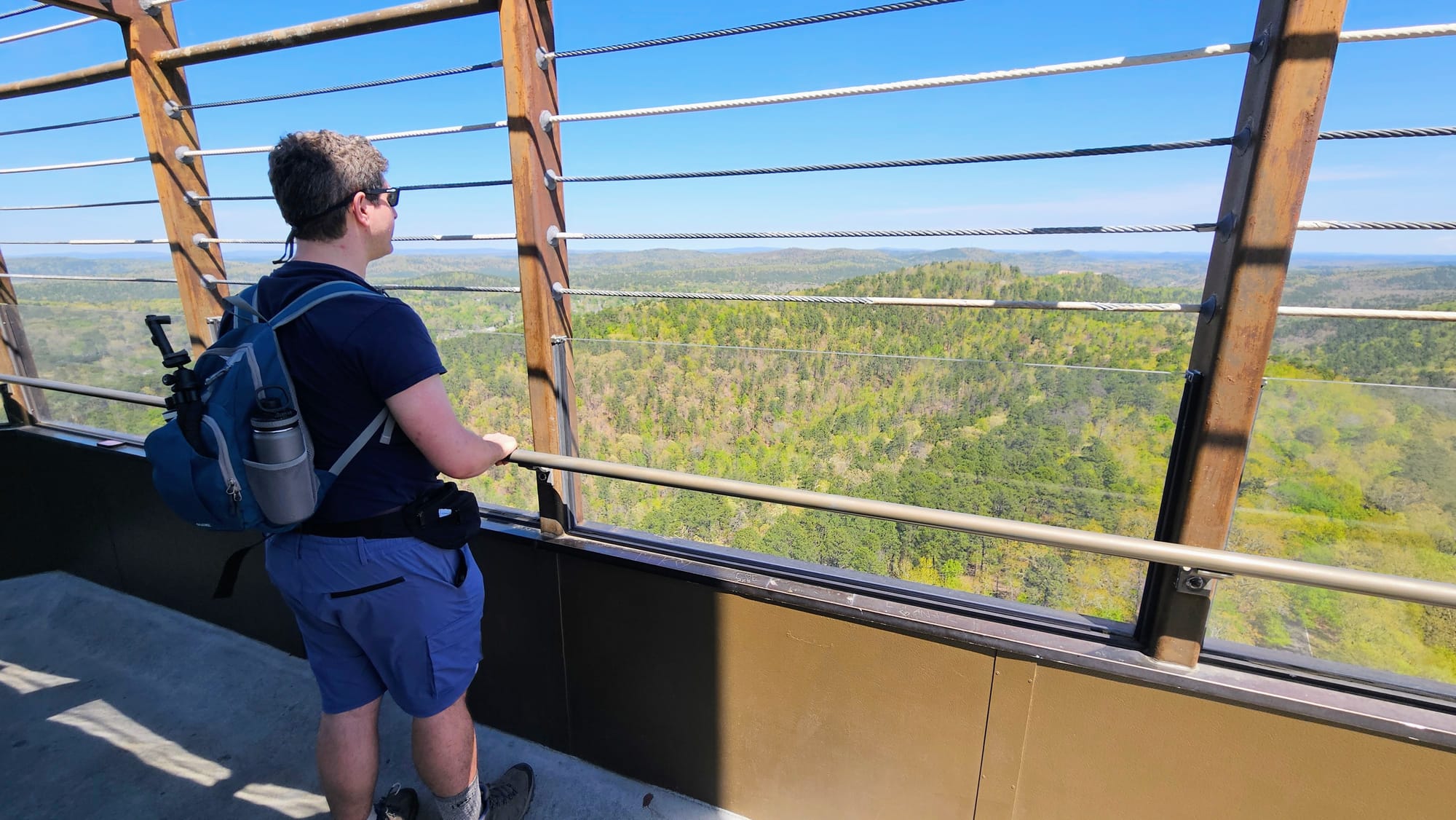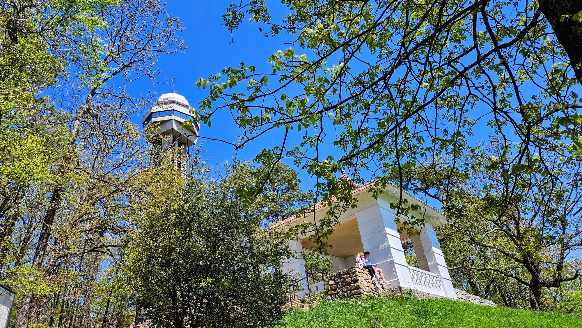 A short but steep hike, the Peak Trail gets you to the summit of Hot Springs Mountain in the Ouachita Mountain Range. The hike felt miles away from busy Central Ave, despite being only a short climb up from the Grand Promenade. The top boasts an observation tower with gorgeous views of the mountains and the town below. Our plan was to hike the trail up to the tower (you can also drive) and pay the admission to ride up to the top of the tower.