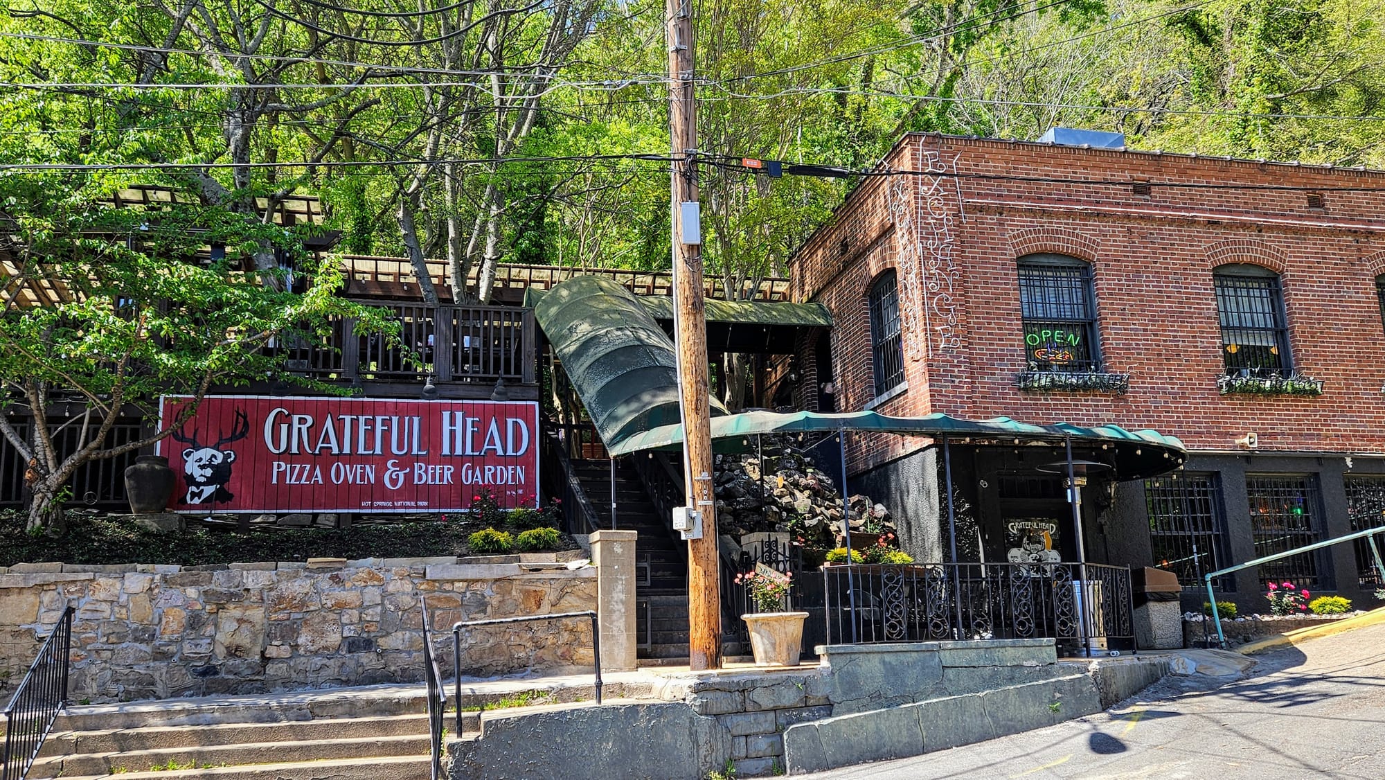 We had come to appreciate the nearby civilization when we worked up an appetite from our hike. All we had to do was pop across the street, where we had a plethora of restaurants to choose from. We had lunch at Grateful Head Pizza, which is built into a hillside and has a lovely patio. The food and service were great.