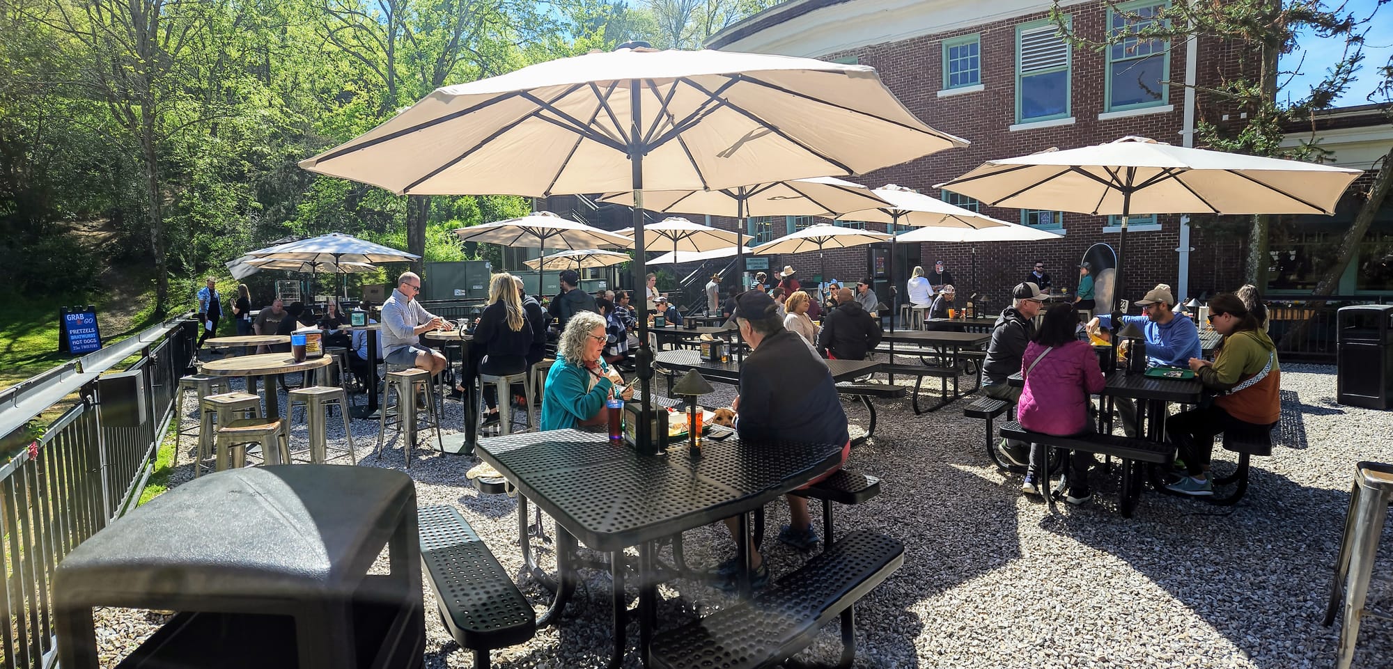On our first two visits to the park, we noticed how dog-friendly the area was. Dogs were allowed on most of the walking trails, and tons of the shops and restaurants were dog-friendly! It had been a while since we took Tanner on a National Park adventure. In his old age he mostly wants to sleep, but we thought he might enjoy a park that is smaller and not too intensive in terms of walking. We had our sights set on the Superior Bathhouse, which is now home to the only brewery located in a National Park, and whenever we walked by, we thought the patio looked delightful. Dogs are allowed both inside and out, but Tanner loves dining al fresco, so we made sure to get there on the early side so we could grab a table on the patio. Typically, the brewery offers a dine-in menu with waitstaff inside, or an order-at-the-counter menu for the patio. The day we went was on Eclipse Weekend, so they were offering a limited menu. We enjoyed two Bavarian pretzels, Anthony and Tanner split a burger, and Anthony and I got root beer floats. The pretzels were by far the best part. Otherwise the food was decent but nothing spectacular. We weren't surprised; the restaurant is a tourist attraction. What's really cool though, is that the beer is made with water from the springs. You definitely go for the experience if you visit here.