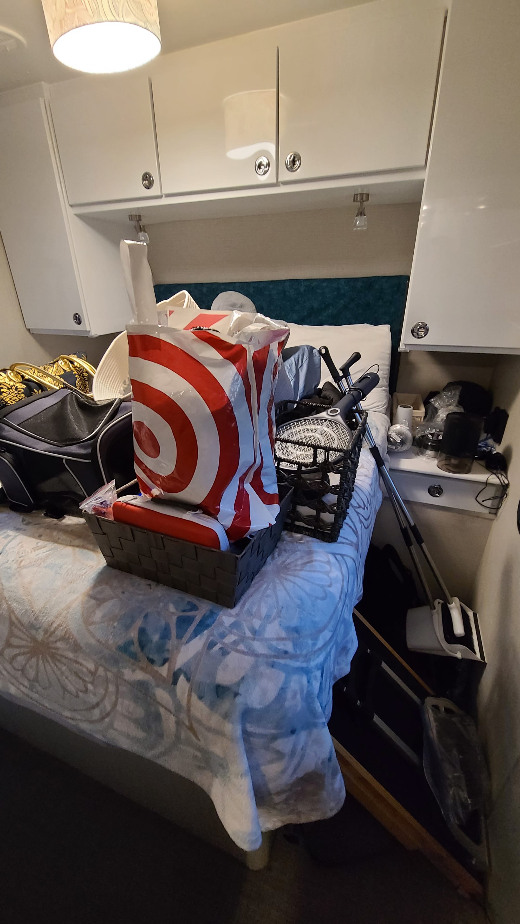 Even before moving into the RV, we were down on the count. We took delivery of our RV months later than expected and still needed to outfit it. We lost all chance to move some items in early or even take a shakedown trip. Then on December 30, we were an hour late to the closing because we were still packing things at the house and moving everything out.