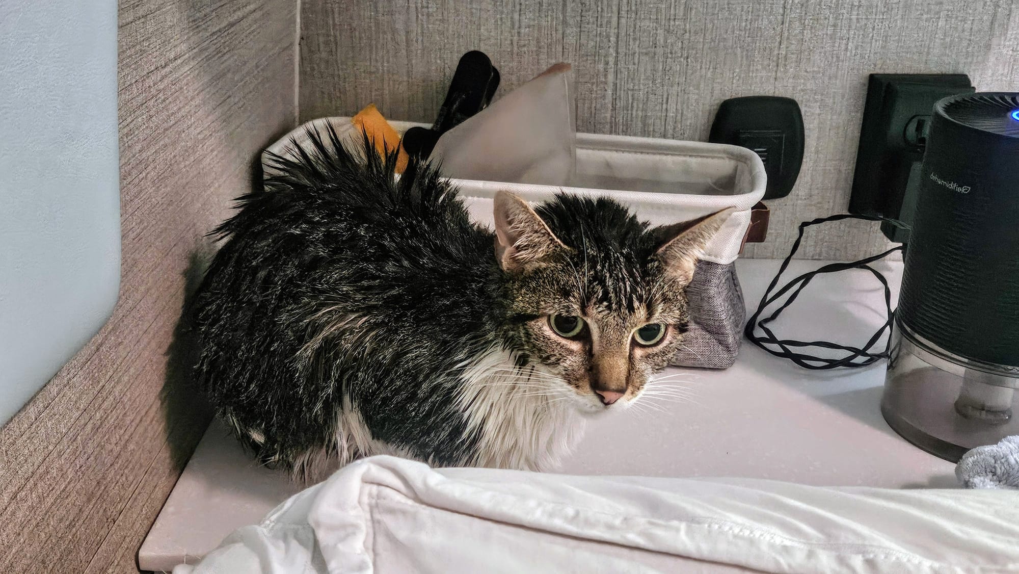 In October 2022, we had already made our way back to New England after finishing dealing with lightning strike aftermath in Indiana. On the way back, we stopped at a cat hospital outside of Philadelphia to get Lily checked out. She had been on antibiotics to help with her chronic bacterial cystitis, but she stopped responding to them. We always knew that she might build up a resistance, at which point we could change the antibiotic. However, we needed to catch it quickly because her infections could get really bad really fast. Unfortunately, our cat hospital visit left a lot to be desired. We had a tough time convincing the vet that Lily's issue was bacterial, since that's very rare. We did, however, get her on a new antibiotic, which held her health steady for a little while.