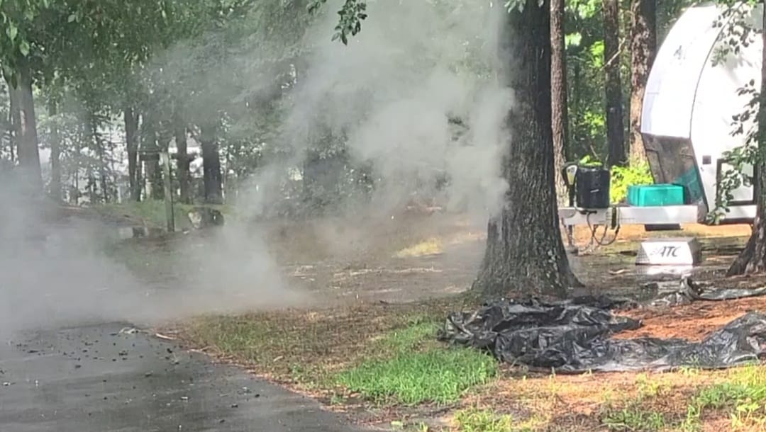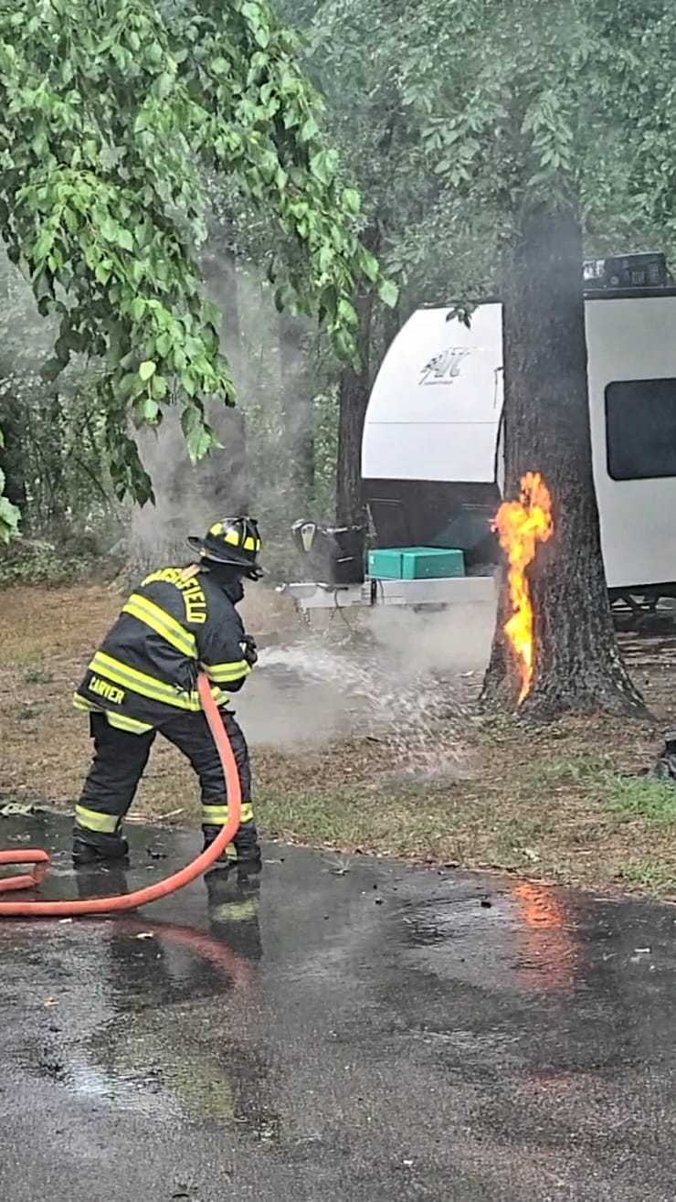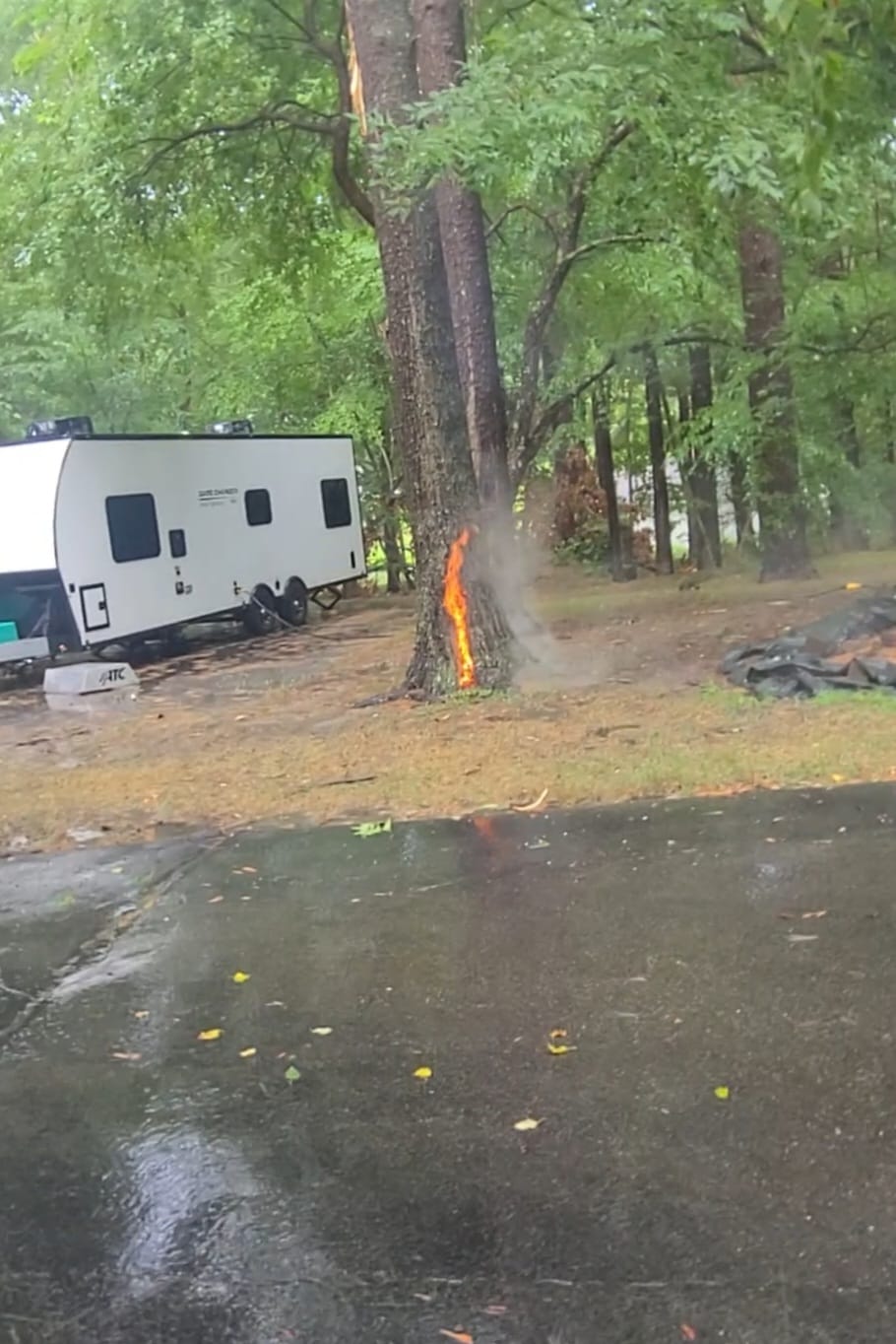 This story is one for the books. We've linked it more than probably any other story on the blog. We were interviewed about it for RV Radio. We won't rehash all the details here, but in summary, a thunderstorm came out of nowhere, lightning hit a tree 3 feet away from our RV, and the ground current shot into our trailer and Nicole's parents' house, destroying a whole lot of electrical wiring in its path. It also sparked a fire in the tree, and we had to move quick, first calling the fire department, and afterwards, scheduling an emergency appointment with a tree surgeon because the fire compromised the tree's integrity.