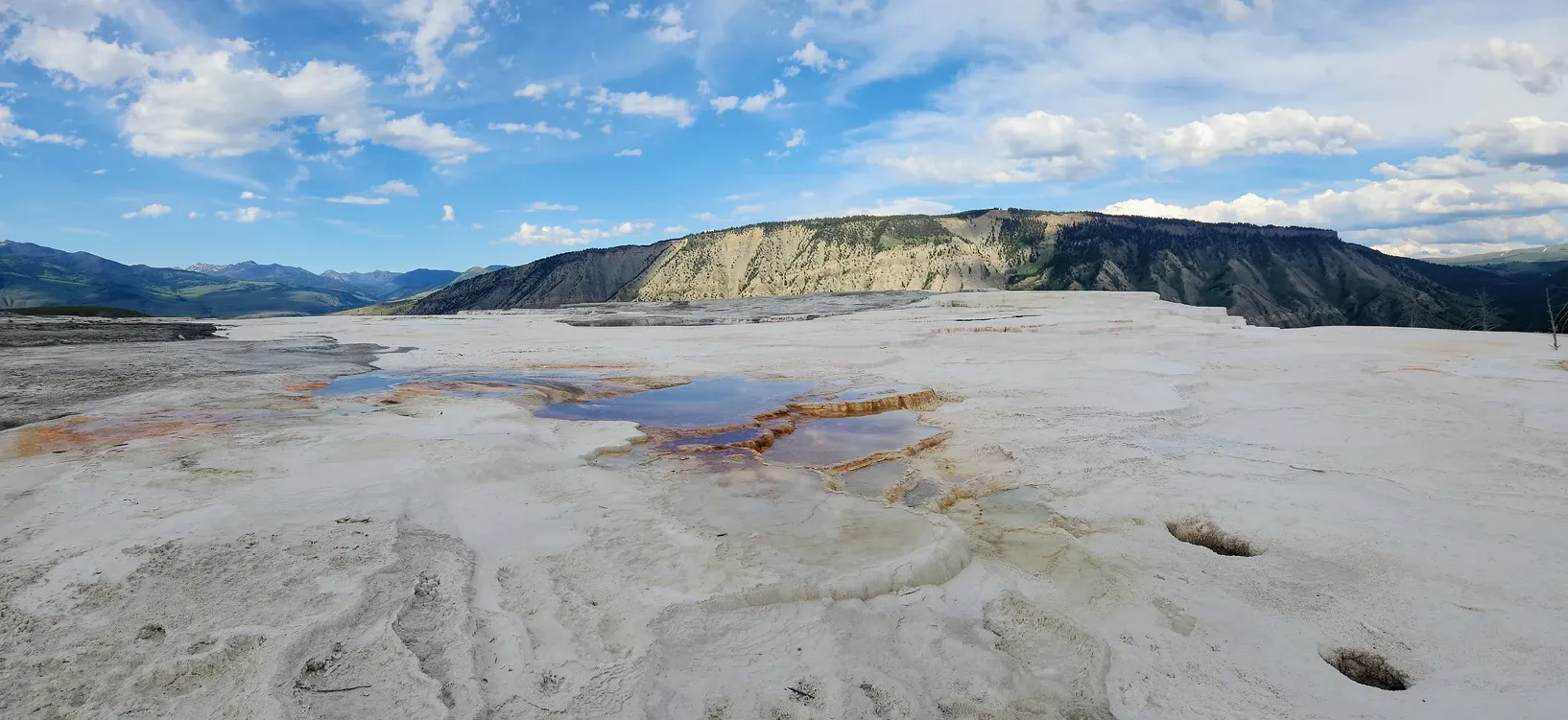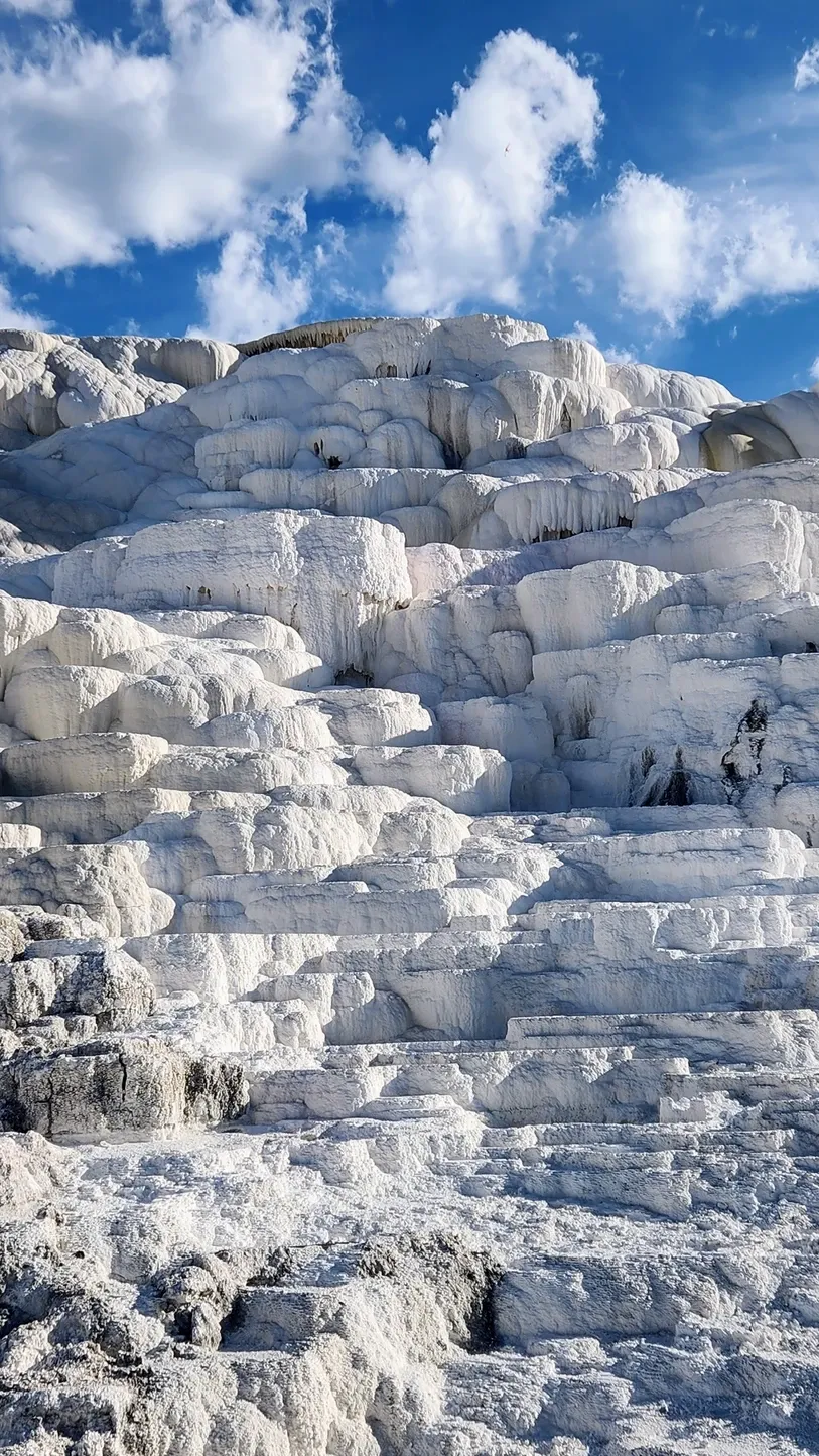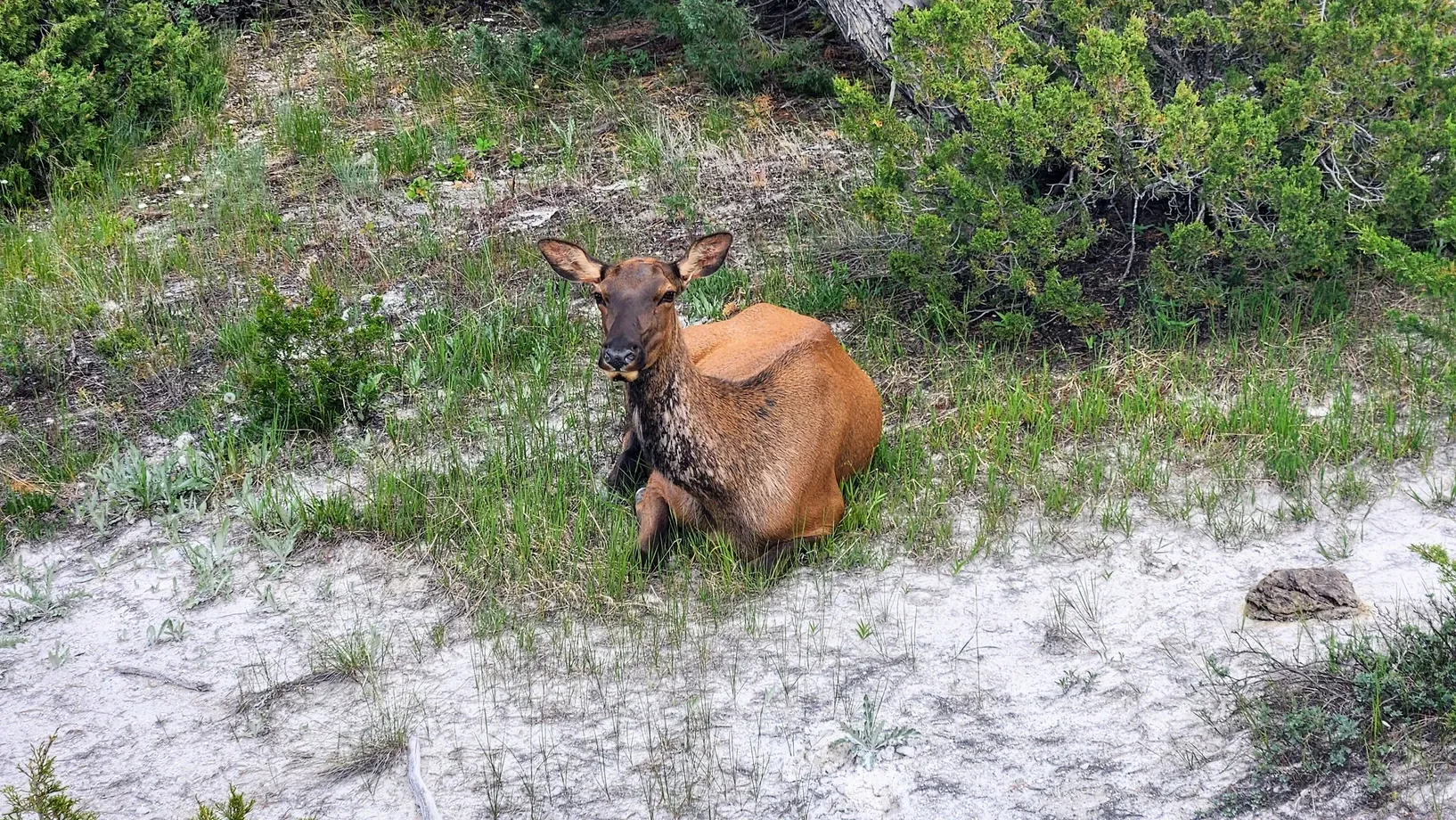We drove into Mammoth Springs, where we walked every boardwalk through the travertine terraces. We saw the most chill elk sitting and watching the visitors go by.
