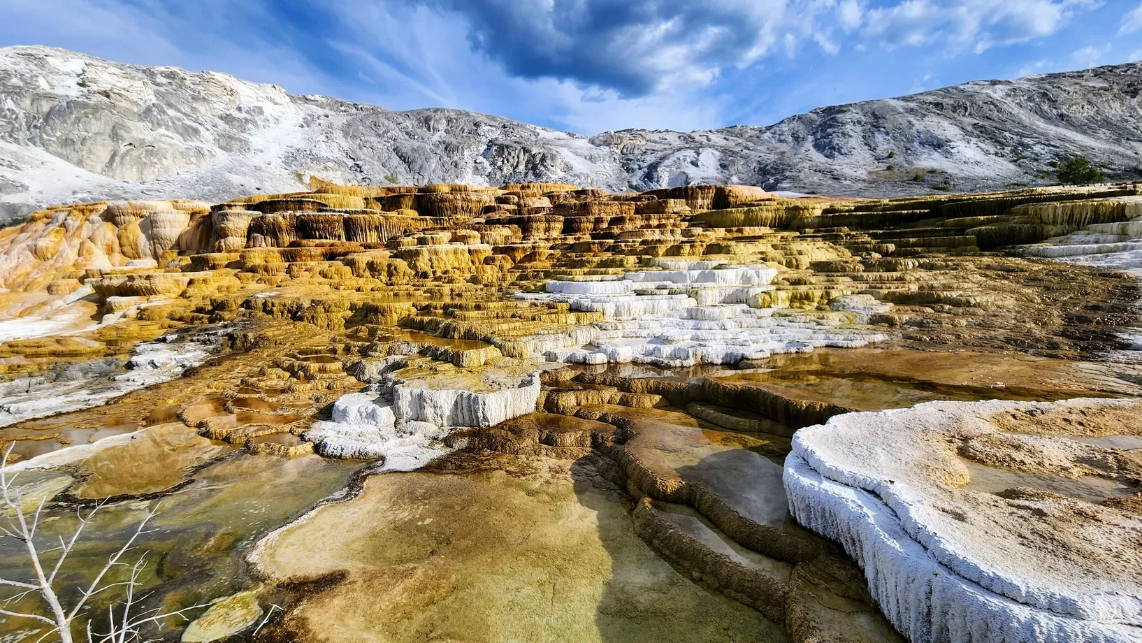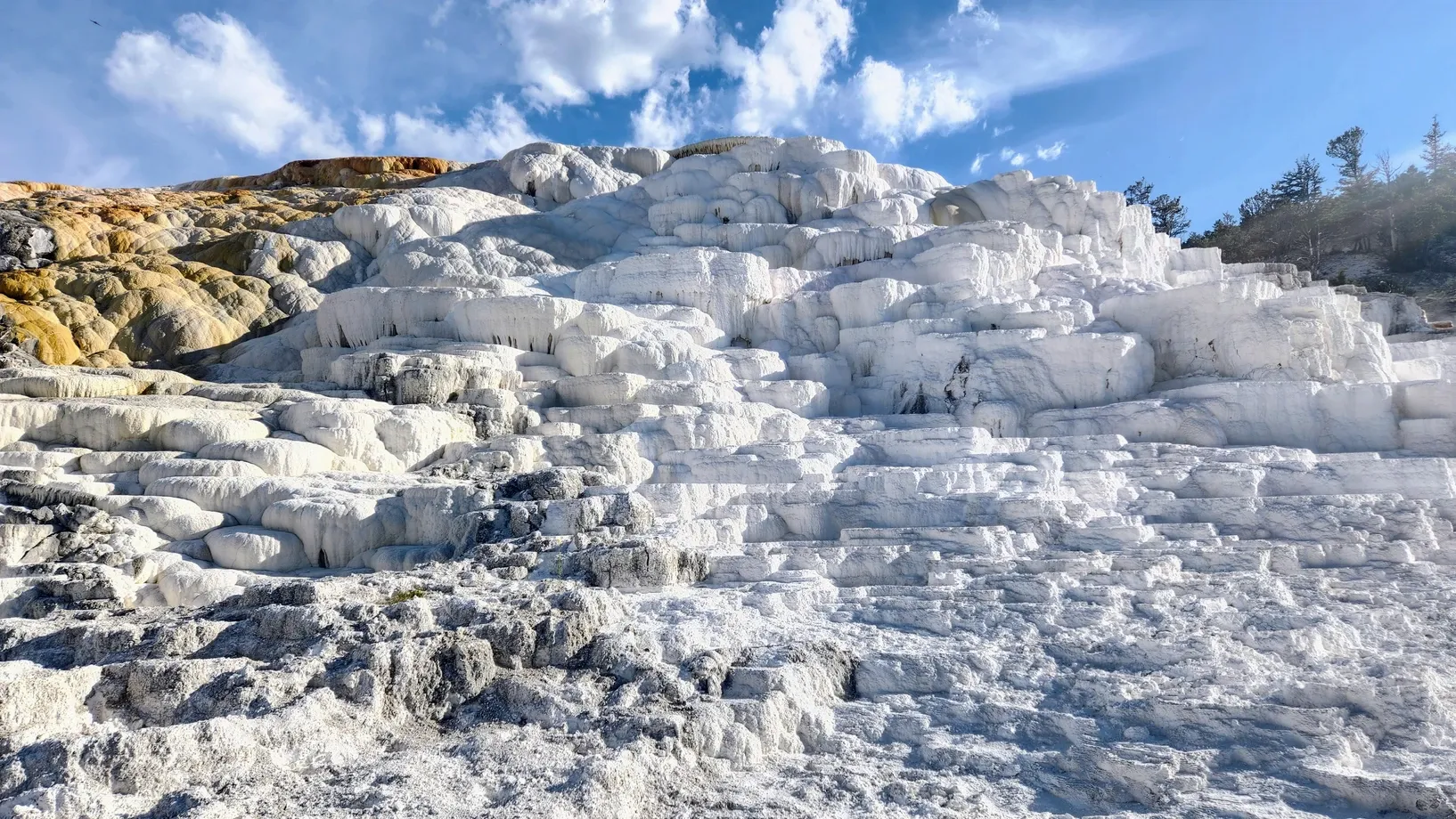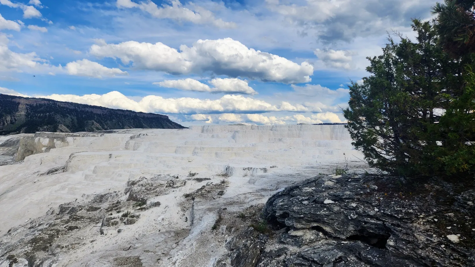 We drove into Mammoth Springs, where we walked every boardwalk through the travertine terraces. We saw the most chill elk sitting and watching the visitors go by.