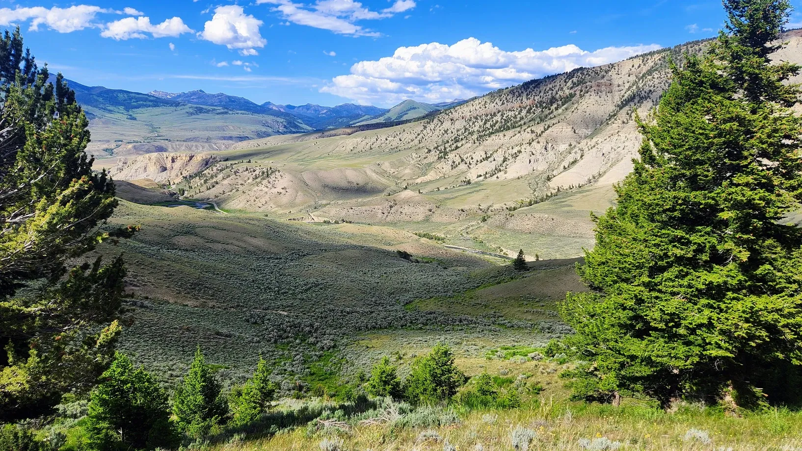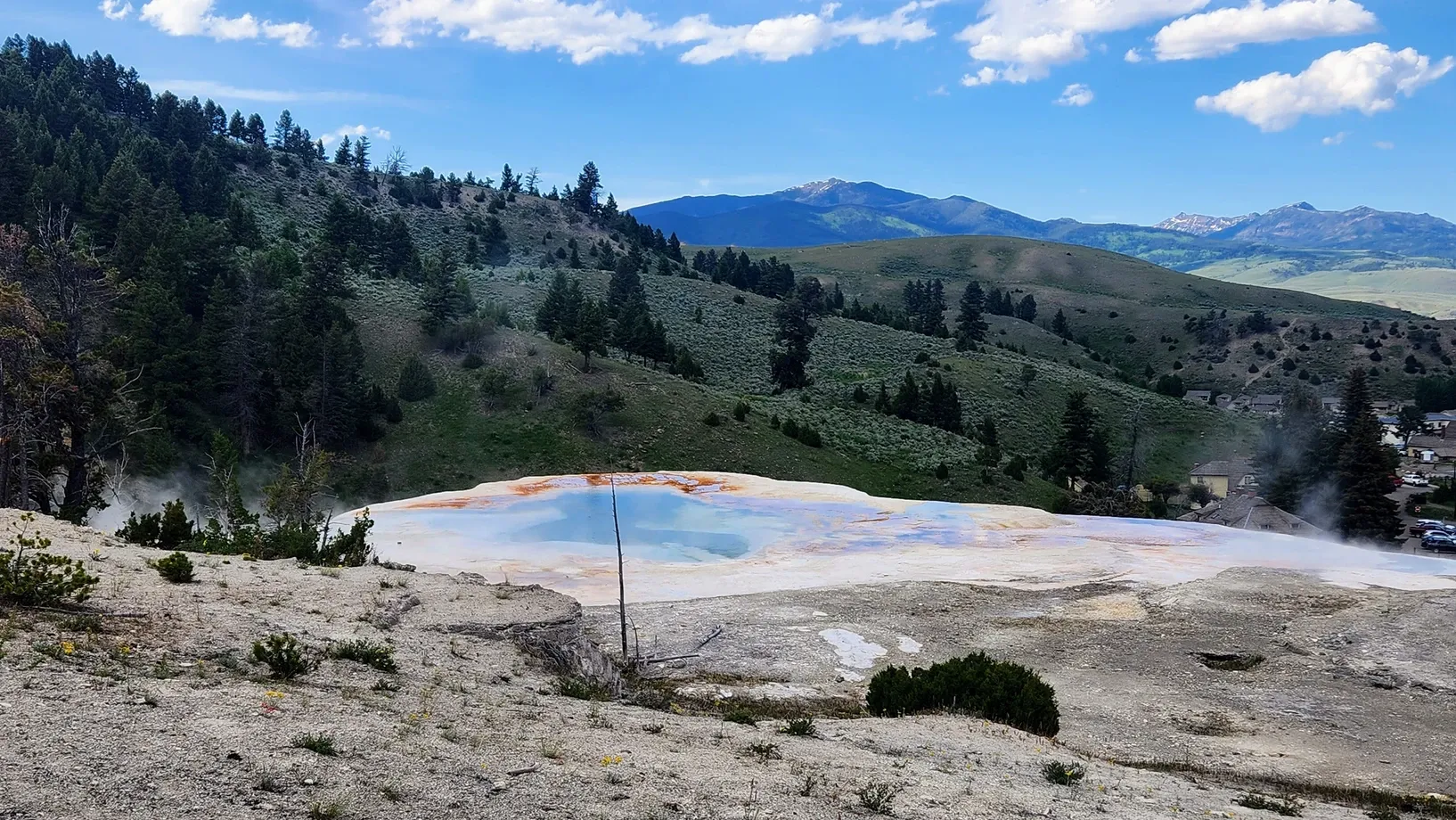 We thought that turnaround was a fluke, until we went to Yellowstone a second time. At the end of June, we returned to the park, this time entering from the northwest, through Gardiner, MT. Holy moly, is this drive something else! The road twists and turns through the mountains, offering amazing views of the town below.