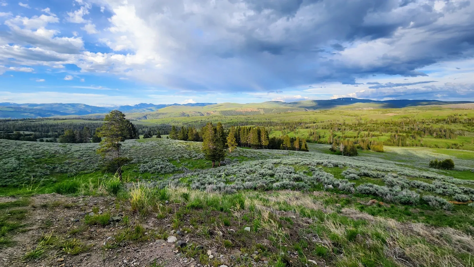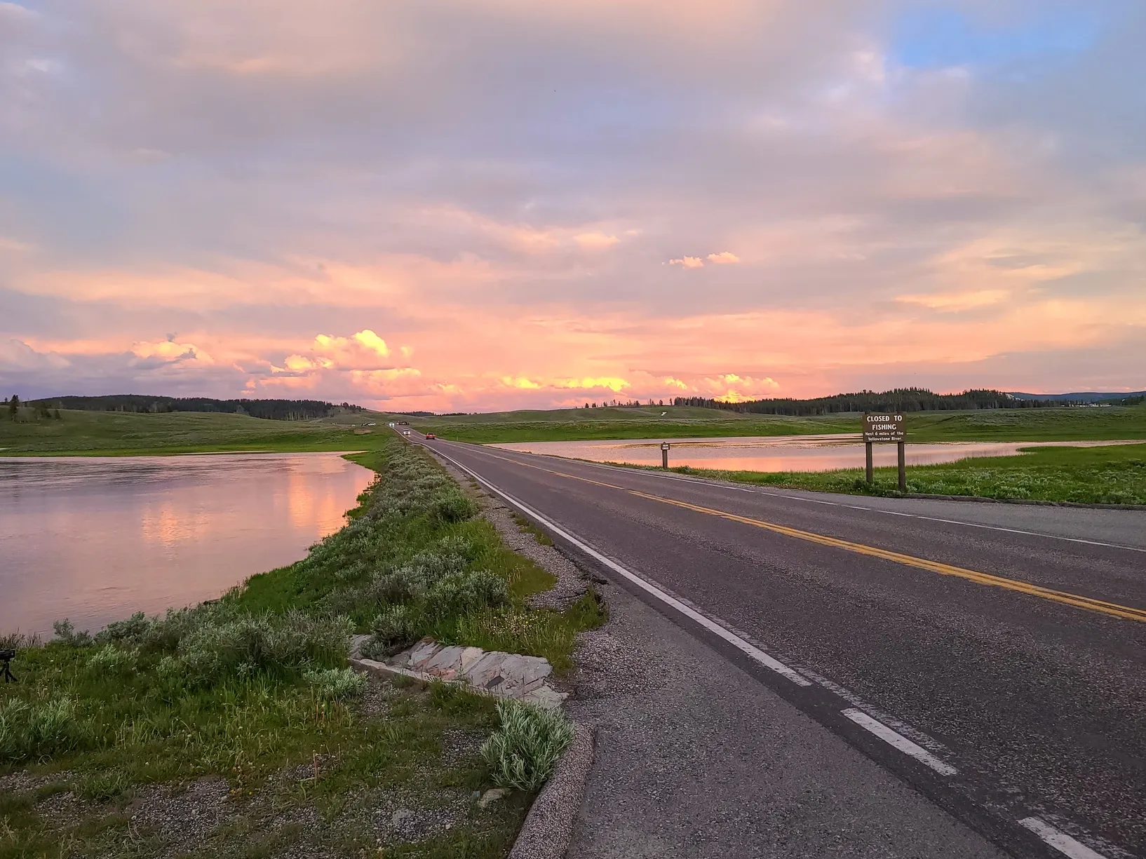 The sun was moving behind some storm clouds and would soon be setting, and so we started making the long drive back towards Gardiner. We checked our map and decided to finish the northern loop on the way out, so we could see areas we hadn't yet. We calculated that the distance was about the same number of miles whether we went back the way we came, or continued clockwise.
