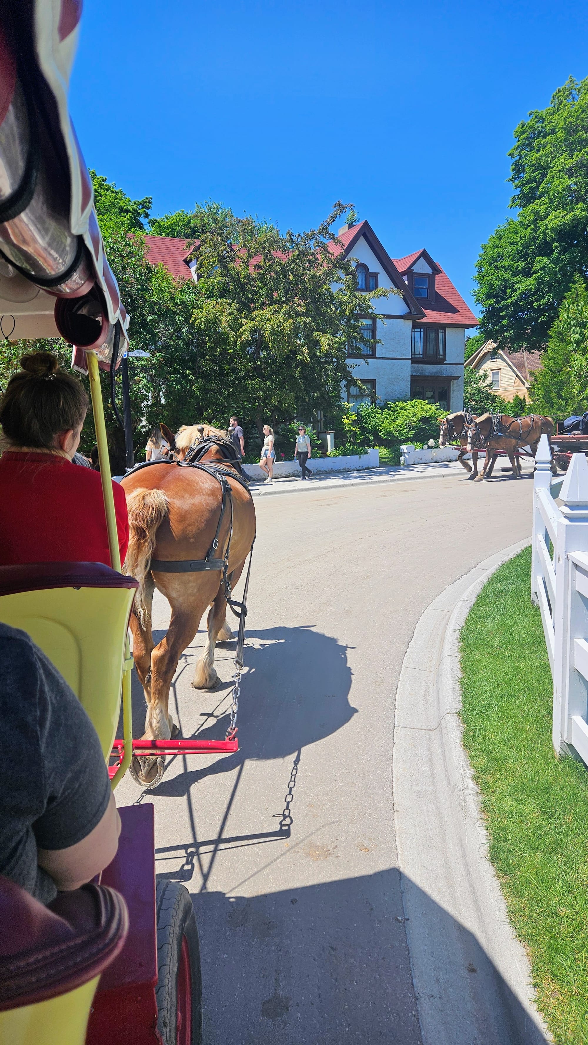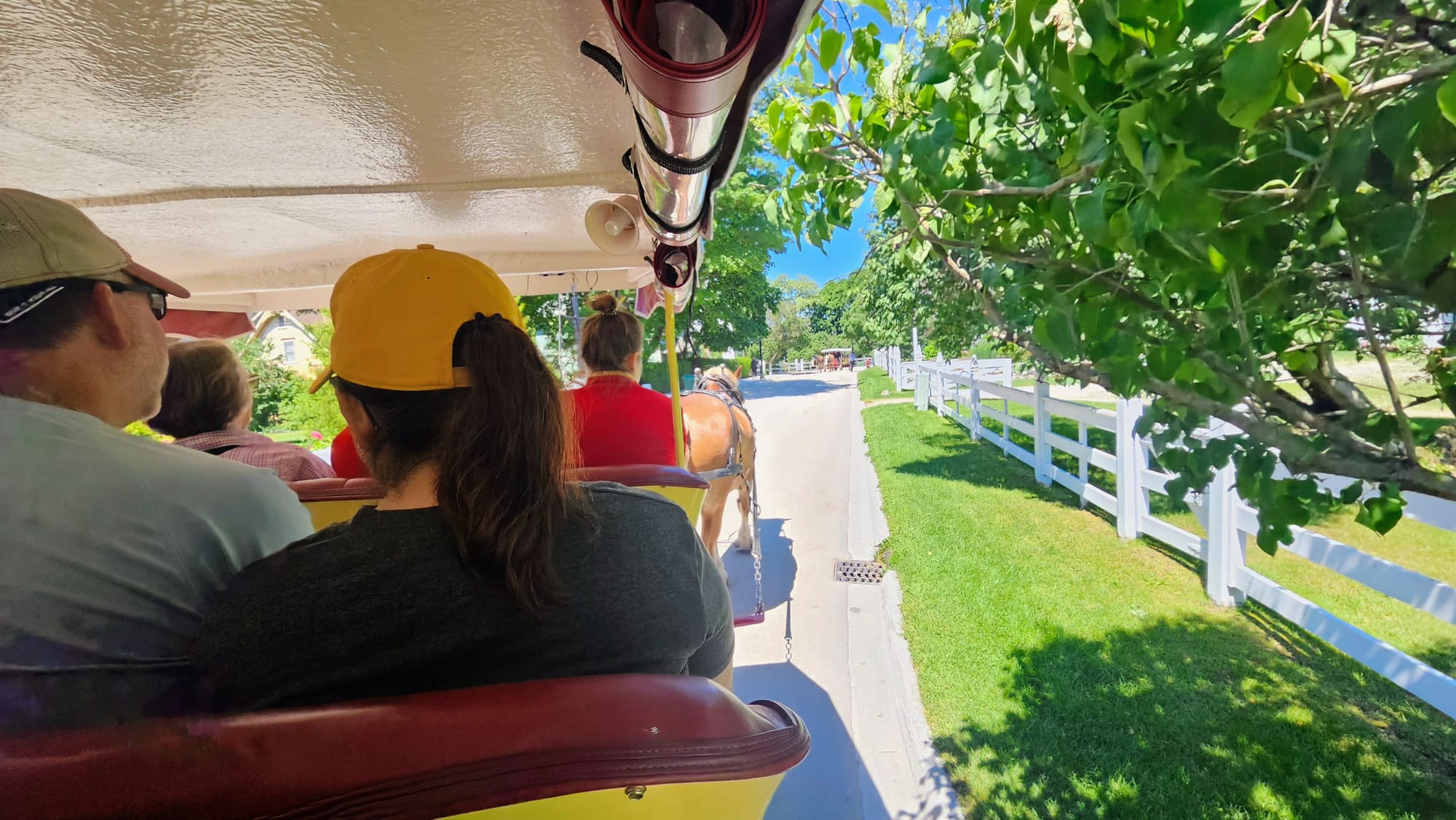 We walked around while we waited for our boarding time, and with a few minutes to spare, we made our way to the boarding line, where we waited a few more minutes before getting on the carriage. Within 3 seconds of talking, we realized that our guide was very, very new. She didn't seem comfortable, kept making really awkward jokes that didn't land, and she spoke in a sing-songy voice that was extra grating due to the low quality speaker in the carriage. As she showed us around town, her descriptions of places were very wrote. Later, when someone asked how long she's been working for the company, she said it was her first week. It was fine. Everyone is new at some point, but when we're spending (extra) money to take the tour, we wish we could have a decent guide. We've noticed in a lot of our tours that the guide can make or break the experience. Riding through the streets of Mackinac, we also discovered the downside to not having motors. The roads reeked of horse manure.