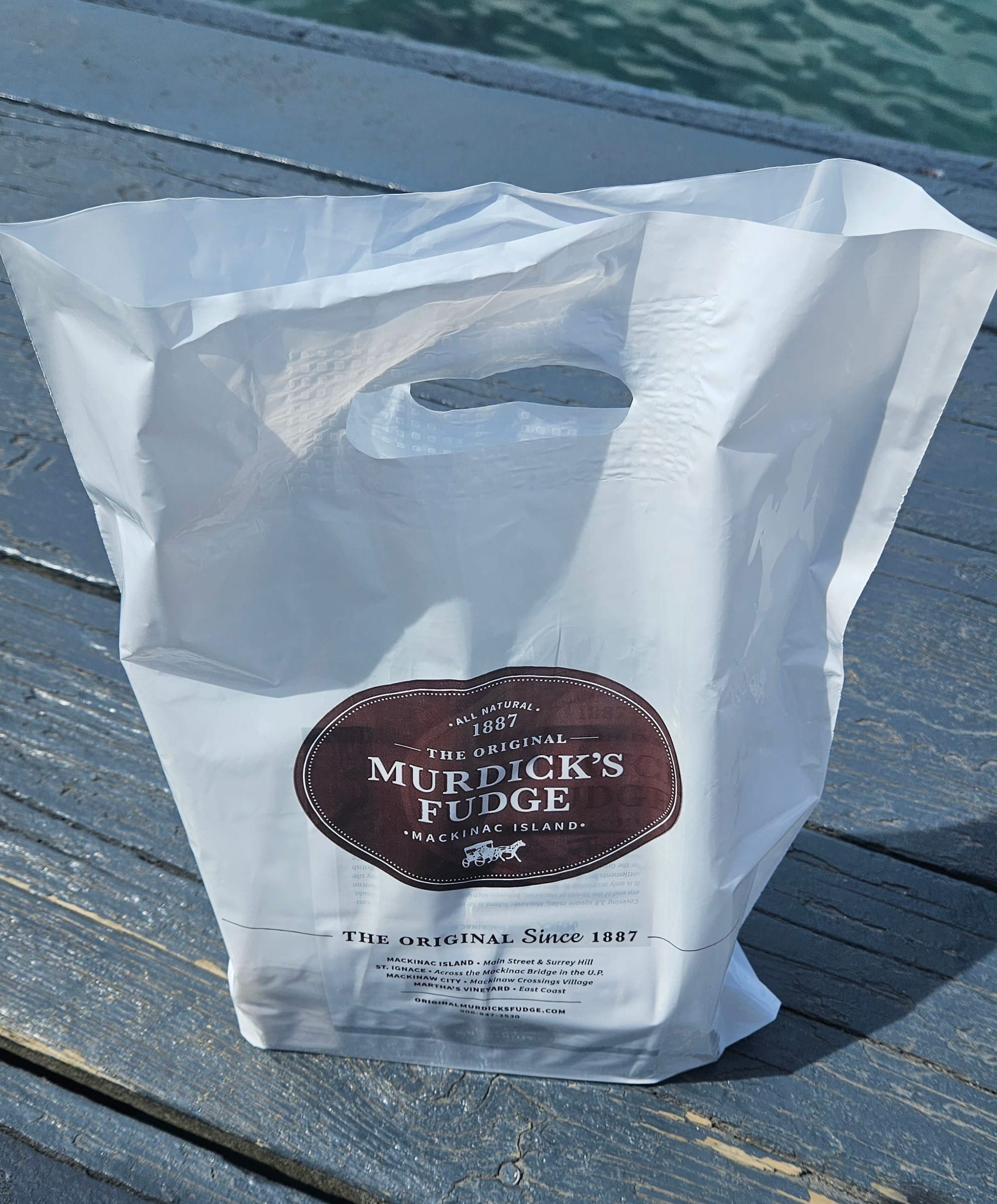 We made one last stop on our way back to the ferry: Murdick's Fudge. Fudge is a big deal in this part of Michigan, and Murdick's is the OG. This fudge started it all in the early 1900s, and soon other shoppes followed suit. The fudge makers credit the temperate climate of the island for the successful texture. However, being the OG, we knew that might also mean it's a mediocre tourist trap. Our fears were quickly quelled when we tried samples of chocolate walnut that they had on their countertop. It was delicious! So fresh and chewy, with great flavor. We sprung for their "buy two get one half off" discount, which was three pieces for $29. Over-the-top prices once again, but at least we knew we were getting some good fudge.