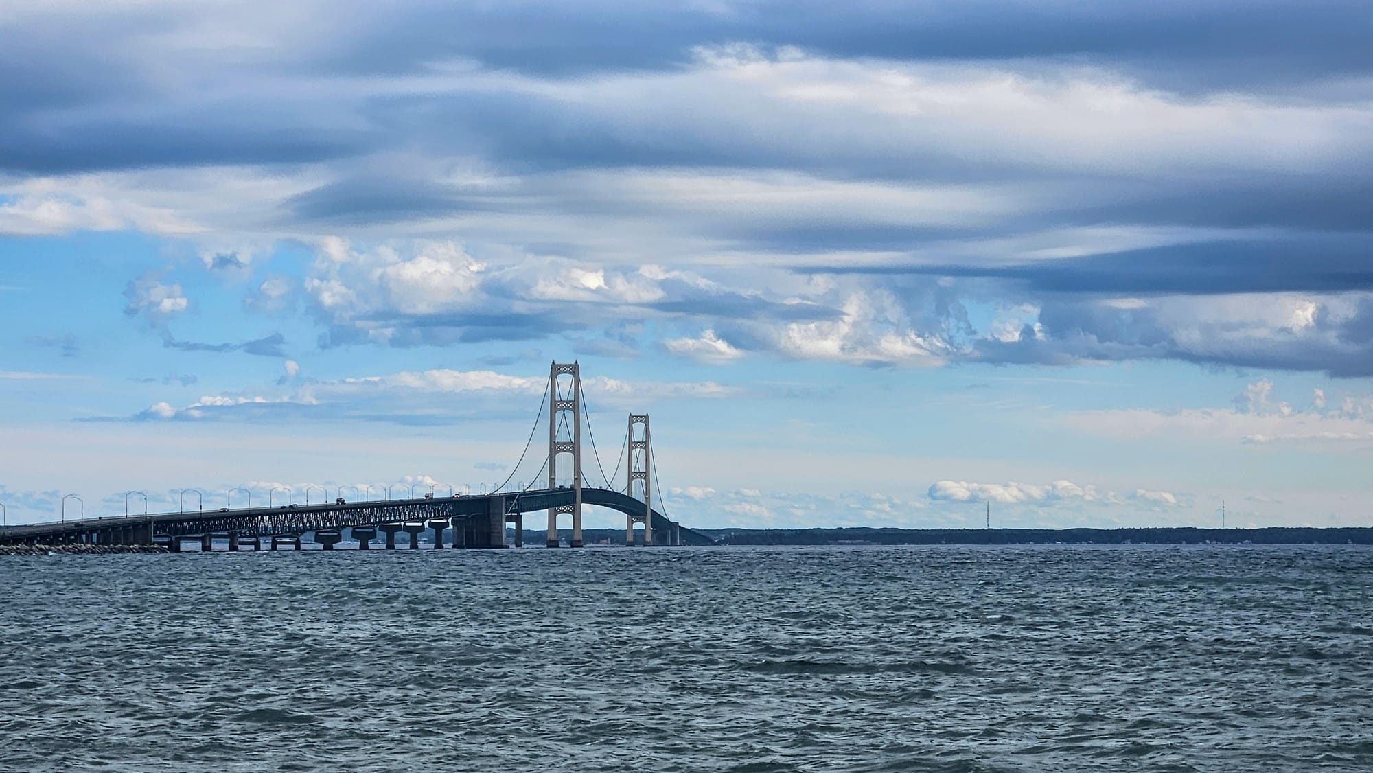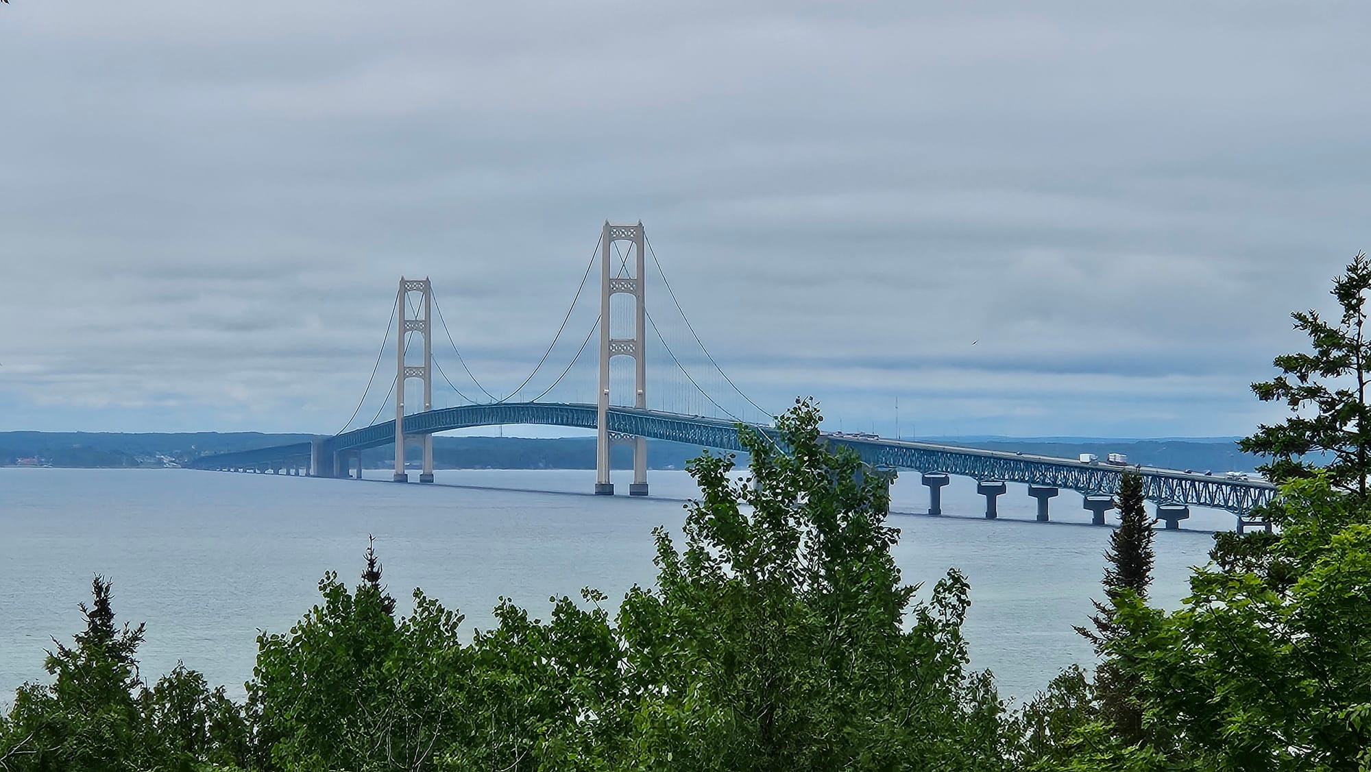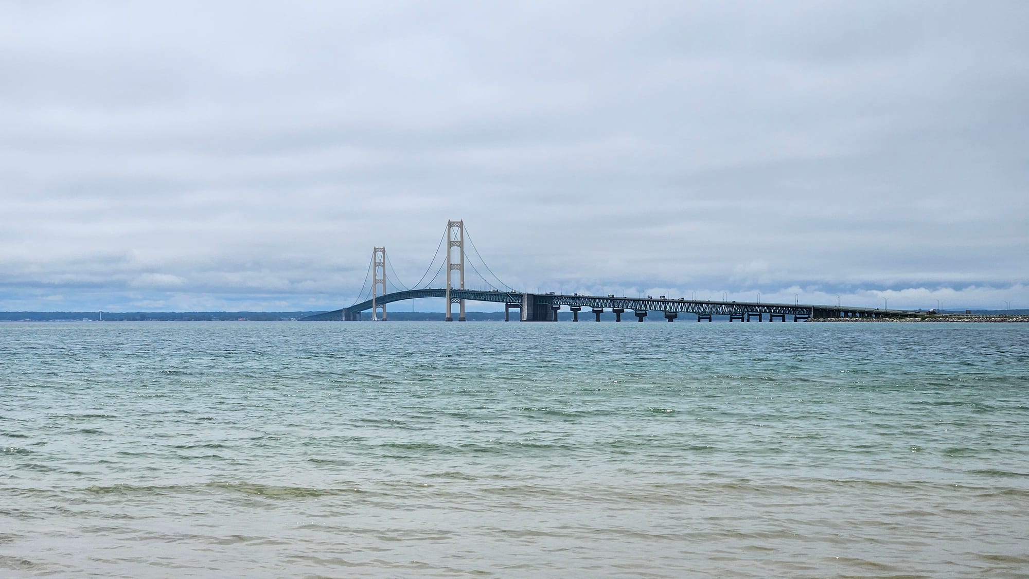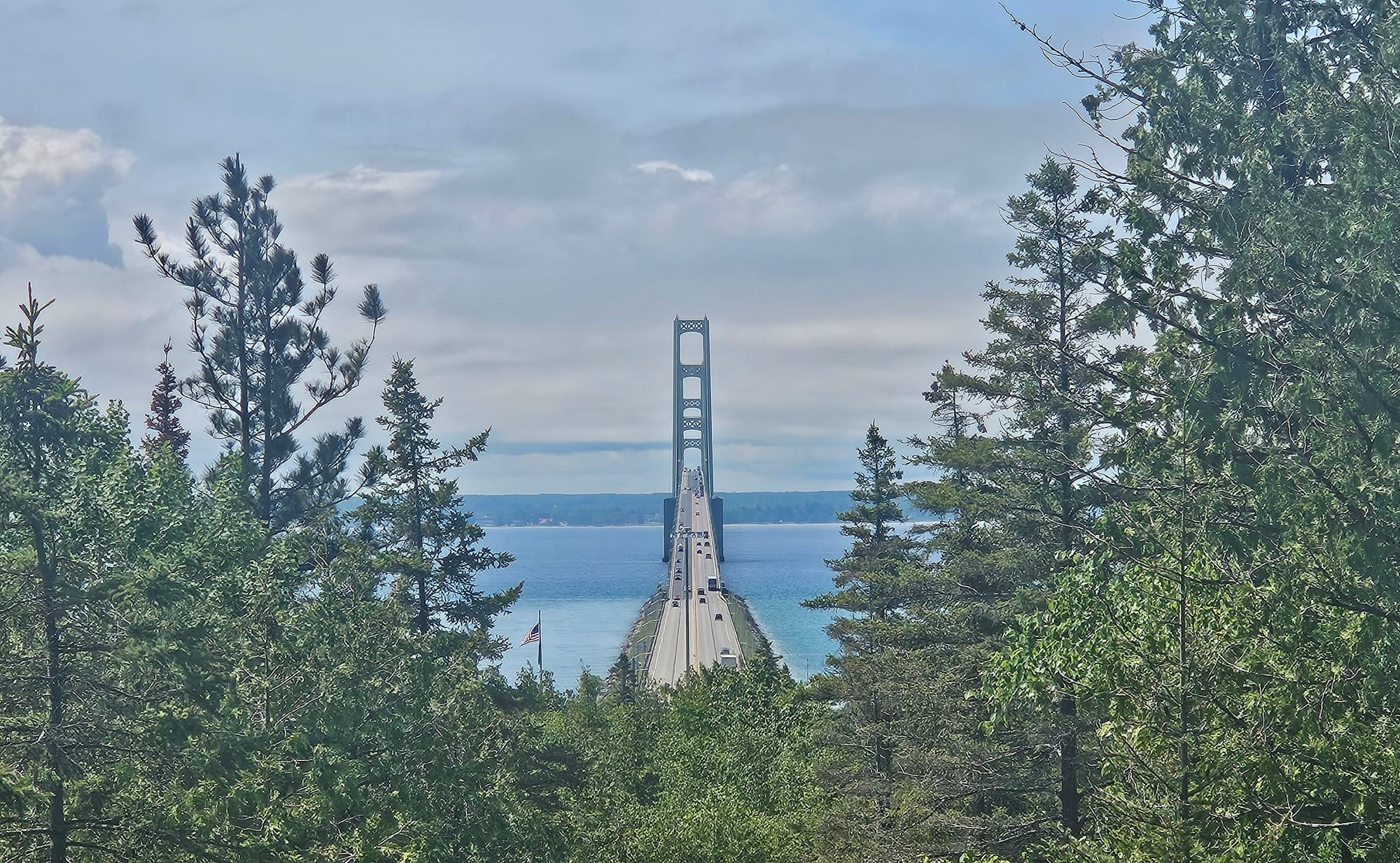 Our travels took us across the UP from west to east, landing us at Straits State Park, right along the Straits of Mackinac (pronounced MACK-in-aw), where Lake Michigan and Lake Huron meet. The must-see feature of this area is the Mackinac Bridge, a 5-mile-long towering spectacle that takes vehicles from the Upper to Lower Peninsula. Straits State Park has some incredible overlooks of the bridge.
