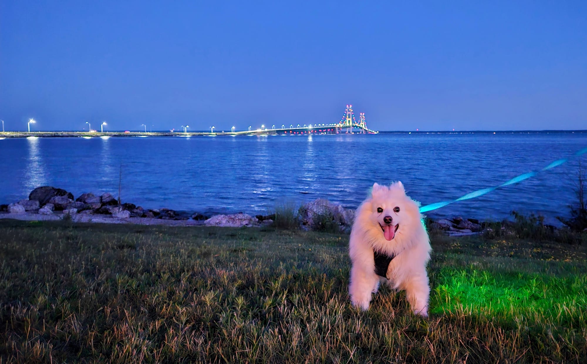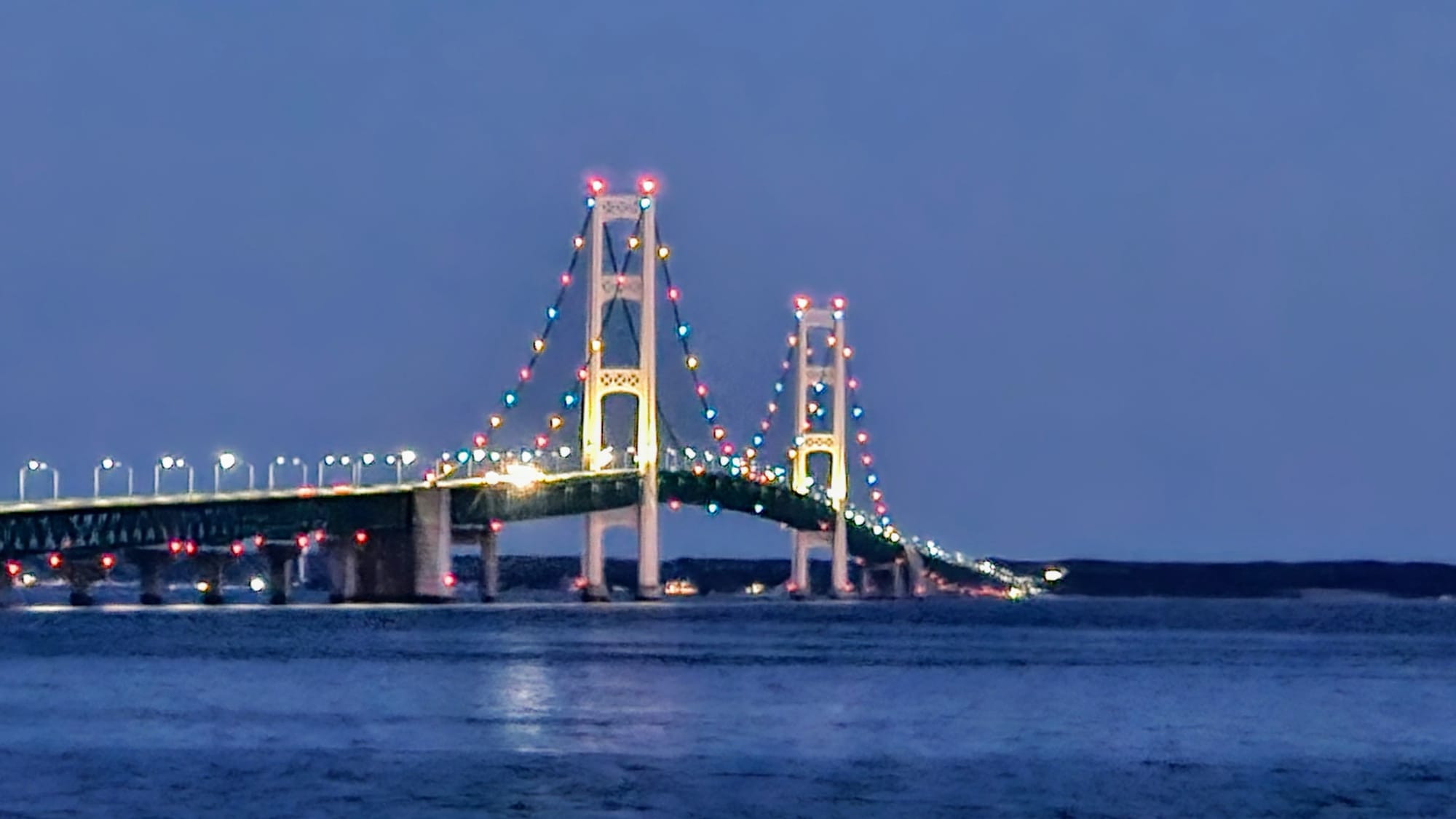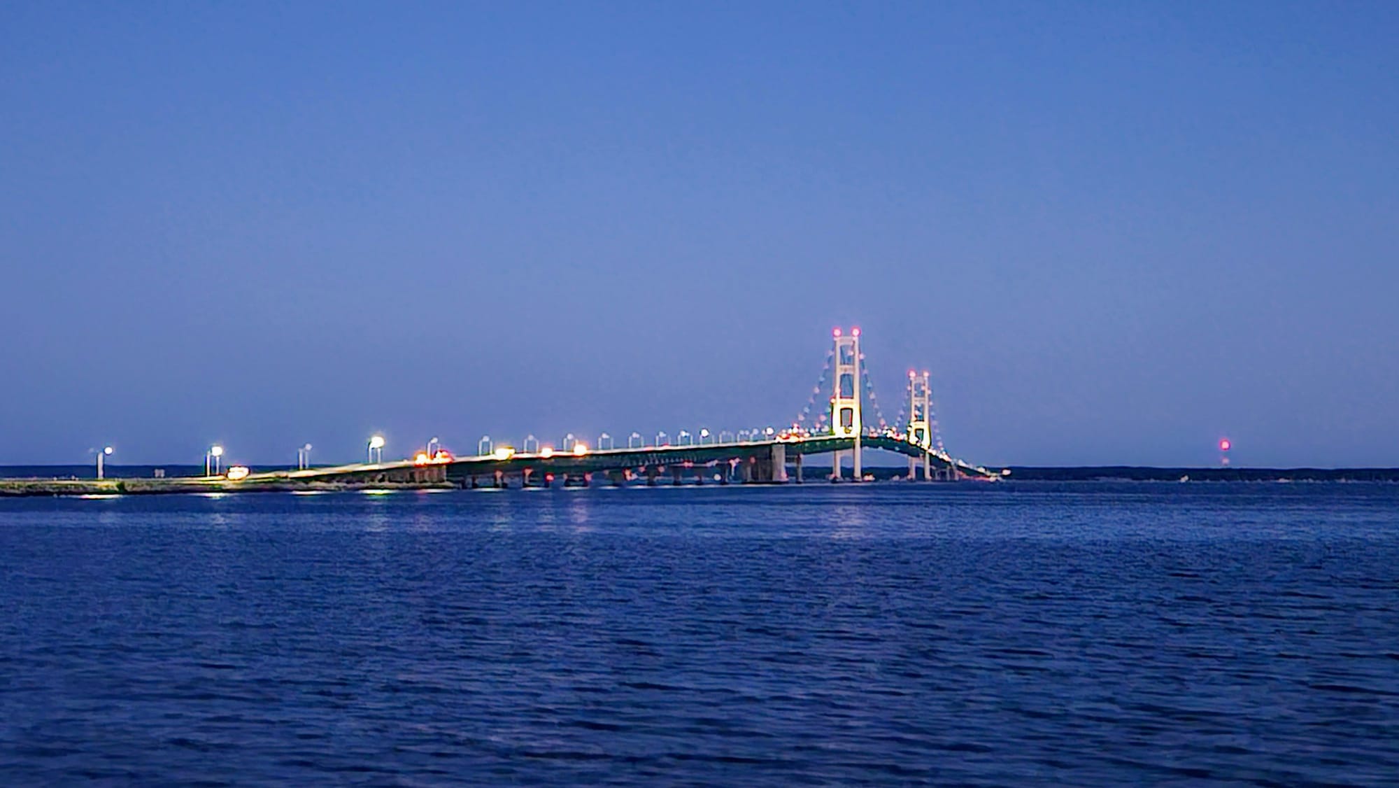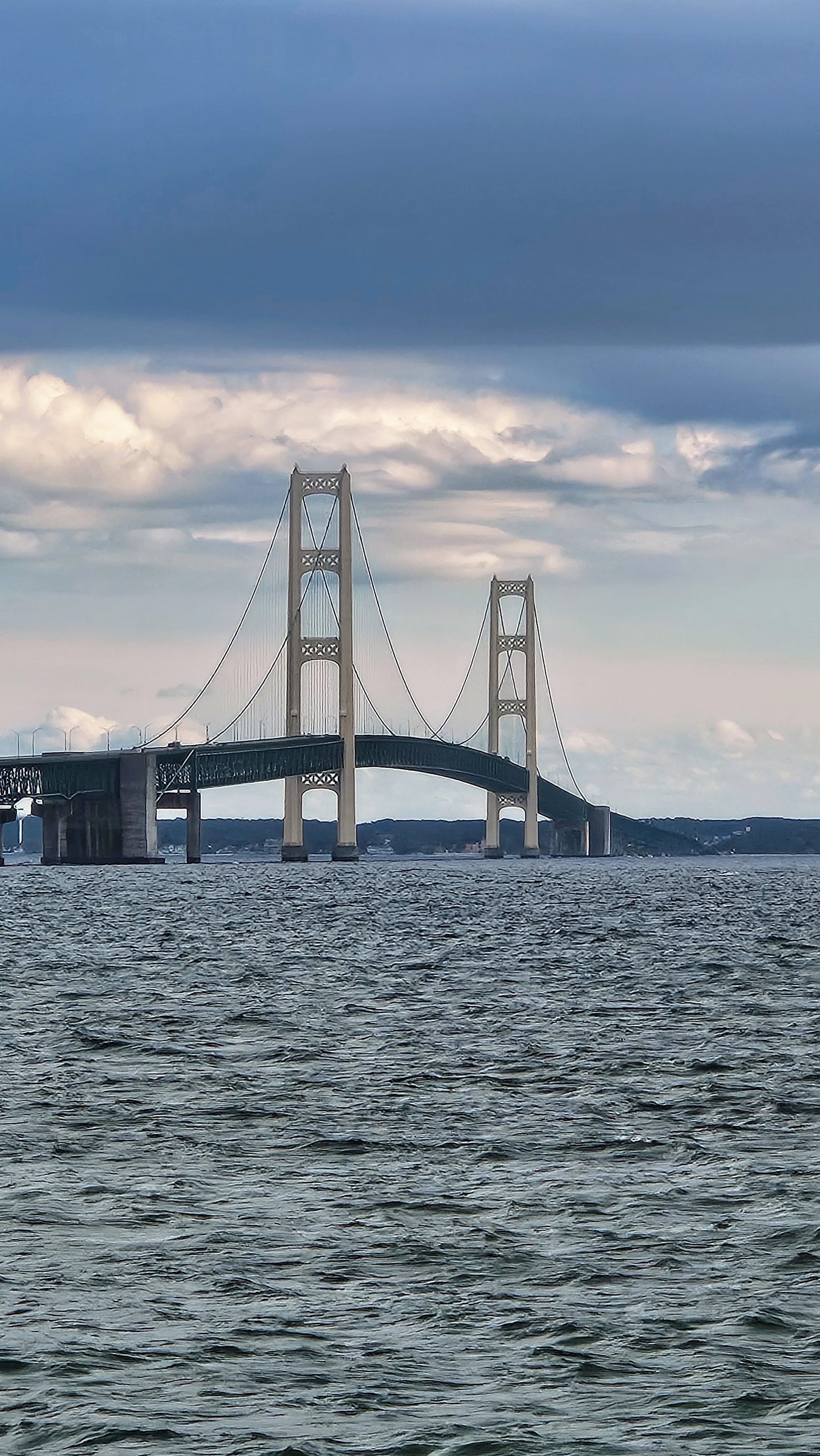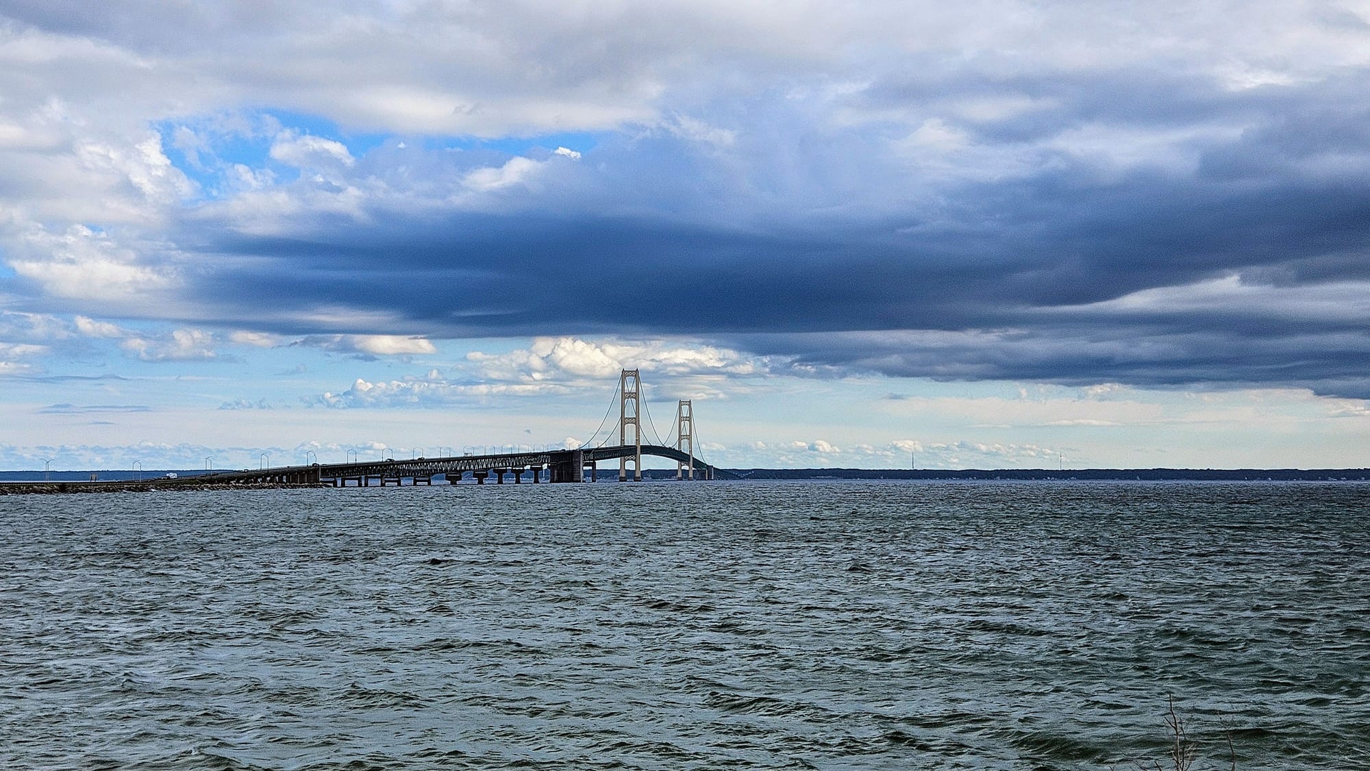 Our travels took us across the UP from west to east, landing us at Straits State Park, right along the Straits of Mackinac (pronounced MACK-in-aw), where Lake Michigan and Lake Huron meet. The must-see feature of this area is the Mackinac Bridge, a 5-mile-long towering spectacle that takes vehicles from the Upper to Lower Peninsula. Straits State Park has some incredible overlooks of the bridge.