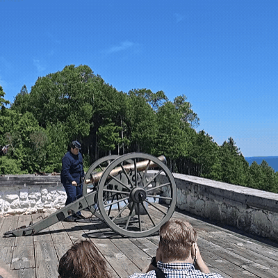 Alright, let's talk about the Fort, because we were right: It's worth a visit. First off, the views are spectacular. The hike up the hill sure pays off if you're able to do it. There were reenactments and we even got to catch a cannon demonstration. Each area of the fort had exhibits showing the daily operations, the living quarters, and the history. The fort is most famous for being the scene of two battles in the War of 1812 when the British fought the US for control over the Great Lakes. The fort was seized by the British in one of the battles, but later returned to the US after the war.