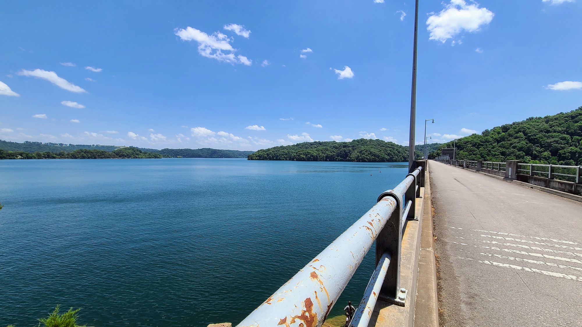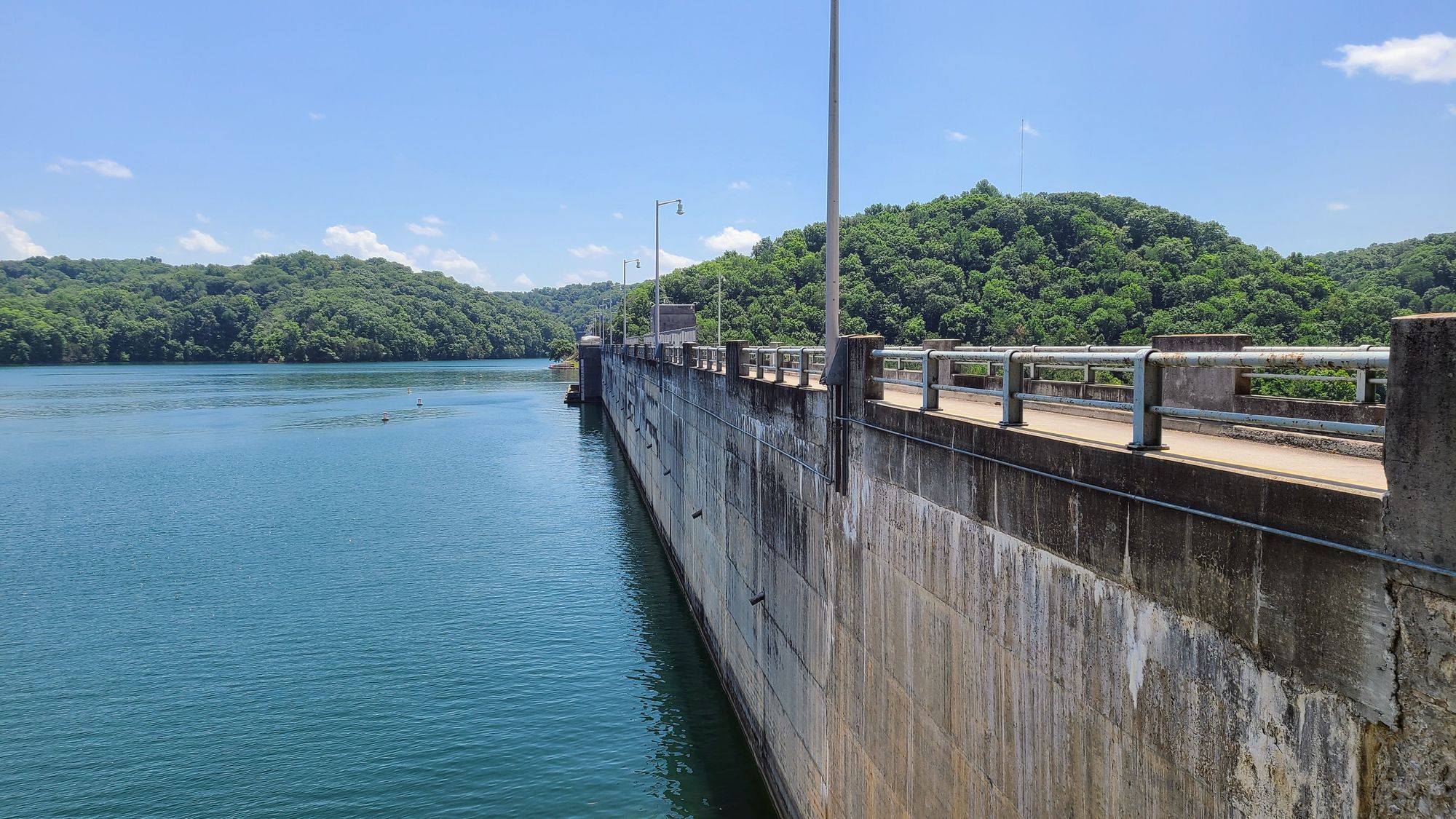 Up the hill from the campground was the dam, which houses an impressive hydroelectric power plant. Next to the dam are overlooks and picnic tables. We were surprised by the freedom we had to explore the area. Not a lot outside the dam was off-limits. There were stairs leading down to the power house, right alongside the dam. You could walk right up to the dam and touch it if you wanted to. We saw a family climb down the hill on the lake-side of the dam to take a dip in the water. Best of all, we discovered that the dam is drivable! We could enjoy this feat of engineering from literally all angles. Who knew that Dale Hollow would offer us so many educational opportunities, as well as hidden gems of beauty?! I guess we have Google to thank for these experiences.