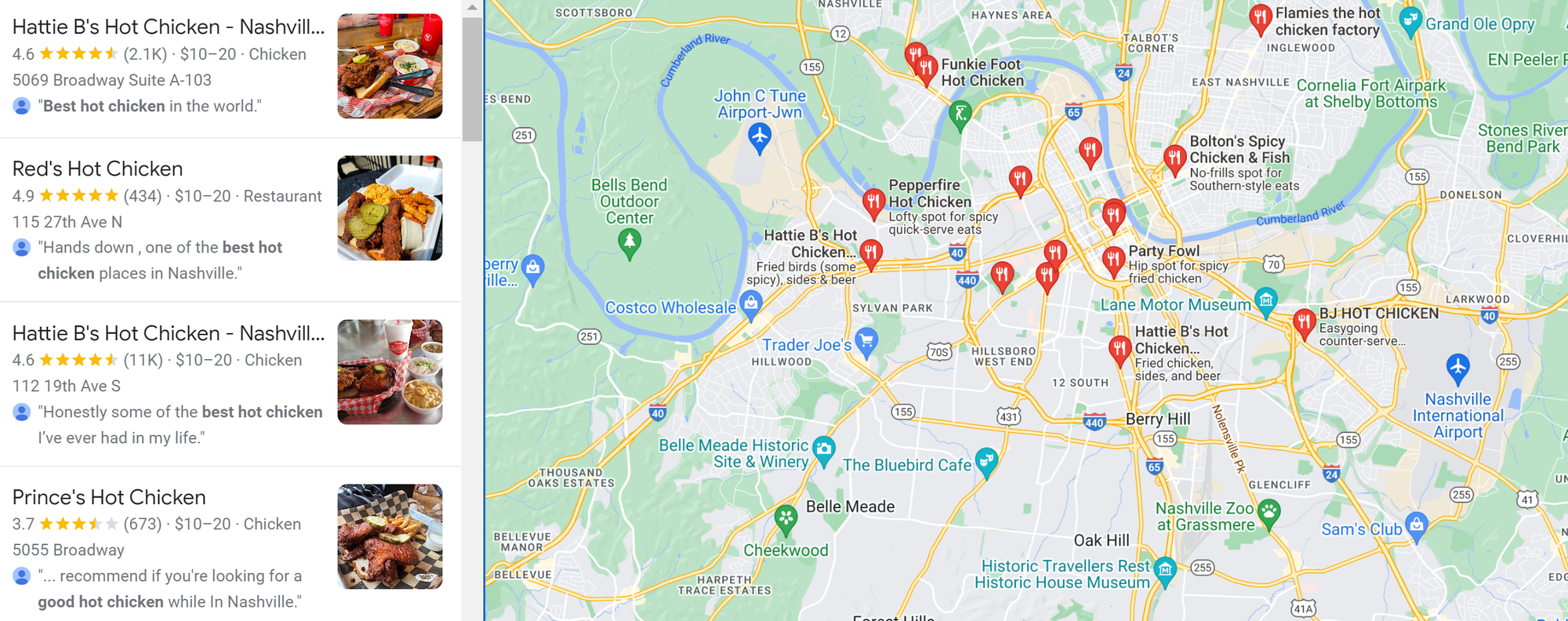 - Hattie B’s (Google rating 4.6 in both downtown locations)