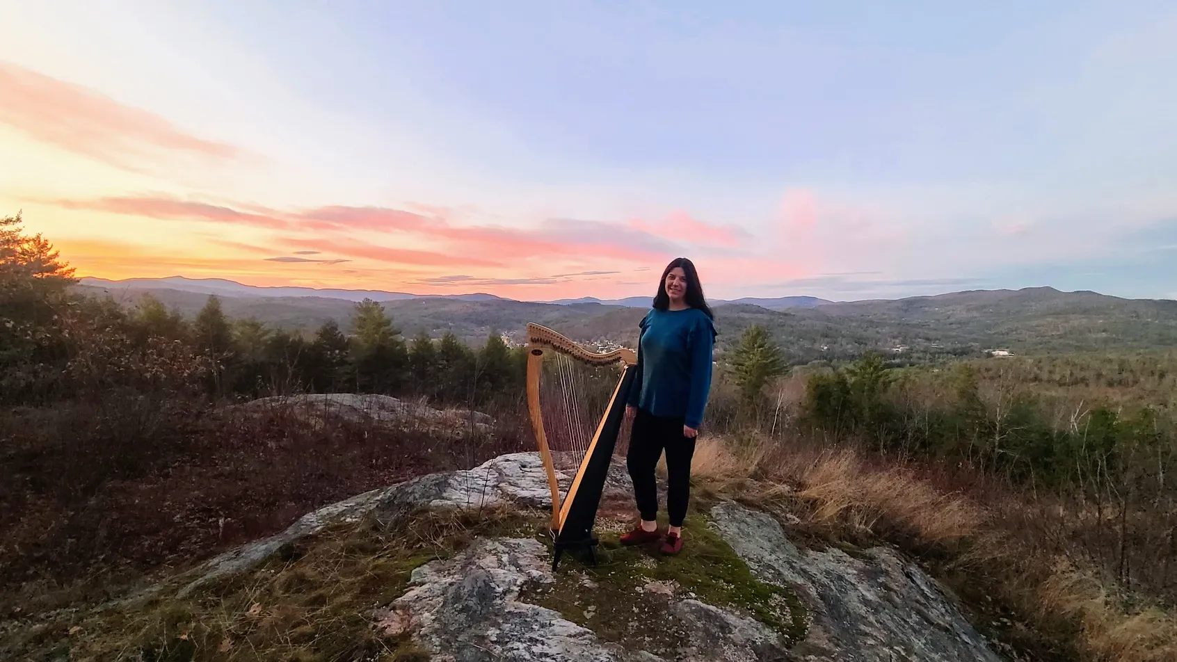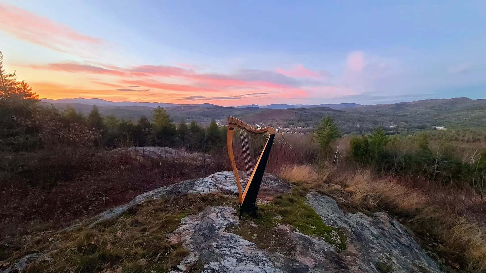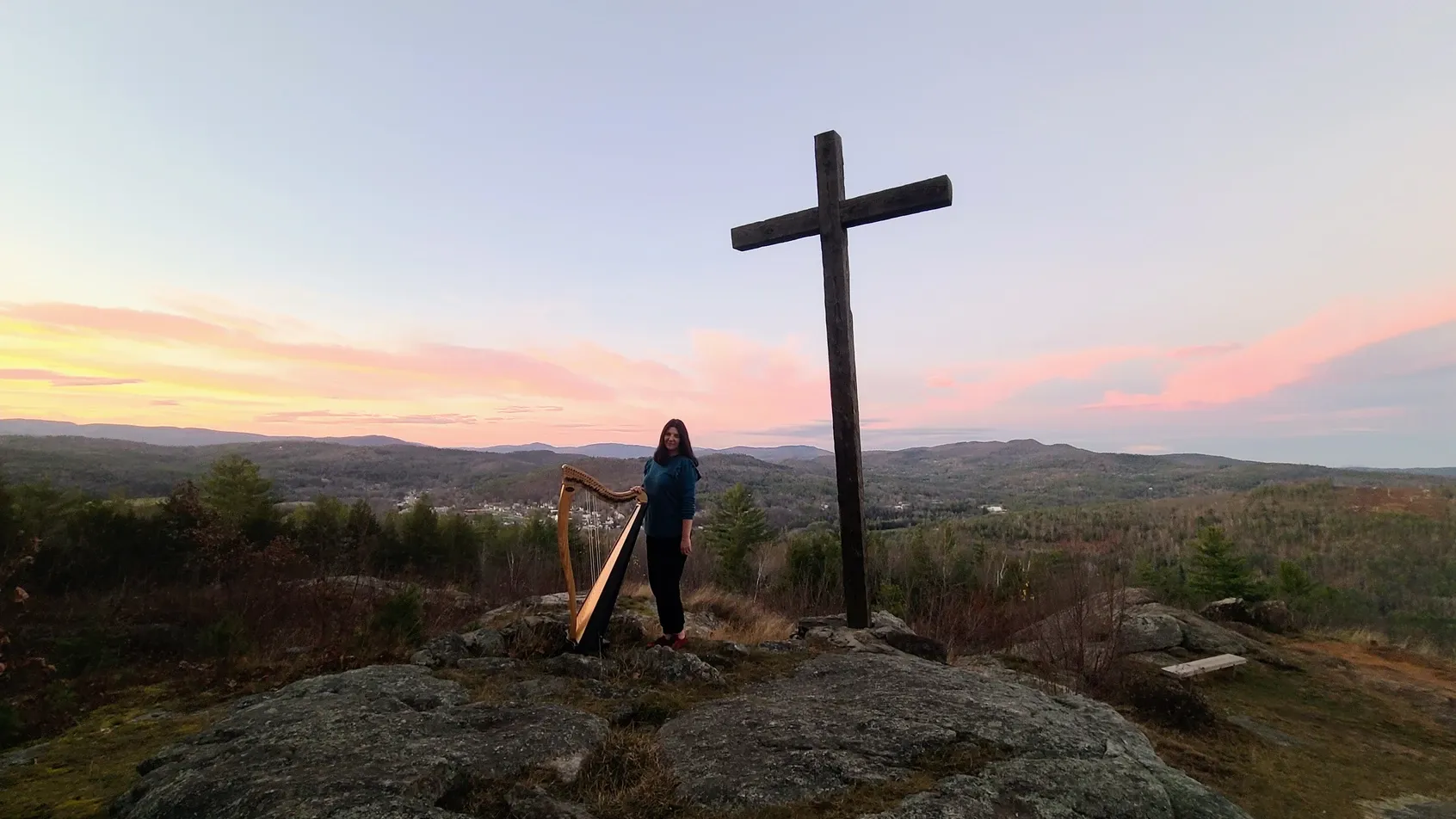 This is where we happened upon Inspiration Point, and what an inspiration it was! A quick Google search produced pictures that made me immediately envision carting my harp up the hill to record some Christmas music for my annual advent calendar. Reality hit us hard when we got there and realized that the .3 mile trail was up, up, and up some more. Suddenly the harp seemed like a rather unlikely hiking buddy, as I'd need to bring my larger harp, not my usual small hiking harp. We mulled it over for a couple days and decided I couldn't rest until I got my on-scene footage. We went at the exact same time as our first visit - 4pm - because we were mesmerized by the golden glow as dusk set in. Our visit with the harp didn't disappoint. I played until sunset and the photos speak for themselves of what a heavenly experience it was. Sometimes you need to drag 30 pounds of instrument to unexpected places, and those who follow my advent calendars know I don't shy away from a challenge when it comes to this creative project, my favorite of the year. Want to join and receive daily seasonal videos, including the video from Inspiration Point? You can sign up here for free.