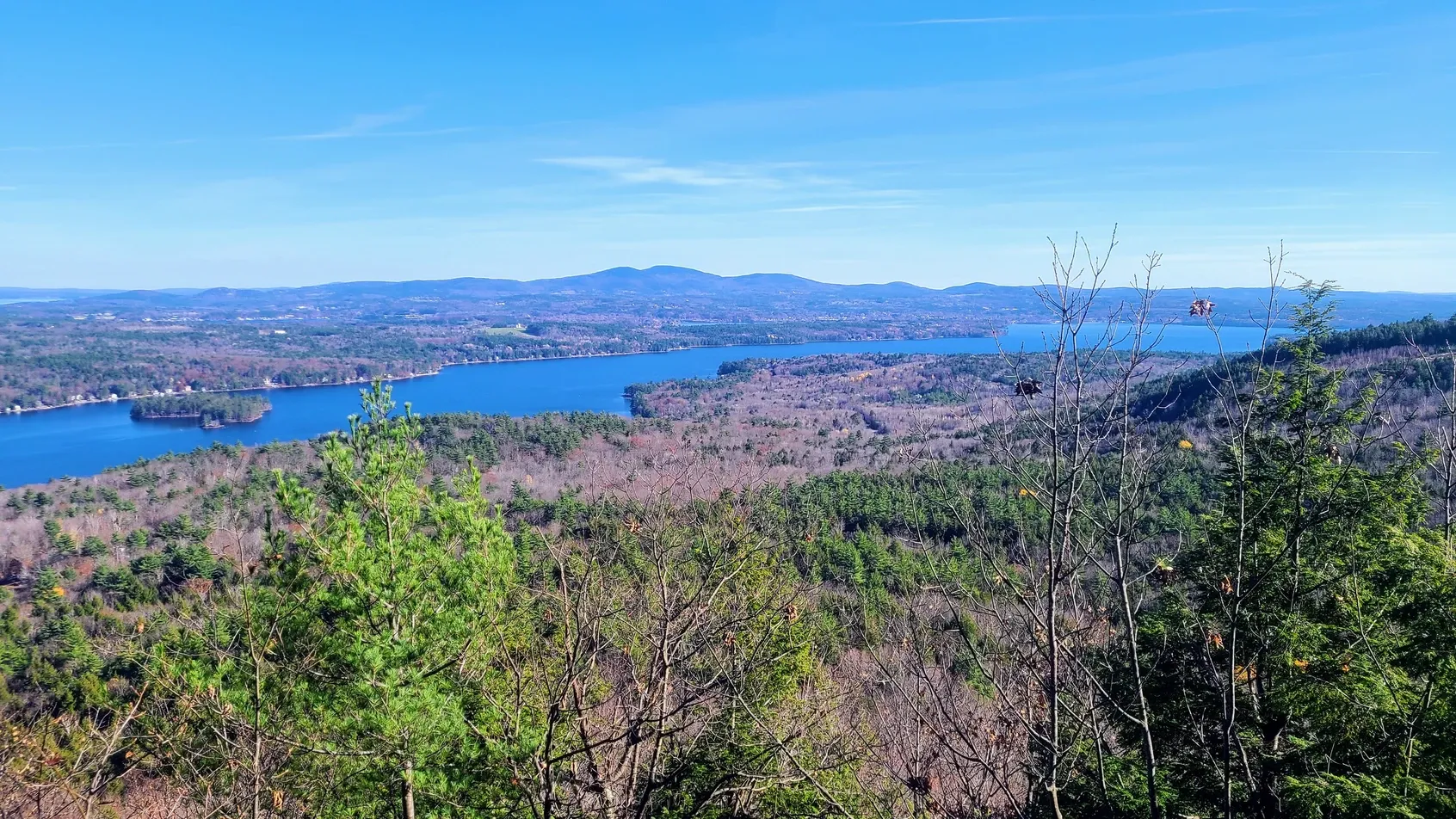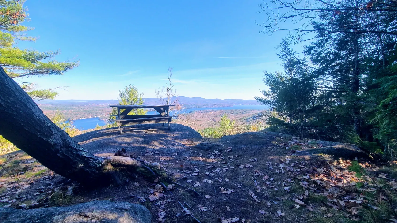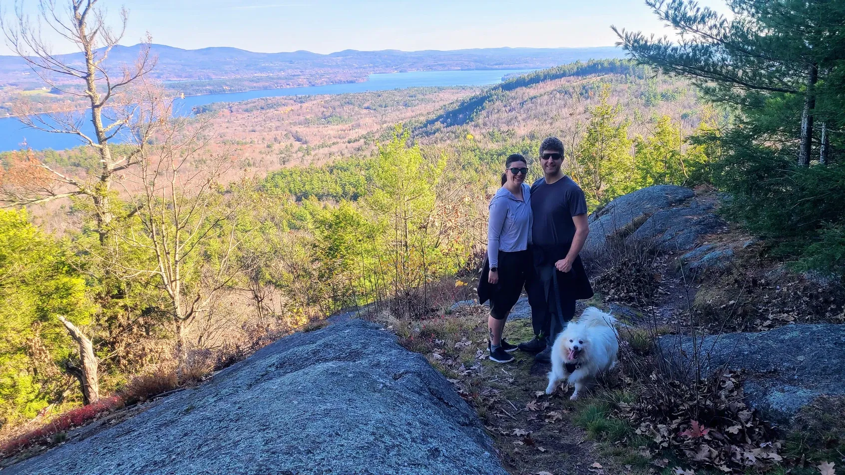 Our first hike, the 1300-foot Ladd Mountain, included the swish swish sounds of the leaves, while we struggled to keep our footing on the slippery ground. The view overlooking Lake Winnisquam made the difficult trek worthwhile, and the warmth invited us stay a while.